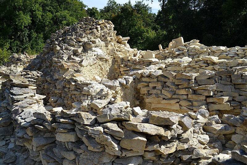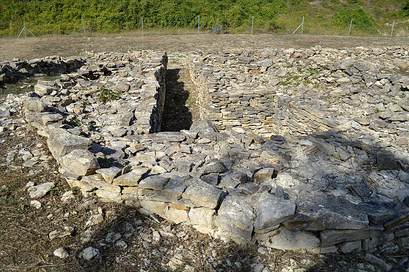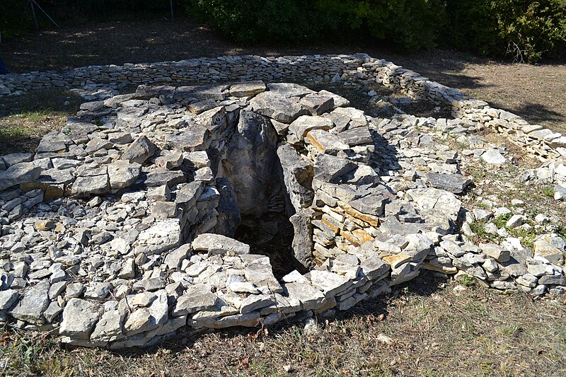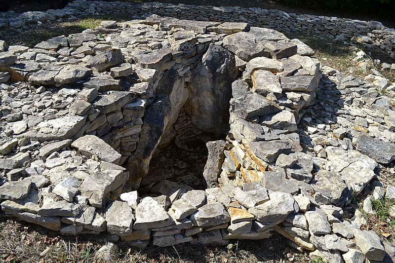 Le tumulus C résulte d’une évolution en trois phases et présente un plan trapézoïdal très allongé, le côté nord étant légèrement plus court ; il mesure environ 19 m de large à l’est et 10 m à l’ouest. La phase Ia correspond à un petit coffre funéraire de type coffré, haut de 1,60 m, délimité par cinq orthostates et formant un polygone allongé d’environ 1 m sur 0,50 m à l’extrémité ouest du tumulus ; le coffre possédait une entrée refermée par de fines dalles verticales amovibles et sa couverture demeure inconnue. Ce coffre fut inclus dans une masse de pierres sèches agencée comme une « chemise » d’environ 4 m de diamètre, au parement rectiligne à l’ouest et légèrement concave à l’est, le parement général mesurant 7,20 m sur 8,80 m ; l’hétérogénéité de cette construction laisse supposer une réalisation en plusieurs temps et la conservation d’accès temporaires au coffre avant sa condamnation définitive. La phase Ib correspond à l’apport d’une importante masse de terre jaune non structurée à l’est du monument d’origine, ce remblai étant ceinturé par un parement en pierres sèches ; à l’issue de cette phase le tumulus atteignait environ 23 m de longueur sur 8,80 m de largeur. Lors de la phase II, un long tumulus trapézoïdal d’au moins 100 m de longueur a été édifié au‑dessus des aménagements antérieurs ; son extrémité orientale mesure 19 m de largeur pour 3,50 m de hauteur et il est ceinturé par un parement externe doublé d’un second parement distant d’environ 2 m, formant une banquette haute d’au plus 0,70 m ; la masse interne, composée d’un mélange de pierres et de terre, est structurée par un maillage alvéolaire de petites murettes. À environ le tiers de la longueur depuis l’ouest, le tumulus conserve une petite chambre mégalithique quadrangulaire accessible par un couloir s’ouvrant vers le nord, l’ensemble dessinant un plan en « q » ; la chambre a été en partie détruite par l’exploitation en carrière. Le couloir, long de 5 m et large de 0,80 m, était initialement couvert de grosses dalles dont une seule a été retrouvée près de l’entrée ; la chambre était délimitée par des orthostates de calcaire d’origine extérieure au site, plantés dans des fosses d’implantation, dont un seul exemplaire subsiste en place côté sud ; la surface de cette petite chambre n’excède pas 5 m².
