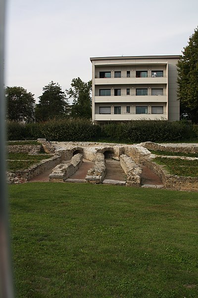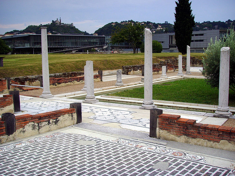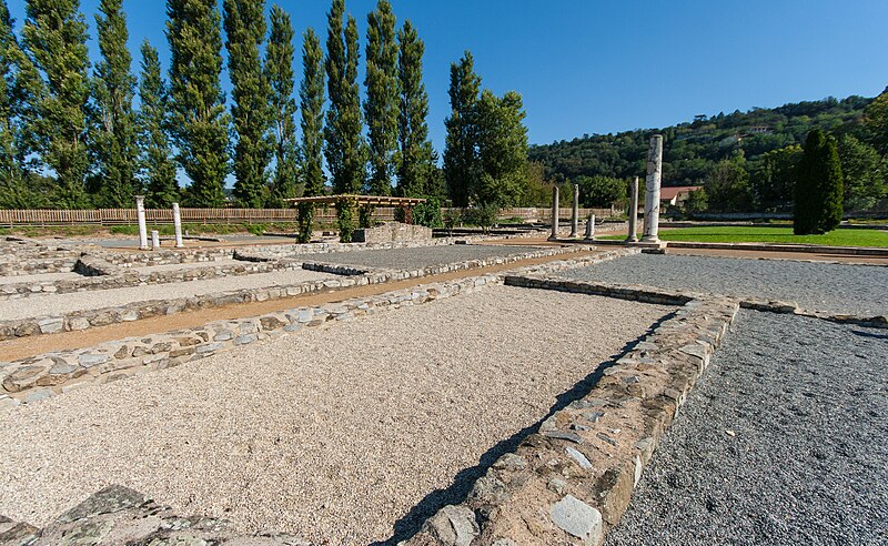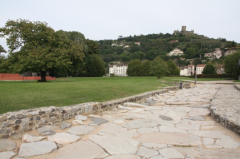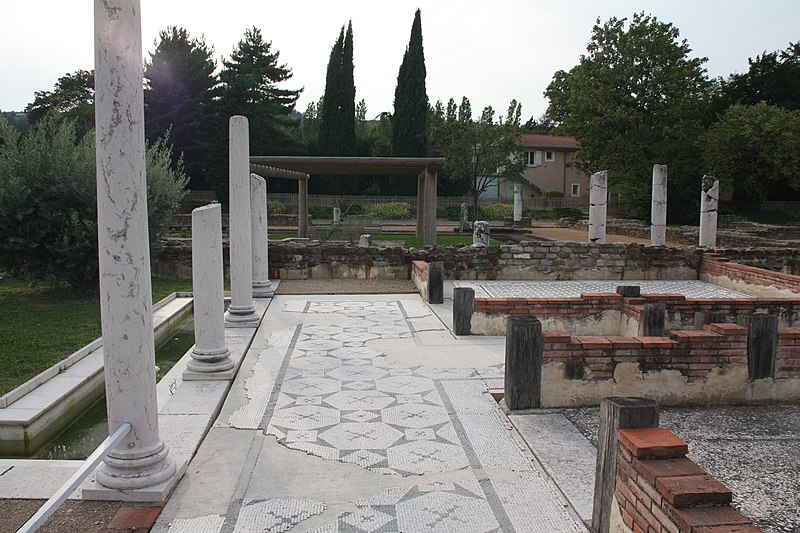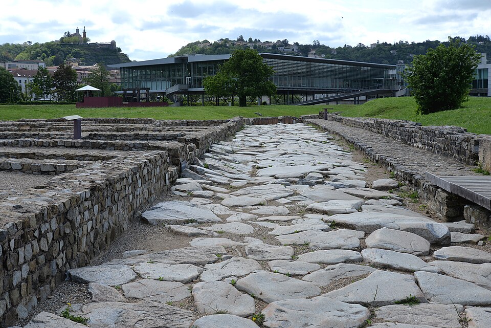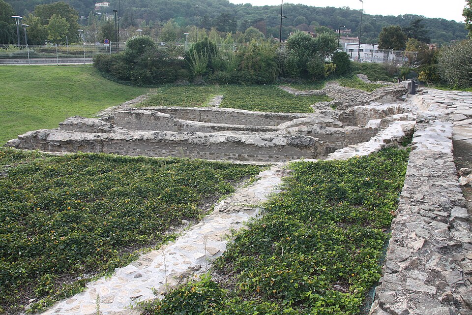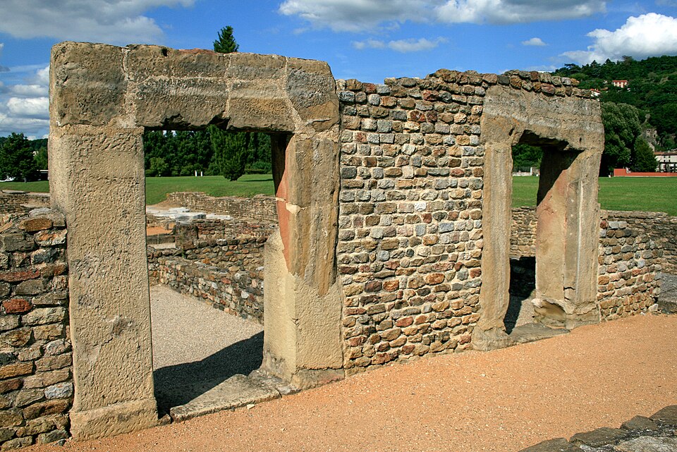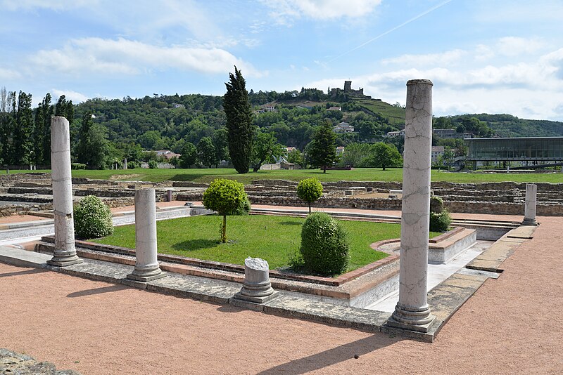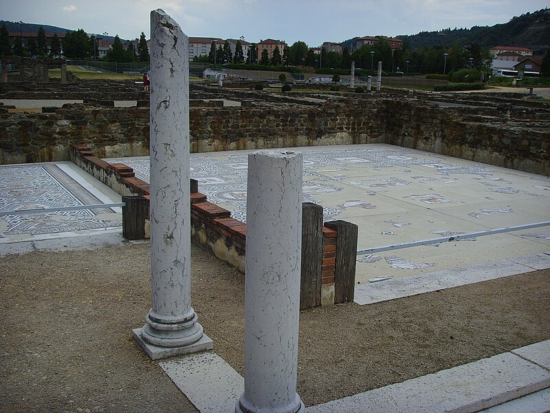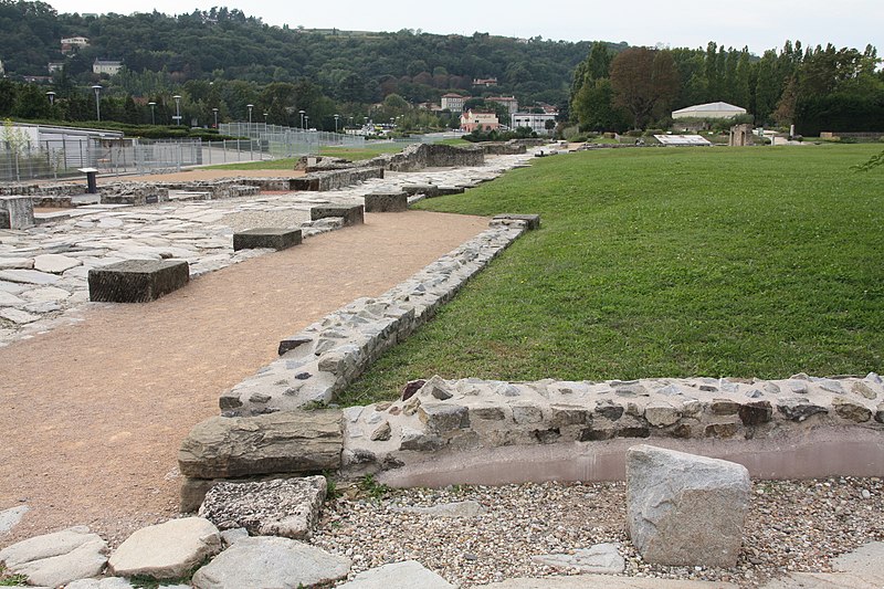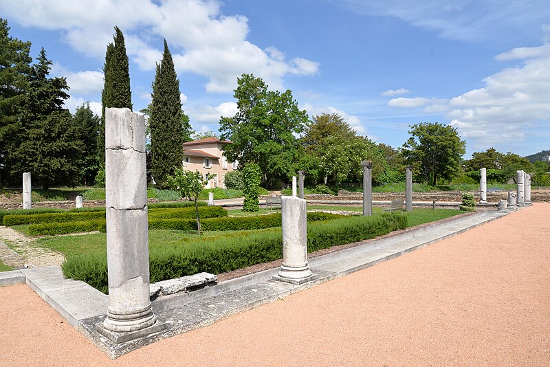 Le site archéologique de Saint-Romain-en-Gal a été occupé dès la fin du Ier siècle av. J.-C., avec des habitats et des ateliers de potiers attestés vers 30 av. J.-C. Au cœur du quartier se côtoient de grandes demeures à péristyle, des entrepôts, des boutiques, des échoppes d'artisans et divers ateliers. Dès le milieu du Ier siècle, le secteur est limité au sud par le complexe dit du « Palais du Miroir », qui séparait les quartiers antiques de Saint-Romain-en-Gal et de Sainte-Colombe-lès-Vienne. Après un abandon aux IVe et Ve siècles, quelques établissements conventuels semblent s'être implantés dès le Ve siècle. La découverte de mosaïques polychromes au XVIIIe siècle et la conservation d'une partie des thermes du Palais du Miroir ont suscité le développement des recherches archéologiques sur cette rive. Le site a été mis au jour en 1967 lors de la construction d'un lycée sur la rive droite du Rhône, révélant l'étendue du quartier artisanal et résidentiel de la Vienne antique.