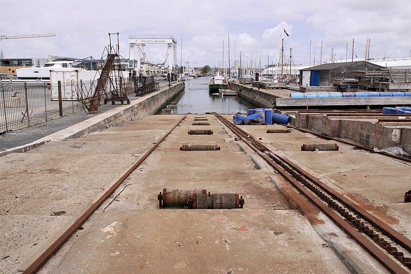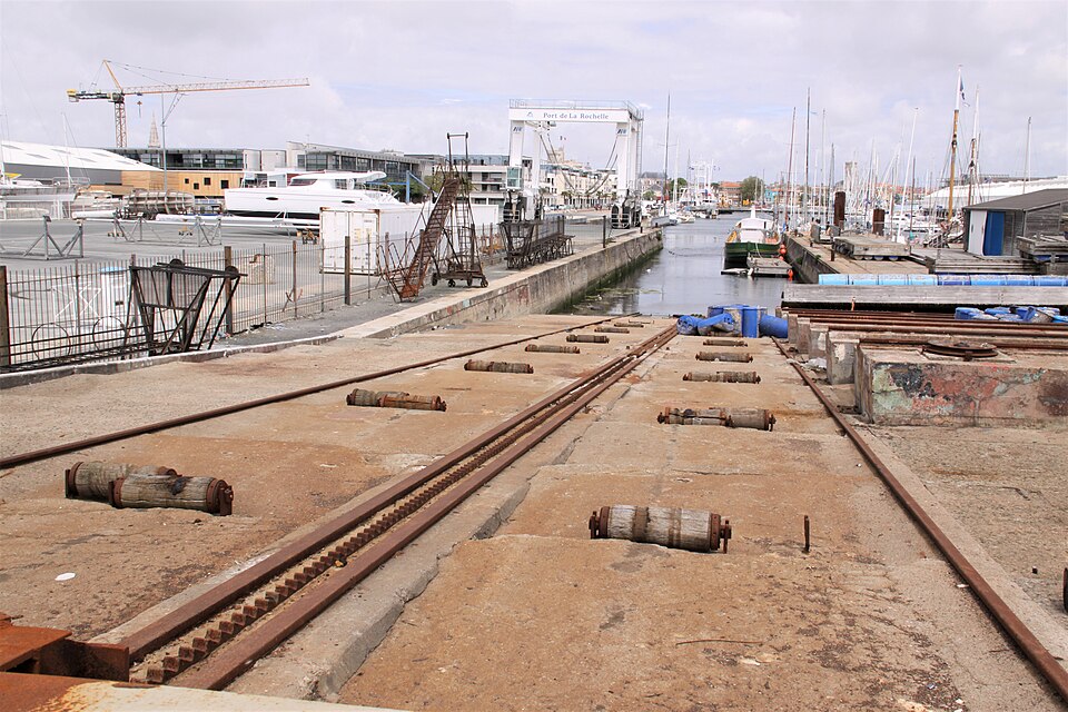 Le Slip way est une cale de carénage située à La Rochelle, en Charente‑Maritime. Construit par les Allemands entre 1942 et 1943, il faisait partie d’un important dispositif portuaire incluant la base sous‑marine de La Pallice ; son mécanisme provient d’un port néerlandais. Après la guerre, il a été affecté à l’entretien des chalutiers d’un tonnage maximal de 500 tonnes. En 1959, les mécanismes installés sur la rampe (le ber) ont été remplacés et modernisés. La rampe en béton armé est composée de petits emmarchements ; sa pente est estimée à 5°, sa largeur à environ 15 m et sa longueur à quelque 200 m, dont 120 m sont immergés. Ce plan incliné est équipé de quatre rails, d’une crémaillère centrale et de rouleaux en bois. Il reçoit deux chariots en IPN rivetés, hissés par deux câbles en acier reliés chacun à un énorme treuil à moteur électrique. Le ber latéral présente une structure en béton armé à emmarchements successifs, dans laquelle sont noyés sept rails horizontaux et des poulies de renvoi des câbles. Le Slip way de La Rochelle constitue un exemple représentatif des engins de carénage construits dans les grands ports depuis la fin du XIXe siècle ; il a conservé l’essentiel de son équipement des périodes 1942‑1943 et 1959, à l’exception de la grue. Le slip way, situé sur le côté sud du bassin à flot extérieur du port de La Rochelle, et les éléments bâtis correspondant aux parcelles EH Dpa 47 et Dpd 47 ainsi que certains éléments non bâtis non cadastrés, sont classés au titre des monuments historiques par arrêté du 13 décembre 2002.