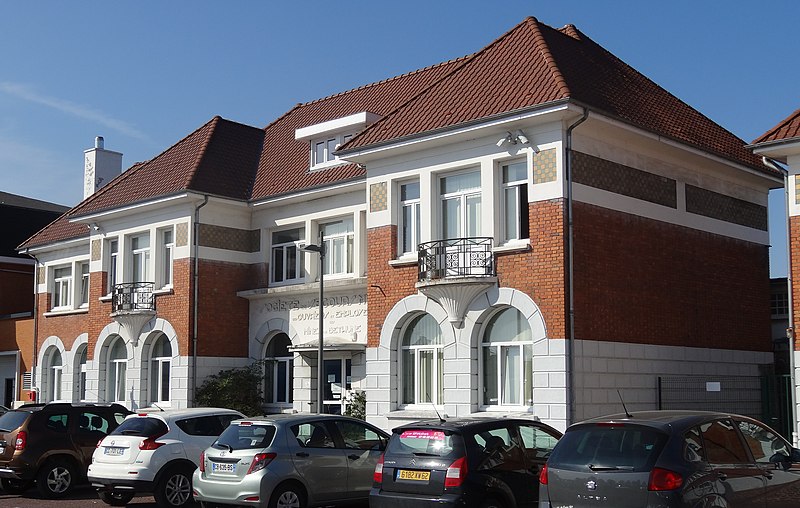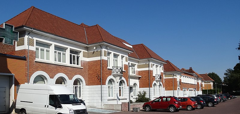 Dès la fin de la Première Guerre mondiale, la Compagnie des Mines de Béthune projeta la création d’un réseau d’œuvres médico-sociales destiné à ses employés et ouvriers. La construction du bâtiment de la société de secours mutuels fut programmée en 1924 ; le premier édifice, affecté aux bureaux, fut achevé en 1926. L’ensemble comprenait trois pavillons destinés à loger les médecins et à recevoir les consultations ; les deux premiers étaient reliés à l’arrière par un portique couvert. Le centre de santé, inauguré en mars 1932, permit de regrouper en un lieu unique plusieurs spécialistes et de favoriser les échanges d’informations sur la santé des mineurs. Après la création de la Sécurité sociale minière en 1947, il fut décidé d’agrandir la SSM de Grenay en reliant les deux pavillons joints par un grand bâtiment et en couvrant la terrasse du premier édifice. On couvrit également les toits‑terrasses de tous les bâtiments par des toitures à quatre pentes en tuiles afin d’en améliorer l’étanchéité. Ces aménagements associent bureaux, consultations et logement du médecin‑chef et expliquent la configuration de l’édifice aujourd’hui désigné « ancienne société de secours mutuels des ouvriers et employés des Mines de Béthune et ancienne maison du médecin‑chef ».
