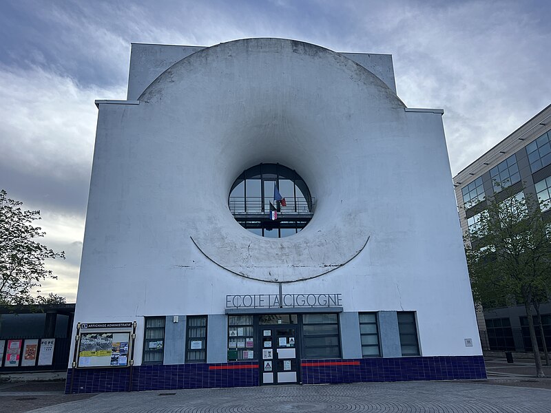 La soufflerie Hispano-Suiza, située rue du Moulin-Bailly à Bois-Colombes (Hauts-de-Seine), a été construite en 1937 en béton armé par les établissements Haour Frères pour l’usine Hispano-Suiza, d’après un projet de la Compagnie Électro‑Mécanique. De type « Eiffel », avec une veine d’air aspirée, elle permettait de reproduire les conditions du vol en montée à proximité du sol. Sa structure est un parallélépipède de 55 mètres sur 16, percé de deux niveaux de baies et d’un troisième niveau correspondant à la chambre d’expérience, traversée par la veine d’air. Un collecteur formant un pavillon en haut de la façade se termine par une buse débouchant sur la chambre d’expérience, couronnée par la cigogne de Guynemer, emblème de la firme. À l’arrière, la chambre d’aspiration est prolongée par un vaste filtre antivortex, destiné à éviter le phénomène de siphon et occupant presque toute la façade arrière ; ce filtre a été préservé lors de la reconversion du site. L’installation comprenait un ventilateur de 16 pales de huit mètres de diamètre dont le souffle pouvait atteindre 325 km/h ; elle s’inspirait des souffleries pour modèles réduits construites par Gustave Eiffel et fut un temps la plus grande soufflerie au monde. Les mentions d’arrêt d’activité diffèrent selon les sources : la soufflerie est indiquée comme ayant cessé ses activités en 1953 ou dans les années 1960. L’usine Hispano‑Suiza, fondée en 1904 par l’ingénieur Marc Birkigt et le banquier Damian Mateu, a connu plusieurs extensions et aménagements entre 1913 et 1938 : l’usine initiale (1913–1914, architecte Georges Lebon), des ateliers (1917), des réfectoires (1925, Ernest Baton), de nouveaux ateliers et bureaux (1927, Ernest Baton), des annexes et un château d’eau (1936), la soufflerie et un tunnel de tir (1937, Haour Frères), puis des bureaux, vestiaires et équipements complémentaires (1938, Haour Frères). L’établissement était spécialisé dans la construction de moteurs d’avions et a également fabriqué des pièces automobiles entre 1930 et 1934. Le groupe Snecma, qui a acquis Hispano‑Suiza en 1968, a fermé définitivement le site en 1995 ; la ville de Bois‑Colombes a racheté la soufflerie en 2003. La reconversion en école, conduite par les architectes Patrice Novarina et Alain Béraud, est mentionnée en 2005 et le site est indiqué depuis 2006 comme reconverti en école La Cigogne. Aujourd’hui l’ancien bâtiment abrite l’école La Cigogne, un centre de loisirs et l’inspection départementale de l’Éducation nationale. La soufflerie est inscrite à l’inventaire supplémentaire des monuments historiques (inscription du 19 avril 2000 pour la façade et la toiture) et est labellisée « Patrimoine du XXe siècle ».