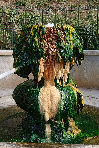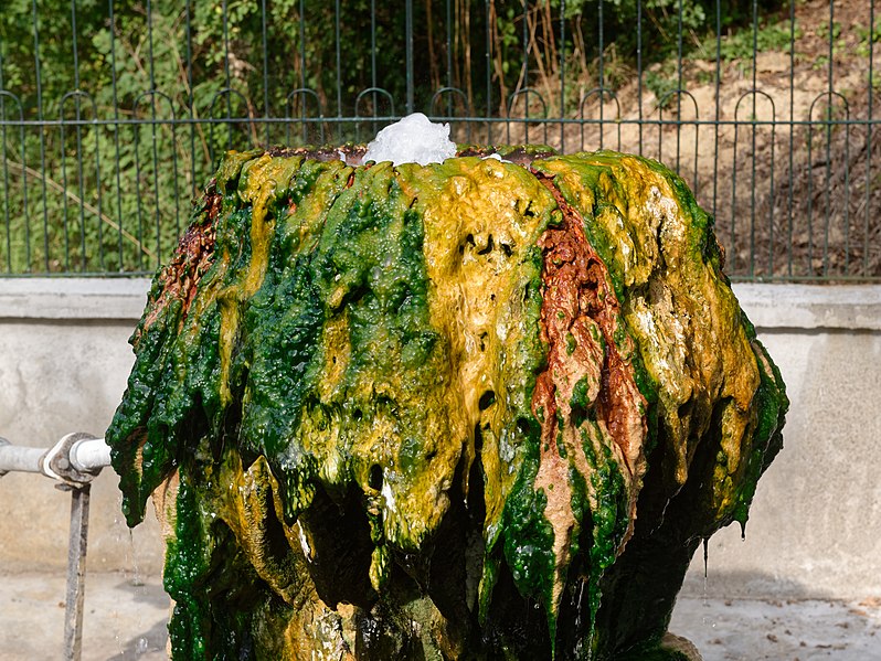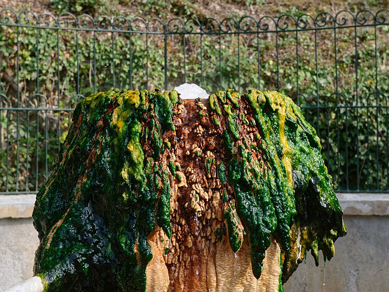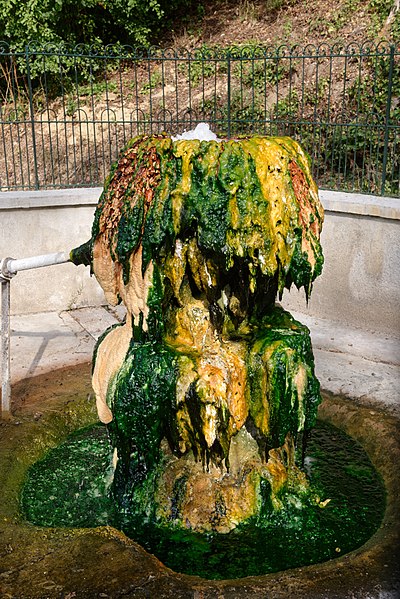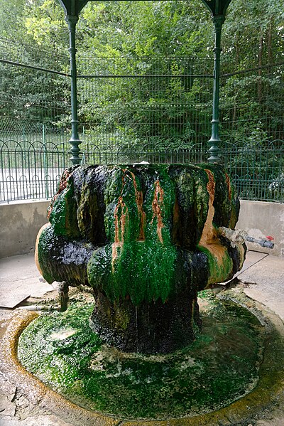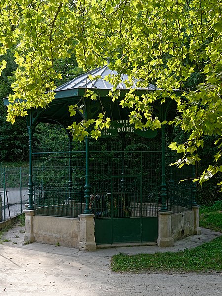 Les sources du Dôme et du Lys sont deux sources chaudes situées à quelques mètres l'une de l'autre sur la commune d'Abrest. La source du Dôme se trouve dans le hameau de la Tour, sur la rive gauche de l'Allier. Leur découverte remonte à la fin du XIXe siècle, lors de la « guerre des sources » qui opposa des forages privés visant à alimenter la station thermale de Vichy. En 1898, Francisque David, négociant en velours de Saint-Étienne, fit forer la source du Dôme jusqu'à 159 mètres de profondeur. L'eau jaillit à 65,4 °C ; elle fut d'abord utilisée pour les bains dans un établissement thermal de première classe, puis embouteillée pour la consommation, avant d'être employée à la fabrication des boues destinées aux thermes de Vichy. En 1900, Francisque David réalisa deux autres sondages qui donnèrent naissance aux sources du Lys et Cornélie. Les trois sources furent intégrées au domaine de l'État en 1927. Les sources du Dôme et du Lys ont été inscrites au titre des Monuments historiques le 26 juillet 2022. L'eau à 65,4 °C fait du Dôme la deuxième source la plus chaude d'Auvergne, après Chaudes-Aigues, et les captages se situent près de la faille Macaux. Leurs boues thermales sont réputées pour soulager les rhumatismes et les affections digestives, en raison des particules d'argile électriquement chargées qu'elles contiennent. Des aménagements ont été réalisés pour abriter les émergences et faciliter l'accès : le jaillissement est conduit dans des vasques en pierre désormais entièrement recouvertes de dépôts calcaires résultant des concrétions de carbonate de calcium liées à l'émanation de gaz carbonique. Ces vasques présentent des teintes orangées dues aux oxydes de fer et des colorations vertes liées à des micro-algues, et une forte vapeur à odeur soufrée s'en dégage. La vasque du Dôme est protégée par un édicule octogonal rappelant les kiosques à musique : un soubassement maçonné supporte des poteaux métalliques ouvragés qui portent une toiture à charpente métal et bois, couverte en zinc. L'aménagement autour de la source du Lys est plus simple et reste découvert ; on y observe notamment le bouillonnement caractéristique de la source et une station de pompage.