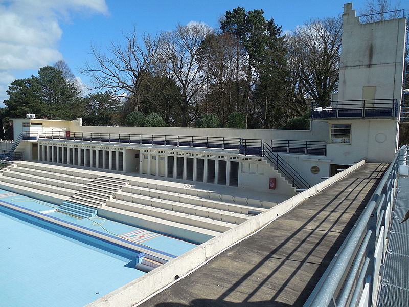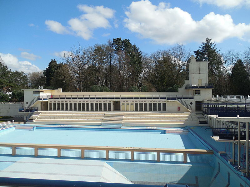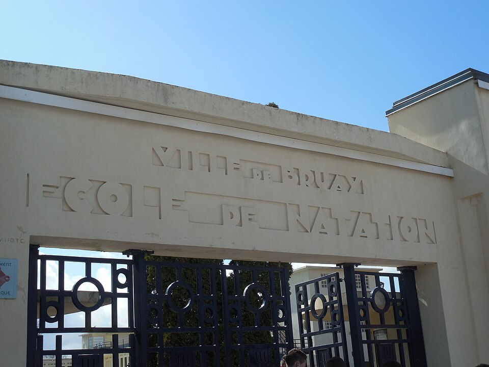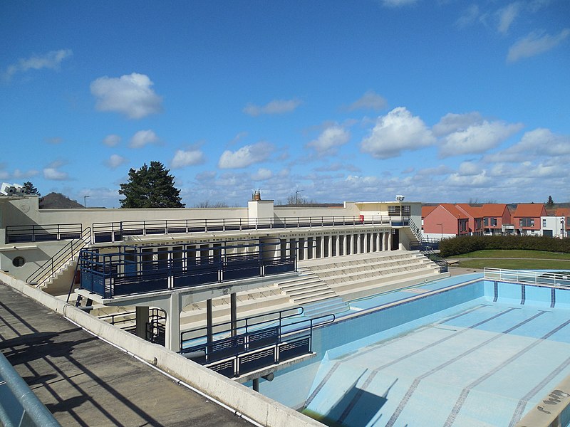 Le stade-parc et l'école de natation de Bruay-la-Buissière, communément appelée piscine Roger-Salengro, ont été réalisés par l'architecte Paul Hanote. Le stade-parc, construit en béton enduit en 1931, comprend un parc public avec un kiosque à musique, un stade doté d'un terrain de football, une piste d'athlétisme, une salle de gymnastique et une piscine en plein air. L'école de natation, projet évoqué le 15 février 1935 avec un devis prévisionnel de 971 560,92 F, a été conçue ensuite et inaugurée le 1er août 1936. La piscine municipale porte le nom de Roger Salengro, alors ministre de l'Intérieur, et se situe à proximité de la cité minière numéro 9. Le projet s'inscrit dans le contexte du Front populaire et dans une volonté municipale, portée par le maire Henri Cadot et le conseil, d'offrir davantage de loisirs et d'améliorer le bien-être des habitants employés à la mine. L'établissement était conçu comme une "école de natation" : un des bassins était réservé aux scolaires et aux débutants, reflétant une ambition pédagogique. La création de la piscine a favorisé l'émergence de clubs nautiques locaux : le club nautique bruaysien fut créé en 1936 et le club franco-polonais "Les Requins" en 1937, ce dernier demandant rapidement un accès privilégié pour ses entraînements. Située au cœur des corons, la structure fut rapidement fréquentée par les mineurs et leurs familles, qui y pratiquaient la baignade et le bain de soleil, notamment pendant les congés payés. L'édifice, de style paquebot et proche de l'Art déco, mesure 70 mètres sur 50 et comprend trois bassins en béton armé permettant d'accueillir 600 personnes. Il comporte plusieurs plongeoirs, deux plates-formes de 3 et 5 mètres, 246 cabines, quatre vestiaires, des ailes surmontées de terrasses solarium et, à l'angle, un poste de secours avec réservoir. Paul Hanote y applique des principes fonctionnalistes et hygiénistes : monumentalité, recours aux matériaux modernes, surfaces planes, lignes droites et symétrie, ainsi que des installations sanitaires comme douches, pédiluves et cabines individuelles conformes aux règles de l'époque. Après sept mois de travaux, l'inauguration a eu lieu en pleine période du Front populaire. La piscine a été rénovée en 1997 pour répondre aux normes de sécurité en vigueur et elle fait depuis la même année partie des monuments historiques. Son architecture s'inscrit, selon la source, dans une filiation proche d'édifices construits peu auparavant à Roubaix.