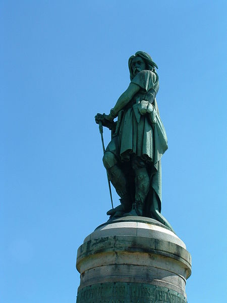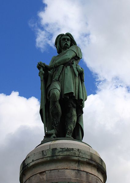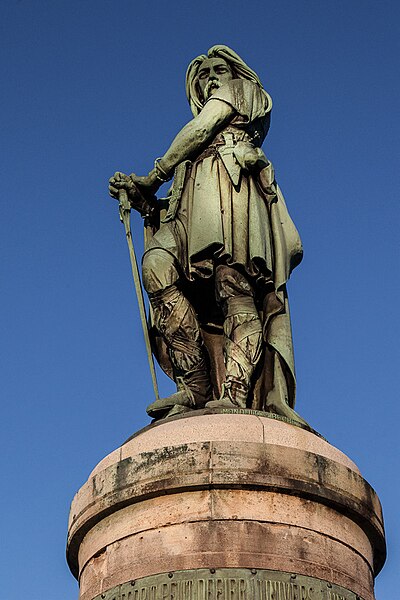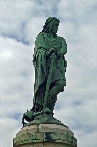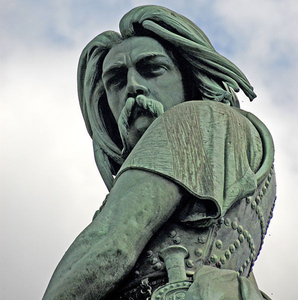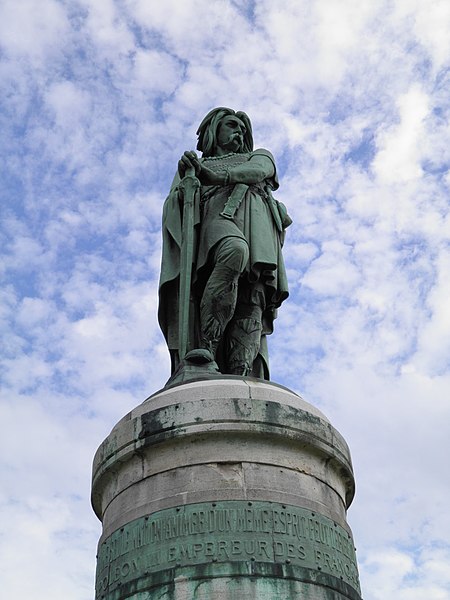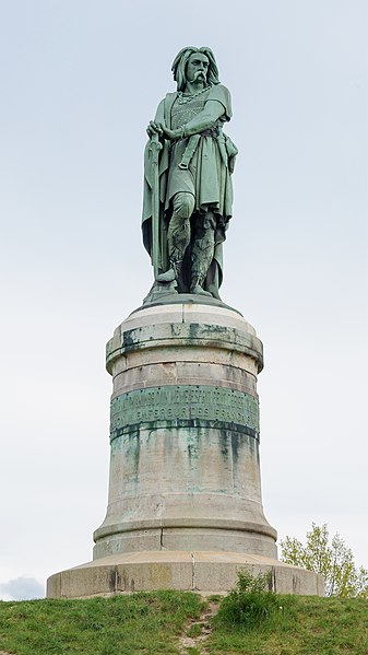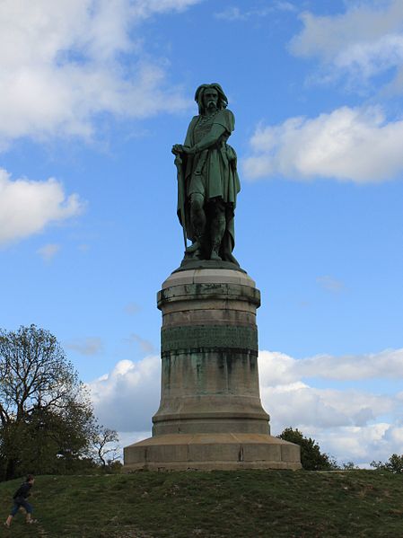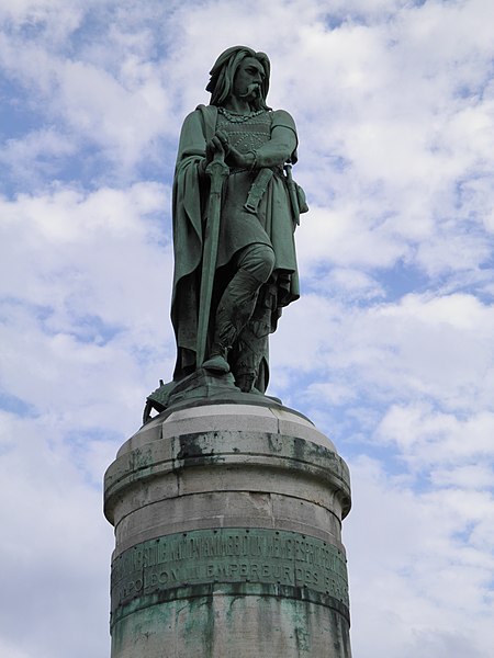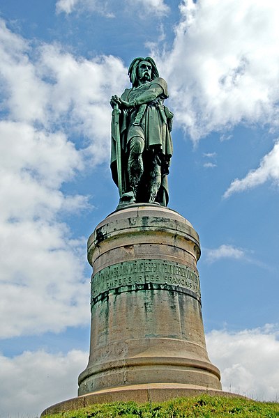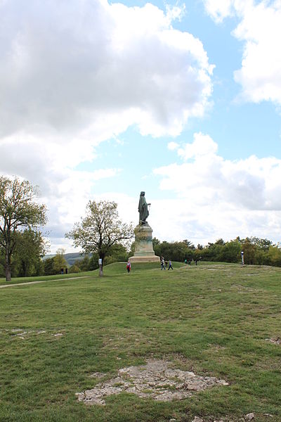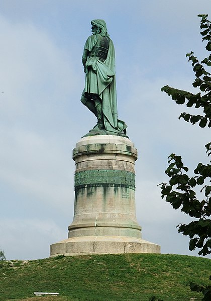 Le Monument de Vercingétorix, œuvre du sculpteur Aimé Millet, domine depuis 1865 le village d'Alise‑Sainte‑Reine, sur le mont Auxois, site de l'oppidum d'Alésia. La statue fut érigée en août 1865, financée par Napoléon III, mais elle ne fut jamais inaugurée. Construite à Paris et exposée au Salon de 1865 au palais de l'Industrie, elle fut transportée et installée le 27 août 1865 à l'extrémité ouest du mont Auxois, dominant le champ de bataille. L'ensemble associe une statue en tôle de cuivre battue et repoussée, rivetée sur une charpente métallique, haute de 6,60 m et d'environ cinq tonnes, à un piédestal de 7 mètres en granit de Saulieu et pierre de Pouillenay dessiné par Eugène Viollet‑le‑Duc. Un bandeau de bronze porte la devise « La Gaule unie, formant une seule nation, animée d'un même esprit, peut défier l'univers », variation d'un passage rapporté par Jules César dans De Bello Gallico (VII, 29) et marquée par le vocabulaire national du XIXe siècle ; en dessous figure l'inscription « Napoléon III, empereur des Français, à la mémoire de Vercingétorix ». La statue est creuse et son mode de fabrication la rapproche, par principe, de la statue de la Liberté. Vercingétorix y est représenté dans un style romantique, archétype de l'image du Gaulois au XIXe siècle : moustaches tombantes, longs cheveux hirsutes, attitude morne et traits évoquant Napoléon III, ainsi qu'un collier de perles. La parure et les armes présentent de nombreux anachronismes : les bandelettes entourant les braies appartiennent aux débuts du Moyen Âge, la cuirasse et l'épée s'inspirent de modèles de l'âge du Bronze, antérieurs de plusieurs siècles à l'époque de Vercingétorix, et le collier relève de la fantaisie. Dès sa création, le monument a suscité critiques et éloges : certains commentateurs estimaient que Millet n'avait pas su saisir poétiquement la figure, tandis que d'autres, comme Théophile Gautier, saluaient la grandeur et la netteté des profils, adaptés à une vision de loin. Admirateur de Jules César, Napoléon III soutint la redécouverte et la mise en valeur de l'histoire gauloise, fit entreprendre d'importantes fouilles pour retrouver le site d'Alésia et fit ériger cette statue qui reflète aussi ses ambitions politiques. La rumeur selon laquelle la statue aurait été financée sur ses fonds personnels est infondée : un arrêté du 2 juillet 1862 précise que les frais du piédestal et de la statue seraient imputés au crédit des ouvrages d'art et décorations d'édifices publics. Après la défaite de 1871, Vercingétorix devint une figure nationale mobilisée dans le sentiment de revanche contre l'Allemagne, renforçant la portée symbolique du monument et faisant taire une partie des critiques. Le projet allemand du Hermannsdenkmal, commencé en 1841 et achevé en 1875, a sans doute inspiré Millet et Napoléon III, le mythe d'Arminius engendrant en réaction celui de Vercingétorix. L'ensemble monumental a été classé au titre des monuments historiques par arrêté du 17 janvier 2014. D'autres hommages à Vercingétorix existent, notamment la statue de François Mouly (1887) à Gien en fonte de la fonderie de Tusey, la statue de Frédéric Auguste Bartholdi (1903) à Clermont‑Ferrand et le monument de Gergovie (1900) par Jean Teillard.
