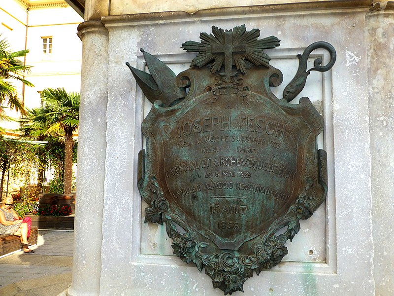La statue du cardinal Fesch en totalité, y compris son piédestal, les bas-reliefs et tous les autres éléments décoratifs du monument en place ou déposés (cad. BX 162) : inscription par arrêté du 22 juin 2017