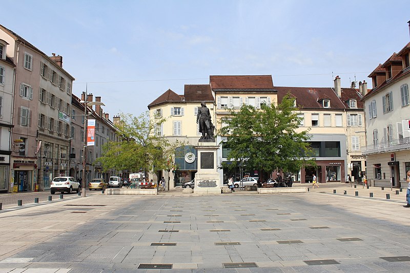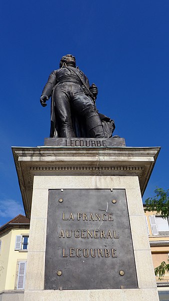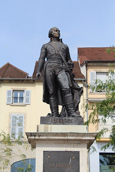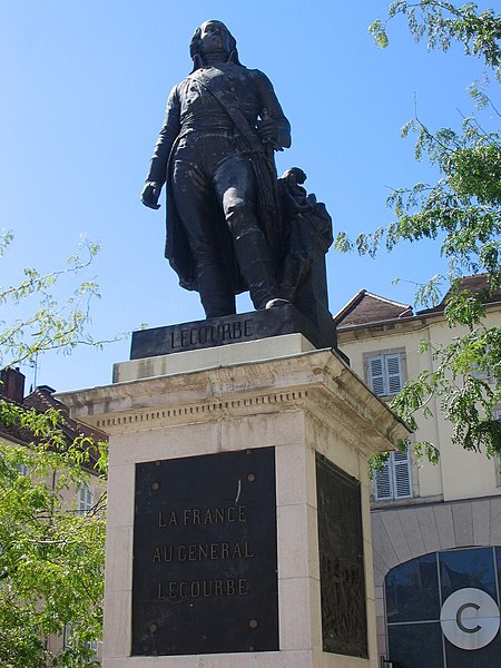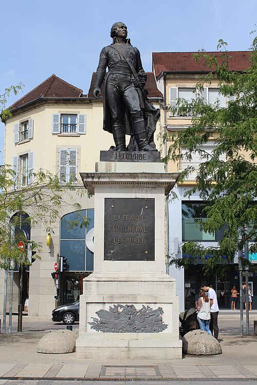 Élevé de 1826 à 1828 sur les plans de l'architecte Auguste Robert, le monument prend place à l'emplacement d'une fontaine datant de 1725. Il comportait une statue en marbre du général Pichegru, due au sculpteur Dumont, des ornements de bronze, quatre lions de fonte provenant des fonderies Baudin (Toulouse-le-Château, 39) et quatre bassins d'abreuvoir aux angles ; la statue de Pichegru fut renversée lors de la Révolution de 1830. Restauré en 1857 par l'architecte Achille Paillot, le monument a reçu une statue du général Lecourbe réalisée par Etex ainsi que deux bas-reliefs en bronze signés ETEX et portant l'inscription LA FRANCE AU GENERAL LECOURBE.