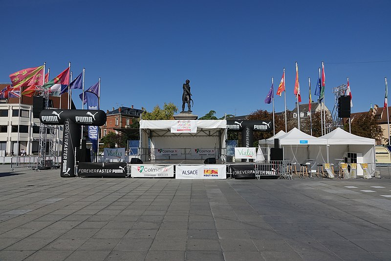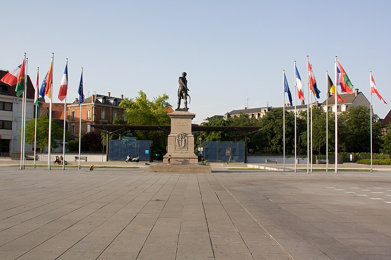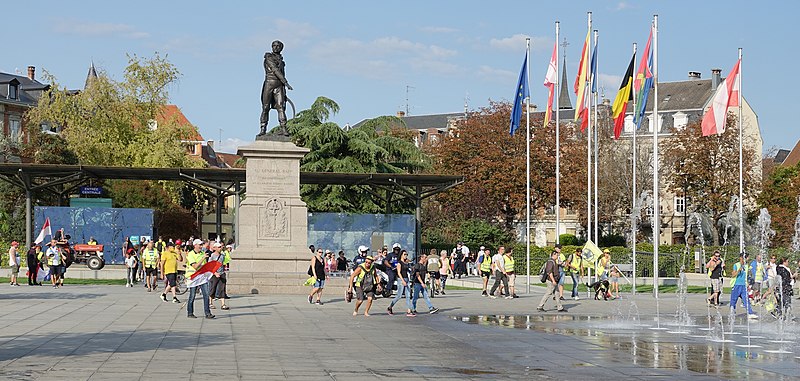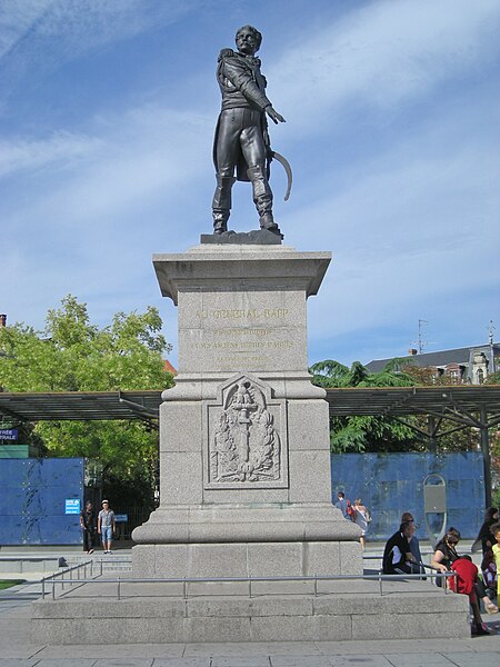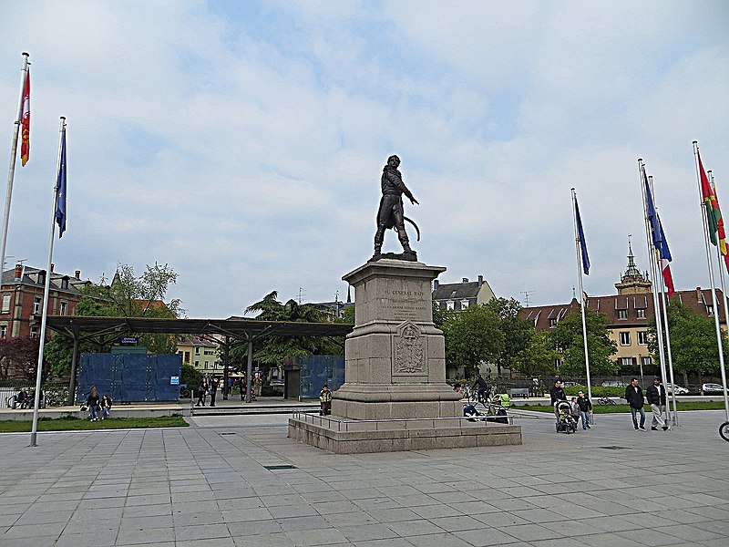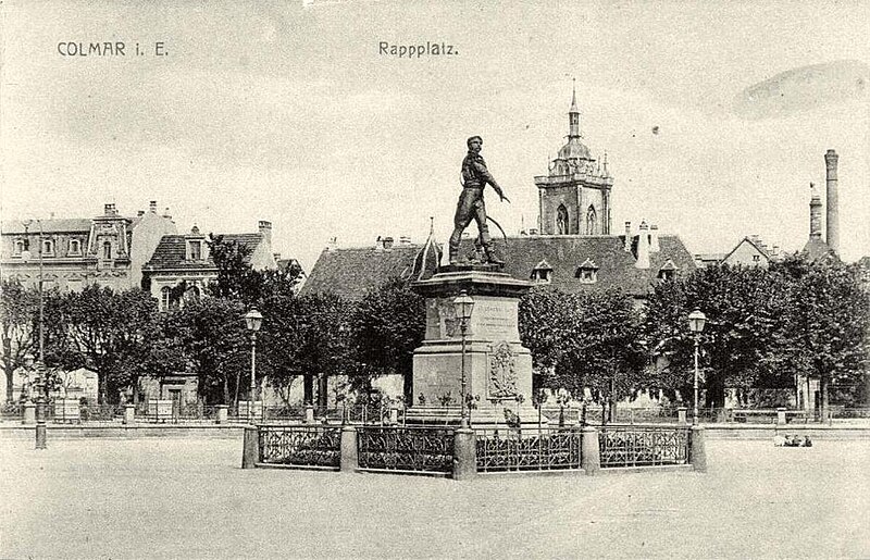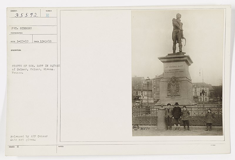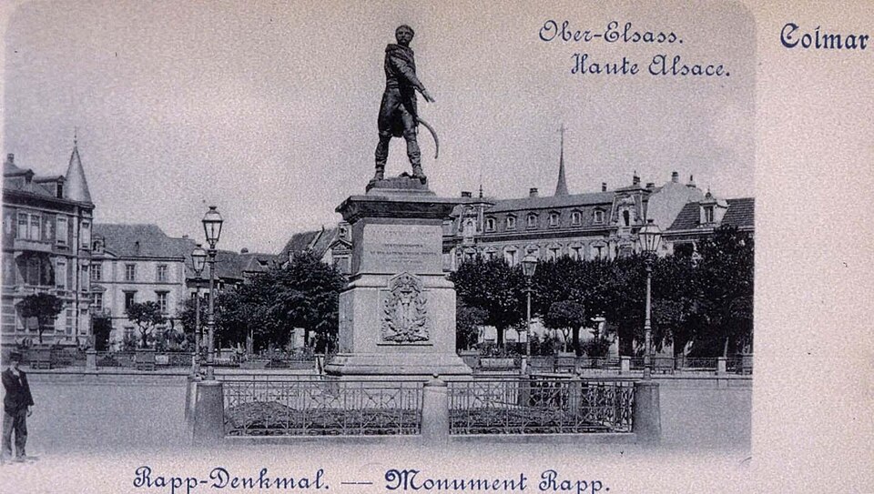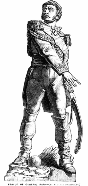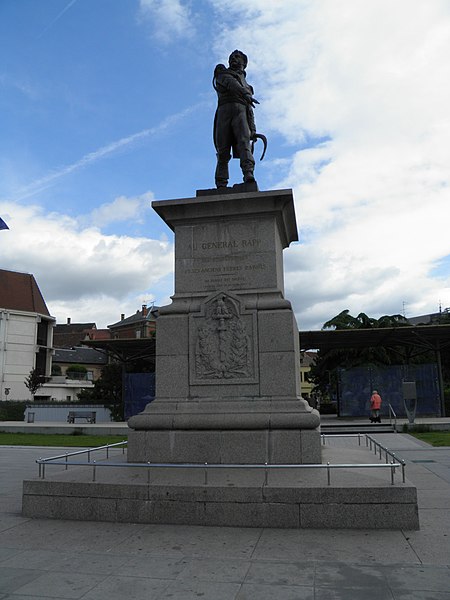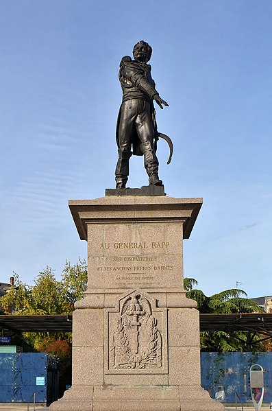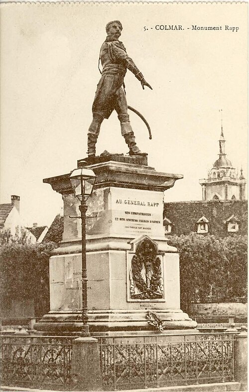 La statue du général Rapp est une œuvre d'Auguste Bartholdi, installée place Rapp à Colmar (Haut-Rhin). Commandée en 1854 sur les recommandations du colonel Jean Jules Marnier, Bartholdi, alors âgé de vingt ans, réalisa le modèle dans la maison que sa mère Charlotte Beysser fit construire rue Vavin à Paris. La sculpture en bronze, première réalisation publique de Bartholdi, fut exposée sur les Champs-Élysées et présentée à l'Exposition universelle de 1855 avant d'être inaugurée à Colmar le 31 août 1856. Après l'annexion de l'Alsace en 1872, les autorités allemandes envisagèrent de supprimer le monument, projet finalement non mené à exécution. Pendant l'Occupation, la statue fut mise à terre le 30 août 1940; un moulage du buste fut détérioré à cette occasion. Replacée après la Libération, elle fut restaurée par le sculpteur Édouard Stenzel et inaugurée de nouveau le 2 février sur un socle provisoire en présence d'Edmond Michelet, du général de Lattre de Tassigny et du maire Édouard Richard. La statue, en bronze, mesure 3,50 m de haut et repose sur un socle en granit de 4,20 m. Sur le piédestal sont gravés les noms des batailles où Rapp s'illustra — Iéna, Austerlitz, Marengo, la Moskova — et, sur le socle, la proclamation qu'il fit à un parlementaire russe lors du siège de Dantzig en 1813 : « Ma parole est sacrée ». L'attitude du général est décrite comme imposante, le geste impérieux, le visage expressif et empreint de fougue. Un moulage du buste, endommagé en 1940, est conservé au Musée Bartholdi. Sur la statue figurent encore les inscriptions « AUG. BARTHOLDI. sculpteur » à droite, « F. CHARNOD FONDEUR 1855 » à gauche et, à l'avant, « AU GENERAL RAPP / SES COMPATRIOTES / ET SES ANCIENS FRERES D’ARMES ». Le coulage fut assuré par la fonderie Charnod de Montrouge et le socle originel fut réalisé par l'architecte Mathias Xavier Hatz. Le monument est classé au titre des monuments historiques depuis le 6 août 1945. Des recherches généalogiques ont montré que le général Jean Georges Edighoffen comptait parmi ses neveux Jean Rapp et Auguste Bartholdi. Bartholdi est également l'auteur à Colmar de plusieurs autres œuvres, notamment les fontaines Roesselmann et Schwendi, les monuments Hirn, à l'amiral Bruat et à Martin Schongauer, Les grands Soutiens du monde, la statue du tonnelier alsacien et la statue du petit vigneron.