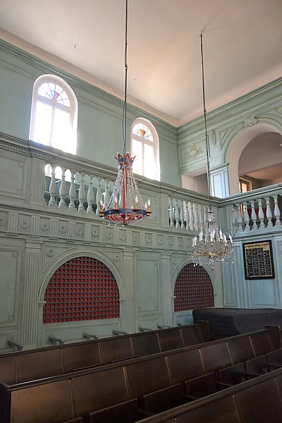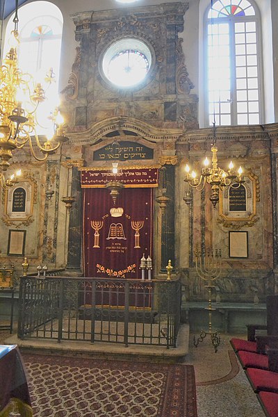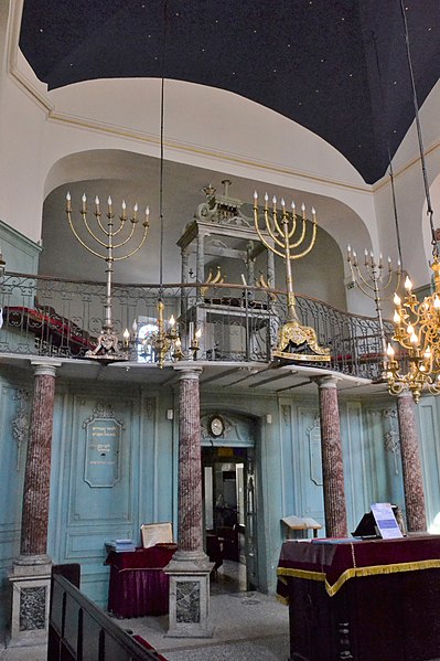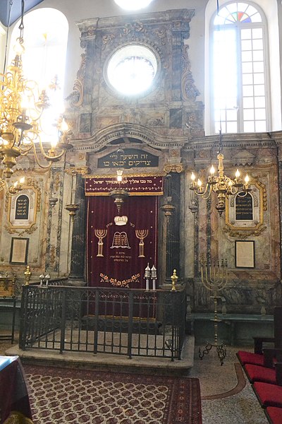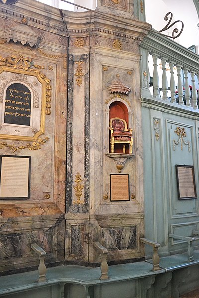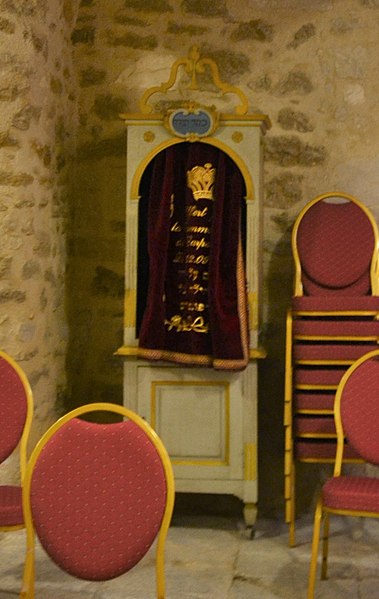 La synagogue subit plusieurs campagnes de restauration aux XVIIe et XVIIIe siècles ; une seconde tranche de travaux, menée de 1774 à 1776, donne l'aspect actuel de la salle de prière du premier étage, caractérisée par une décoration intérieure de style rococo avec des ferronneries italianisantes. Durant la Révolution, l'édifice est temporairement utilisé comme salle d'assemblée du club local et son mobilier est déposé et vendu à l'automne 1794 ; lorsque la communauté retrouve le temple en 1800, la salle est complètement dépouillée, mais une partie du décor est vraisemblablement reconstituée au XIXe siècle. Les boiseries destinées aux rouleaux de la Torah sont un don d'Abraham Alphandéry daté de l'année hébraïque 5567 (1807‑1808).