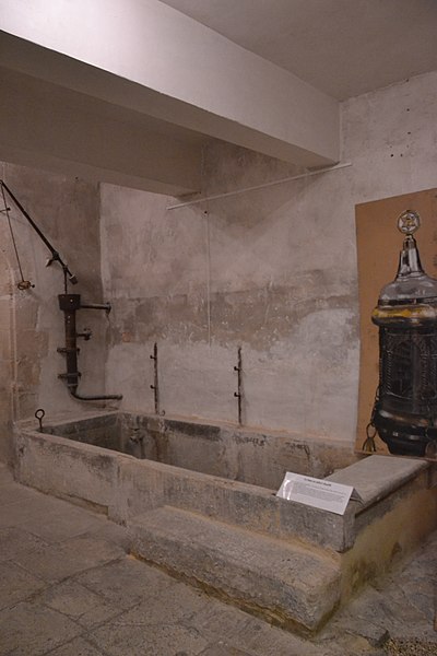 La synagogue demeure un lieu de vie communautaire : elle comprend, en plus de la salle de prières, un mikvé profond de dix mètres, un fournil pour la cuisson des pains azymes et une cour intérieure qui servait à l'abattage rituel. La salle de prière, de plan carré, est entièrement lambrissée et ornée de pilastres doriques supportant une frise de triglyphes et métopes. À l'extérieur, la façade de 1909 présente l'aspect d'un bâtiment classique sur deux niveaux au‑dessus du rez‑de‑chaussée ; elle est enduite et les encadrements évoquent la taille de pierre, tandis que la seule ouverture du rez‑de‑rue est une porte massive en bois ; une niche sur l'arche conserve le fauteuil du prophète Élie et une plaque de marbre rappelle l'histoire du lieu.