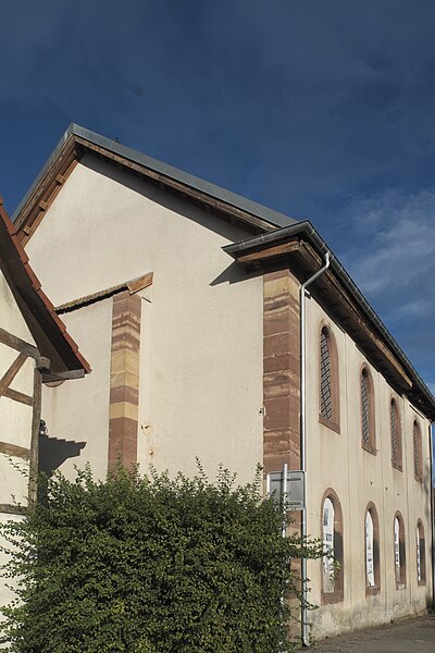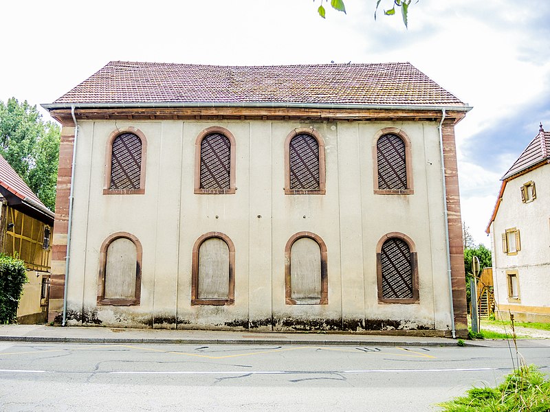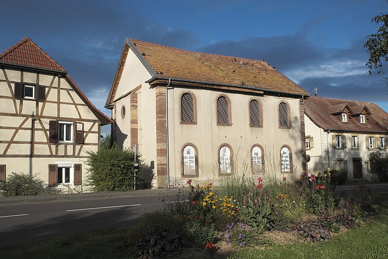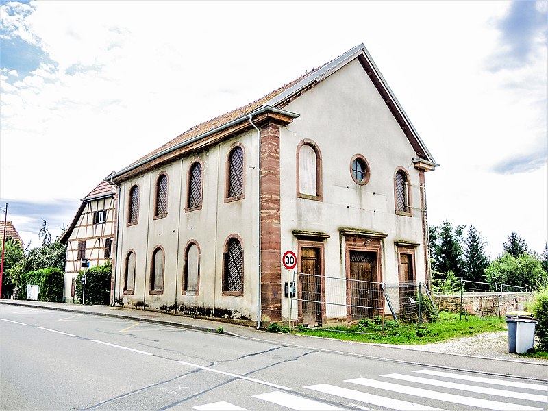 La synagogue de Foussemagne, située rue d'Alsace en face de l'hôtel de ville, est un ancien lieu de culte construit en 1864-1865. La communauté juive de Foussemagne remonte au XVIIIe siècle : six familles y vivaient en 1720 et vingt-deux en 1772, regroupées dans une partie du village et exerçant comme marchands de bétail et de chevaux, bouchers et colporteurs. Foussemagne est évoquée par le journaliste André Frossard comme la seule commune de France disposant d'une synagogue mais pas d'église. Le bâtiment est inscrit partiellement pour sa façade et sa toiture par arrêté du 21 décembre 1984 et, en 2022, il a été retenu par le loto du patrimoine au titre du Territoire de Belfort. Inaugurée le 8 juin 1865, la synagogue a remplacé un lieu de culte devenu trop petit et délabré. Organisé selon quatre axes, le bâtiment présente des fenêtres en arc de cercle sur deux niveaux et trois entrées sur le pignon ; une galerie était réservée aux femmes. Un bâtiment scolaire juif a été ajouté en 1880. Les migrations vers les villes ont fait décroître la communauté au point que, à partir de 1935, le minyan n'a plus été assuré. Après l'invasion allemande, la synagogue a été fermée et pillée en 1940. Vendue ensuite à un meunier, elle a longtemps servi d'entrepôt avant d'être rachetée par la municipalité de Foussemagne en 2008 en vue d'y installer un musée. En 2011, une plaque commémorative a été apposée sur la porte latérale gauche du pignon nord.