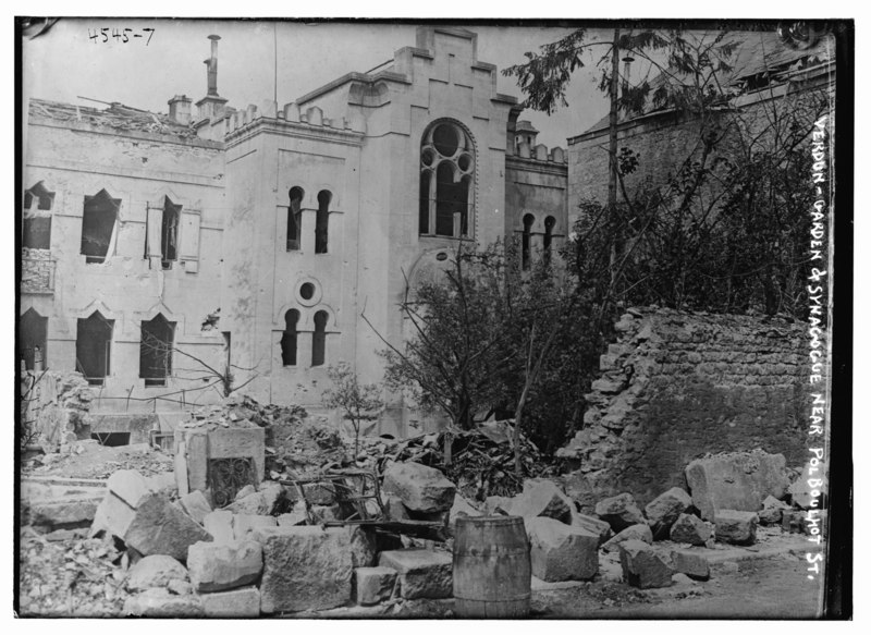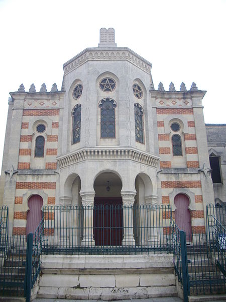 La première synagogue, construite en 1805 sur l'emplacement de l'ancien couvent des Jacobins, fut presque entièrement détruite par les bombardements de la guerre franco-allemande de 1870.