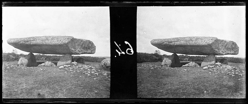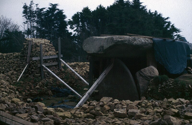 La plus ancienne représentation connue du dolmen figure dans l'ouvrage du président Robien (1753-1755) et une première mention possible est attribuée à La Tour d'Auvergne-Corret ; en 1811 Joachim Renaud explora le monument pour Maudet de Penhoët, qui publia une relation et une représentation. Dès le début du XIXe siècle le dolmen présente l'aspect qui le rendra célèbre comme un « dolmen typique », et dessins, gravures, photographies et cartes postales se multiplient aux XIXe et début du XXe siècles. Des plans rigoureux furent dressés par Lukis en 1844 et 1864 ; à partir de la fin du XIXe siècle des travaux de protection et des restaurations ont été entrepris : en 1883 des murs furent édifiés autour de la dalle de couverture, le site fut classé au titre des monuments historiques en 1889, des travaux eurent lieu en 1905, la restauration de Zacharie Le Rouzic en 1937-1938 reconstitua un cairn protecteur et suscita une vive polémique, et à partir de 1987 de nouvelles fouilles conduisirent à une remise en cause de cette reconstitution et à une nouvelle restauration du cairn en 1991.