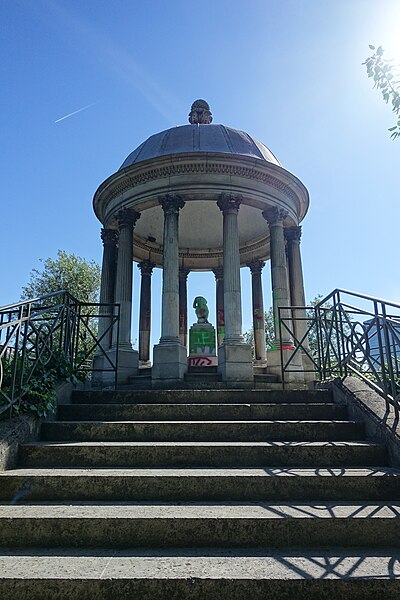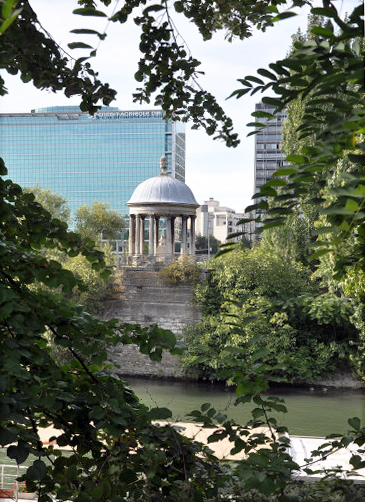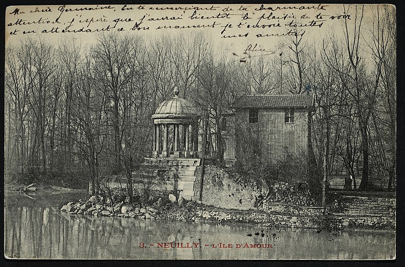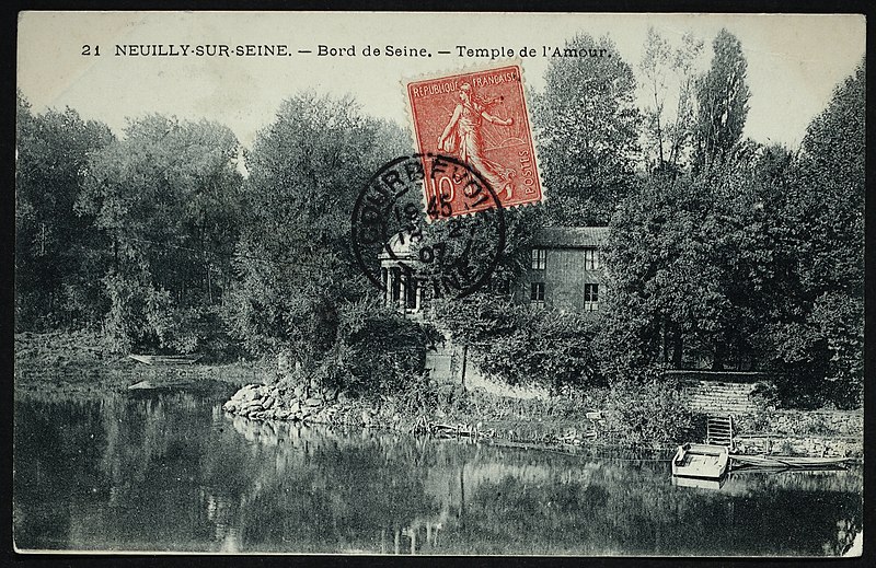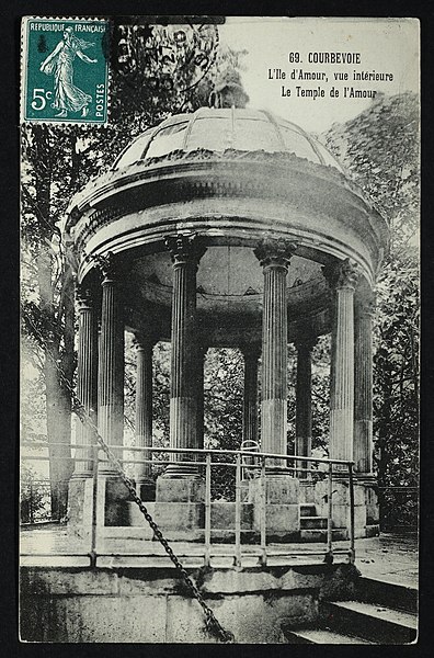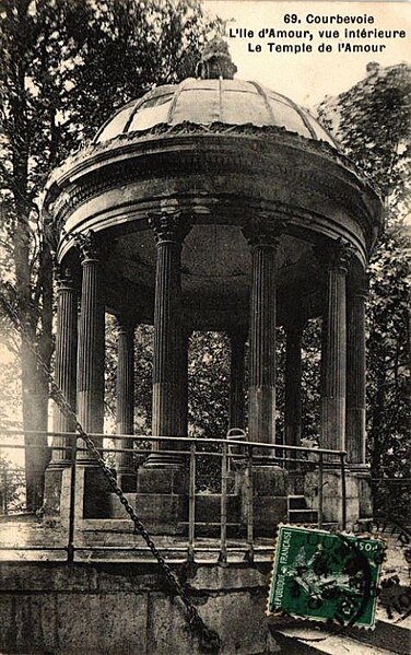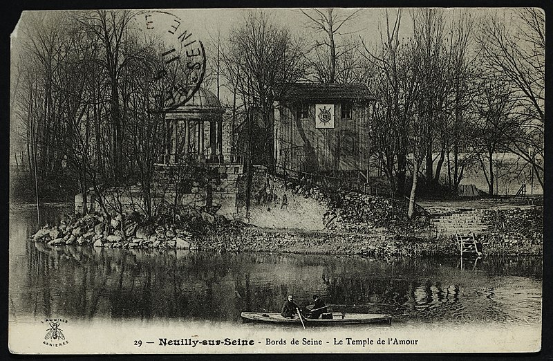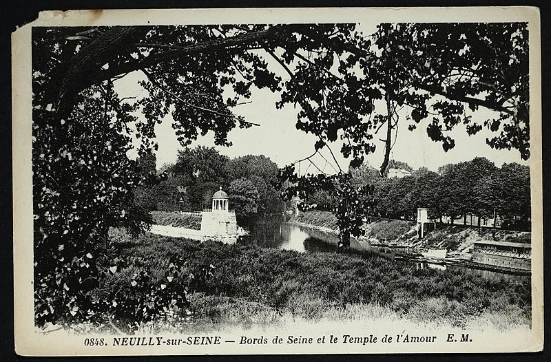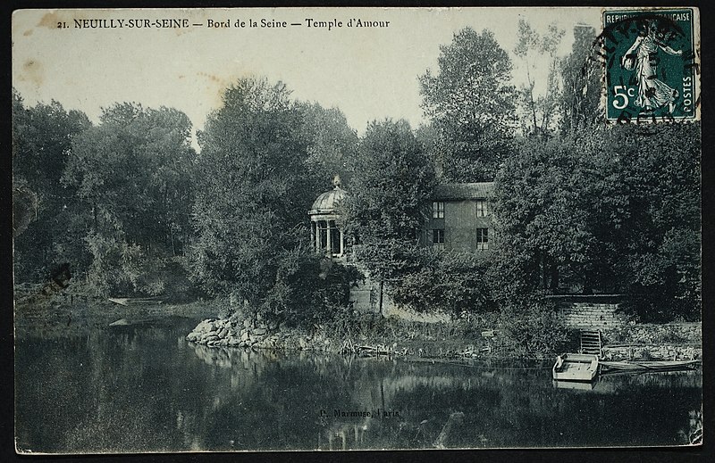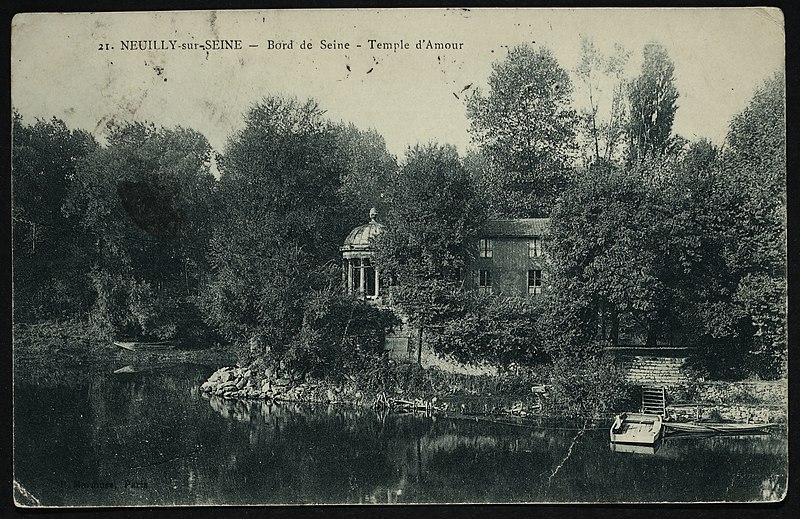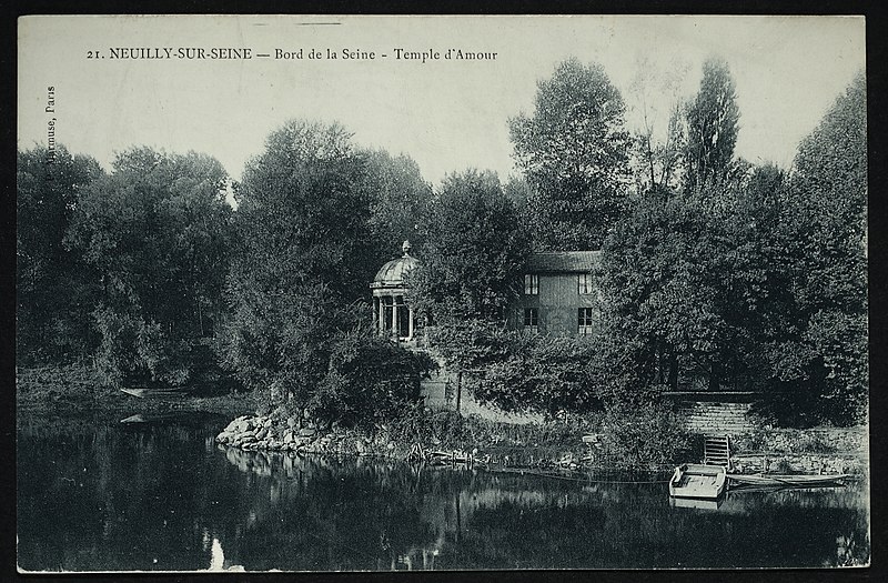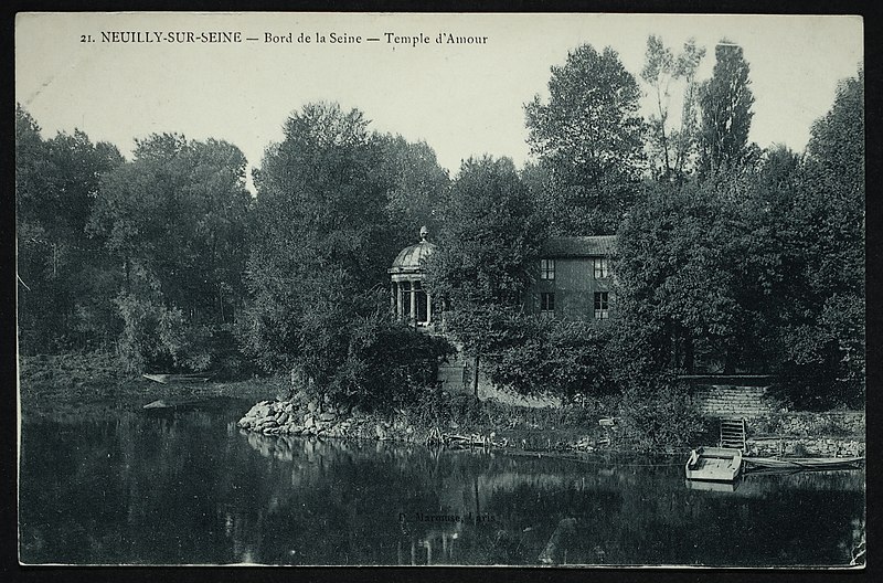 Le Temple de la Réserve du Roi, dit aussi Temple de l'Amour, se trouve à la pointe sud de l'île de la Jatte à Neuilly-sur-Seine (Hauts-de-Seine, Île-de-France). Il provient de la Folie de Chartres, l'actuel parc Monceau à Paris, créée par Louis Carrogis dit Carmontelle à la demande de Philippe d'Orléans ; dans ce parc à l'anglaise, de nombreuses fabriques animaient le paysage, dont ce temple alors appelé « Temple de Mars », réalisées sous la responsabilité de l'architecte Bernard Poyet. Après l'abandon du parc à la Révolution et des aménagements ultérieurs par la ville de Paris sous la conduite d'Adolphe Alphand, le fils de Philippe d'Orléans, futur Louis-Philippe, reprit la réserve du roi sur l'île de la Jatte et y aménagea, à partir de 1821, un jardin prolongeant son domaine de Neuilly ; un peu avant 1830 il fit transporter le temple depuis le parc Monceau et le renomma Temple de l'Amour. L'édifice a été classé au titre des monuments historiques par arrêté du 13 juin 1913. Installé au sommet d'une rocaille qui couronnait un îlot du « jardin enchanté », le temple fut transformé pour devenir temple de l'Amour : il reçut une coupole et une statue représentant une compagne d'Achille lors de son séjour chez le roi Lycomède. Les îlots qui le portaient ont été intégrés à l'île et forment aujourd'hui le promontoire allongé en amont ; le bâtiment a été transféré lors des travaux d'aménagement de la Seine en 1927 et déplacé à nouveau en 1930 pour être posé sur un busc maçonné. Il abrite désormais une nymphe en stuc. L'iconographie ancienne comprend des cartes postales et de nombreuses vues du temple depuis la rive et le pont de Neuilly. Pour approfondir, on peut consulter des catalogues d'exposition et des études citées dans les sources, ainsi que des ressources en ligne telles que Wikimedia Commons et les bases Mérimée et Structurae ; des notices et articles sur le parc Monceau, le château de Neuilly et l'île de la Jatte apportent également des compléments d'information.