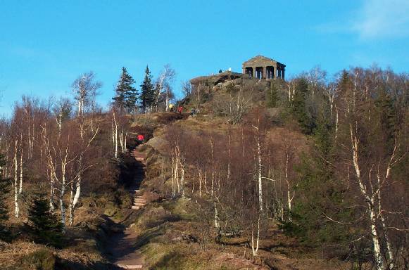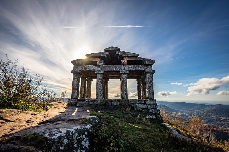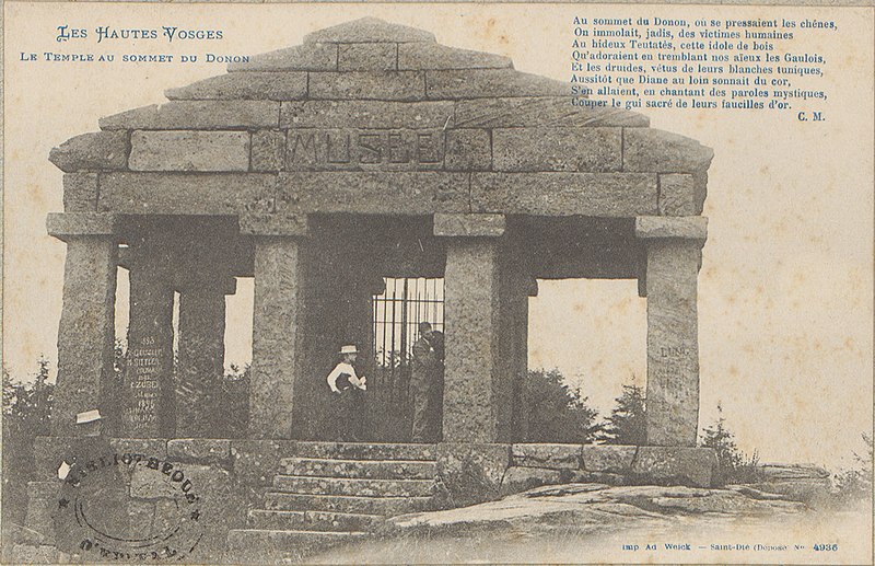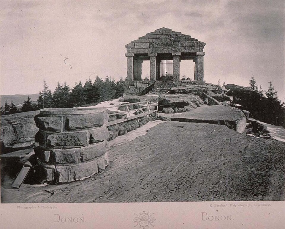 Au XIXe siècle, le sommet a servi de point de triangulation géodésique et une pyramide y avait été érigée ; un bâtiment de style gréco‑romain, inspiré de formes mégalithiques et destiné à abriter des découvertes archéologiques, a été édifié au sommet sur l’initiative du docteur Bédel et par l’architecte Louis‑Michel Boltz, et demeure l’emblème du lieu. Le Donon a aussi été au centre de rivalités territoriales et a conservé un rôle stratégique, notamment lors d’opérations militaires en 1940.