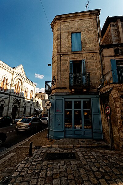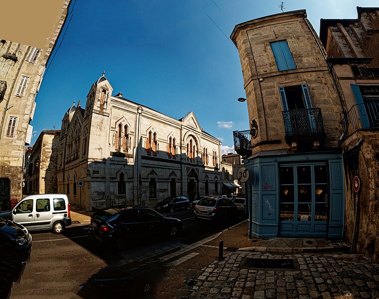 L'ancienne loge maçonnique, issue de la fusion de deux loges de Périgueux et prenant pour titre « les Amis persévérants et l'Étoile de Vésone réunis », s'installe le 1er mars 1857 dans la préfecture de la Dordogne, à Périgueux. L'immeuble, situé 10 rue Saint-Front à l'angle de la rue Notre-Dame, se trouve dans le secteur sauvegardé du centre-ville, à moins de cent mètres au nord de la cathédrale Saint-Front. À la fin du XVIIIe siècle, les lieux abritaient une salle de comédie aménagée dans une ancienne auberge ; après la construction d'un nouveau théâtre sur les boulevards (1836-1838), les locaux furent libérés et loués à une loge en 1841, puis aménagés dès 1842. Cinq francs-maçons — François Bellé, Alexis Clerveaux, Ferdinand Millet-Lacombe, Émile Picot et Jean Régnier — achetèrent le bâtiment à la veuve du docteur Renaud après 1858. En 1858 la ville décida de créer la rue Saint-Front et, lors du percement de 1861, concéda à la loge la parcelle sur laquelle devait s'avancer la nouvelle façade. Les plans de la façade, les sculptures et les travaux furent réalisés par l'architecte Lambert, l'artiste Grasset et l'entrepreneur Eyssalet ; les travaux eurent lieu en 1868-1869 et le temple fut inauguré le 4 juillet 1869. En 1876 une scission entraîna la création d'une nouvelle loge dite « la Tolérance ». Les parties latérales du bâtiment furent acquises en 1885 et 1887 par plusieurs francs-maçons, puis, en 1891, la société anonyme immobilière « L'Orient de Périgueux » reçut le temple et ces deux immeubles. L'extrémité du côté de la rue Notre-Dame fut élevée entre 1885 et 1901 ; le projet symétrique rue de la Constitution n'a pas pu être réalisé faute d'acquisition du bail de la boulangerie. La loi du 14 août 1940 supprima la franc-maçonnerie et, sur ordre du régime de Vichy, les sculptures aux emblèmes maçonniques furent détruites au début de 1941 ; elles ne furent reconstituées qu'en 1987. Les façades nord et ouest, édifiées au XIXe siècle, ont été inscrites au titre des monuments historiques par arrêté du 29 octobre 1975 pour leurs façades et leurs toitures.