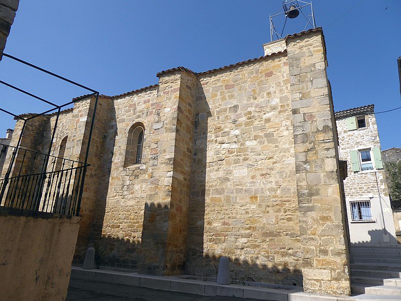 La construction actuelle remonte vraisemblablement au XIIe siècle. L'appareil extérieur des murs, notamment à l'abside, montre l'emploi de pierres de réemploi, témoignant d'un édifice antérieur dont des éléments ont été réutilisés. Au XVIe siècle, la population convertie à la Réforme transforme l'église en temple. L'édit de Nantes rend ensuite l'église au culte catholique. En 1598, les Réformés décident de bâtir un nouveau temple, qui sera détruit lors de la révocation de l'édit de Nantes. En 1792, l'église est vendue puis rachetée par les Réformés. L'édifice présente une nef voûtée en berceau plein cintre sur doubleaux, terminée par une abside dont la voûte en cul-de-four est plus basse que celle de la nef. La façade est surmontée d'un petit clocher récent; la porte paraît dater du XVIIe siècle et les vitraux datent de 1928.