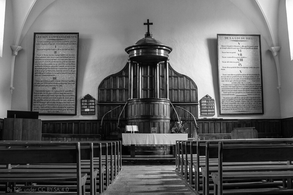 Le temple protestant de Vabre, situé rue de la Chambrette dans le Tarn, est un lieu de culte urbain de forme simple — un quadrangle rectangulaire selon Bernard Reymond. Il compte parmi les plus grands temples de France. Un premier édifice fut érigé vers 1801 ; la communauté racheta ensuite l'ancien château et, en 1804, les pierres de ce dernier permirent vraisemblablement de rebâtir le temple massif qui subsiste. La paroisse, membre de l'Église protestante unie de France, est inscrite au titre des monuments historiques par arrêté du 20 mai 2015. Dès la Renaissance, Vabre adhéra précocement aux idées de la Réforme ; sous l'Ancien Régime les protestants furent persécutés — condamnations aux galères, mises à mort et dragonnades après la révocation de l'édit de Nantes — pour faits d'assemblée et pratiques de la « Religion prétendument réformée ». La liberté de culte fut rétablie lors de la Révolution française avec la Déclaration des droits de l'homme et du citoyen de 1789. Pendant la Seconde Guerre mondiale, la communauté et son pasteur protégèrent des réfugiés, notamment des Juifs, et rejoignirent la Résistance organisée autour de Guy de Rouville. Parmi les paroissiens notables figurent le pasteur Frank Christol, qui exerça avant d'être à l'Église protestante française de Londres pendant la guerre ; le pasteur et théologien Jean Cadier (1898-1981), natif de Vabre et fils du pasteur Gustave Cadier ; les pasteurs Robert Cook (1907-2003) et Daniel Sens (1913-2005), reconnus Justes parmi les Nations ; le résistant Guy de Rouville (1915-2017) ; et Simone Iff (1924-2014), militante du droit à l'avortement et fille du pasteur Frantz Balfet.