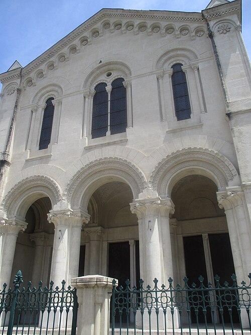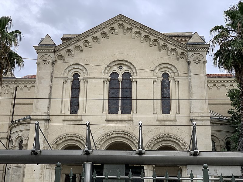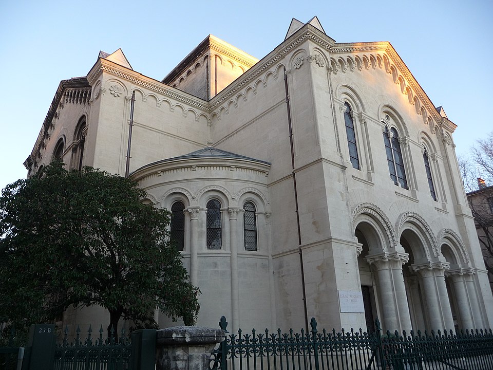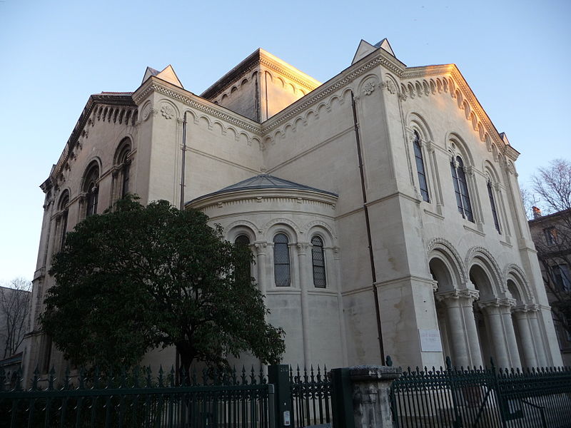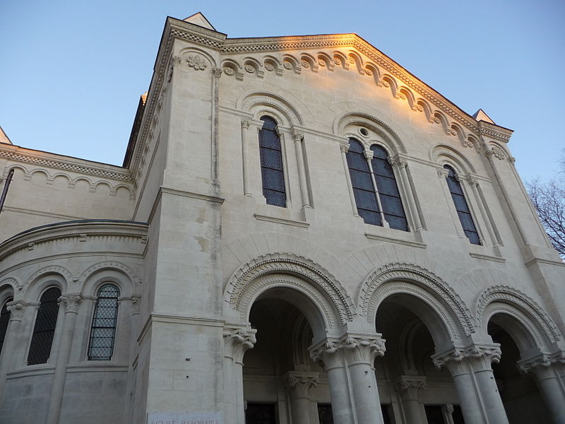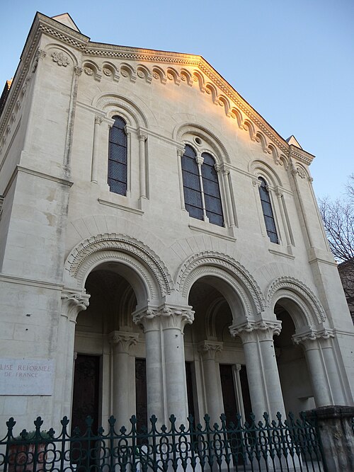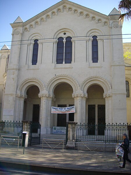 Un concours d’architecture organisé en mars 1862 reçut quarante‑deux projets ; les esquisses de Bouwens et d’Estibot furent retenues, mais c’est Louis Corvetto qui réalisa l’ouvrage. Le temple fut inauguré officiellement le 18 mars 1870. Des modifications ultérieures incluent l’ablation en 1885 d’un clocher non prévu au plan originel, jugé dangereux, et l’installation d’un orgue en 1893. L’édifice a été inscrit aux monuments historiques le 10 février 2003.