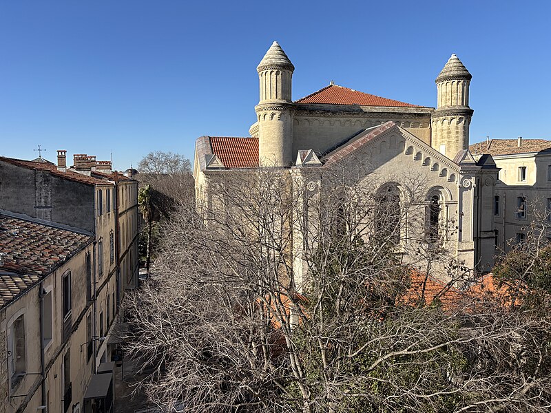 Le bâtiment se révéla rapidement insuffisant et en mauvais état, la communauté ayant atteint 3 324 fidèles en 1851 ; la question d’une nouvelle construction fut discutée régulièrement à partir de 1850. Dans le cadre des grands travaux urbains menés à Montpellier, la rue de Maguelone fut choisie pour accueillir un ensemble réunissant le temple, les écoles, le logement du pasteur, un hospice et un asile. Les ressources provinrent de deux souscriptions locales lancées en 1860 et 1867, de la vente de l’ancien temple, d’une promesse de participation de la ville et d’un engagement de l’État dans le cadre du régime concordataire. Le budget initial prévoyait 56 000 francs pour le terrain et 200 000 francs pour les travaux, mais la construction coûta finalement près de 350 000 francs.