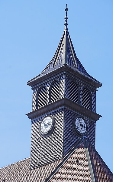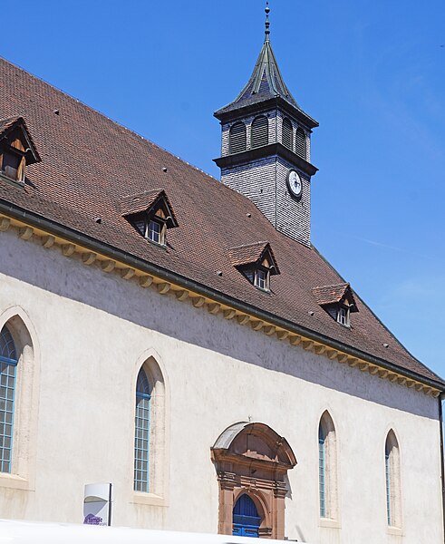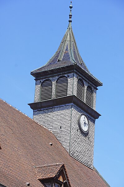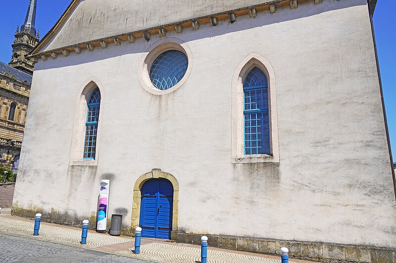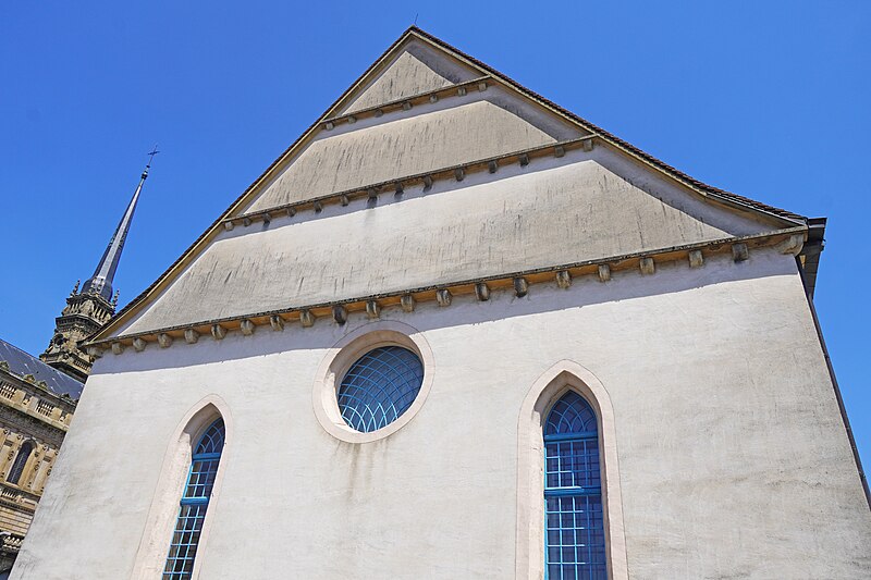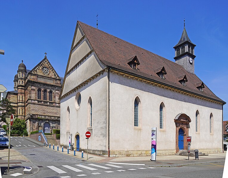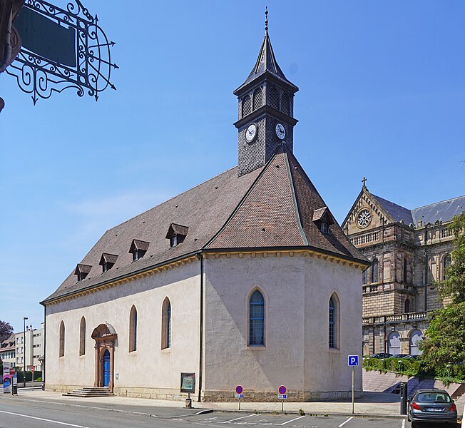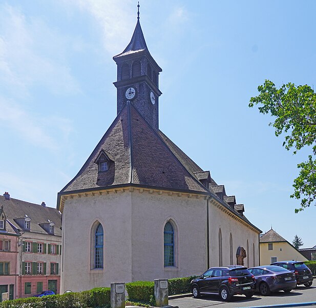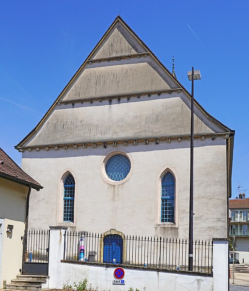 Deuxième édifice protestant de la ville, il a été érigé à partir de 1674 sur décision du prince Georges II de Wurtemberg pour suppléer le temple Saint-Martin, devenu insuffisant face à l'afflux de réfugiés huguenots et aux nouveaux habitants du quartier de la Neuve Ville (actuel faubourg de Besançon). Les travaux furent interrompus en 1676 lors de l'occupation conduite par le maréchal de Luxembourg au service du roi Louis XIV ; le bâtiment, déjà couvert, servit alors de magasin à fourrage. Achevé entre 1732 et 1739, il fut donné à la ville par le duc Louis Eberhard de Wurtemberg le 23 juillet 1733 et consacré le 29 décembre 1739, date portée par une inscription. En 1764, un marché prévit la reconstruction du campanile à son emplacement actuel et l'aménagement d'une tribune intérieure. Des réparations de façades eurent lieu en 1897. Désaffecté après 1949, il servit un temps d'entrepôt pour de vieux papiers destinés au recyclage. Sa toiture, refaite récemment en bardeaux d'asphalte, fut ravagée par un incendie le 7 avril 1987 ; la restauration effectuée en 1988 par « les Compagnons de France » a permis son aménagement en centre de conférence.