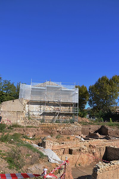 Le site archéologique de la Verrerie de Trinquetaille, acquis par la ville d'Arles en 1978, a fait l'objet de fouilles dans les années 1980 puis, depuis 2013, sous la direction conjointe du service archéologique du musée départemental Arles antique et de l'Institut national de recherches archéologiques préventives (INRAP), avec la contribution du ministère de la Culture et de la Communication, du CNRS, d'une université et de chercheurs indépendants. L'opération a été conduite par Marie-Pierre Rothé (archéologue, CD13 - MDAA), avec Julien Boislève (toichographologue, INRAP) et Alain Genot (archéologue, CD13 - MDAA) comme co-responsables. Le site se situe sur la rive droite du Rhône, à Arelate (Arles), une zone occupée pendant l'Antiquité. Les fouilles ont mis au jour des occupations allant du Ier siècle av. J.-C. au IIIe siècle apr. J.-C., et ont notamment porté sur une demeure riche datée du milieu du Ier siècle av. J.-C. Cette domus, construite entre 70 et 50 av. J.-C., a été explorée sur une surface de 105 m² et scellée par des constructions postérieures. Les archéologues ont fouillé deux pièces mitoyennes et la cour intérieure adjacente, révélant de nombreux décors peints de sols, murs et plafonds, certains fragments demeurant en place sur les murs. Ces peintures relèvent stylistiquement du deuxième style pompéien, connu en Italie à Pompéi, Boscoreale et Herculanum, et, en Gaule, ce type de décor daté entre -70 et -30 reste rarissime, ce qui confère une importance exceptionnelle aux surfaces peintes découvertes à la Verrerie. Parmi les découvertes figure une grande fresque représentant une harpiste peinte sur fond rouge vermillon, pigment coûteux; la qualité de la figuration, l'expressivité des regards et le rendu des volumes suggèrent l'intervention d'un artisan probablement originaire d'Italie. La cour de la domus était partiellement couverte par un atrium desservant plusieurs espaces, dont cinq ont été identifiés ; sa galerie est ornée de peintures murales et présente un sol en terre battue. Au centre de l'atrium se trouve un impluvium, bassin peu profond réalisé en blocs de calcaire, avec un puits-citerne à son extrémité sud-est ; les bords de l'ouverture du toit étaient garnis de plaques de terre cuite décorées de palmettes et d'un protomé de chien. La galerie donne accès à deux pièces fouillées au nord-nord-ouest dont les peintures sont typiques du deuxième style pompéien : une salle à manger de 16 m² (répertoriée VIIIb) au sol en béton incrusté d'éclats de roches colorées et dotée d'une petite frise d'Amours chasseurs dans une alcôve, et une salle de réception de 17 m² (répertoriée VIIIa), centrée sur l'impluvium et au décor somptueux, témoignant du haut statut du propriétaire. Des occupations postérieures ont révélé d'autres domus luxueuses pourvues de bassins en marbre et fontaines, de grandes pièces aux sols mosaïqués et, dans l'une d'elles, d'un système de chauffage par hypocauste. La mosaïque de l'Aiôn, datée de la fin du IIe siècle et provenant d'un triclinium, constitue l'une des pièces majeures exposées au musée départemental Arles antique ; son médaillon central représente Aiôn (Annus), symbole du renouvellement des saisons. Vers la fin du IIIe siècle, les vestiges montrent une destruction violente du secteur suivie d'un abandon. Les terrains contenant ces vestiges ont été classés au titre des monuments historiques par arrêté du 21 octobre 1953. Les fouilles ont été définitivement closes en 2019 ; par convention avec la Ville d'Arles, le site a été mis à disposition de l'Association Vers un tiers-lieu en pays d'Arles, qui a engagé l'aménagement des extérieurs, commencé par un jardin de 4 000 m², et porte un projet de réhabilitation architecturale et paysagère. Le musée départemental Arles antique conserve sur place une importante collection de mosaïques et dispose d'un atelier réputé de restauration de mosaïques.