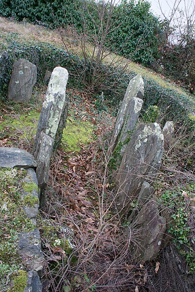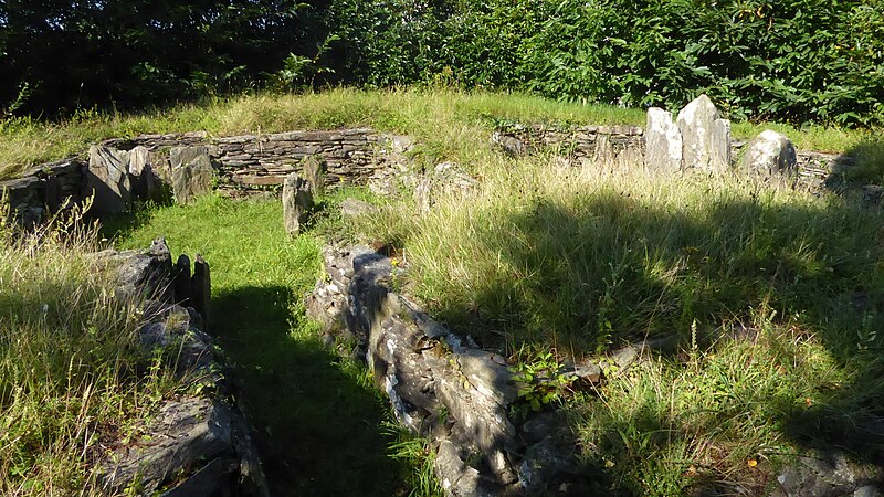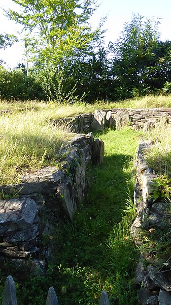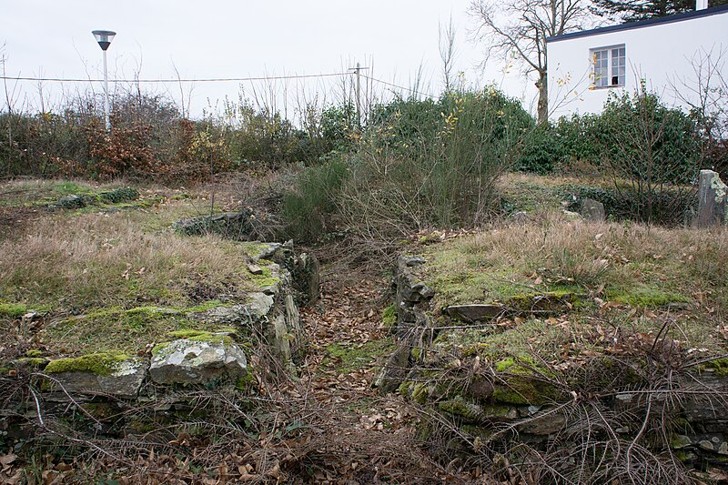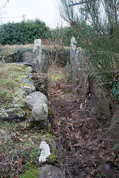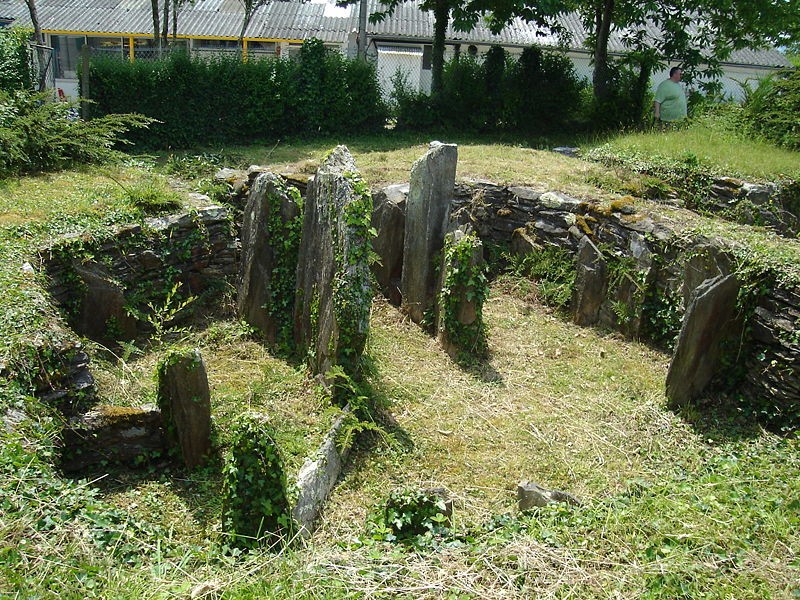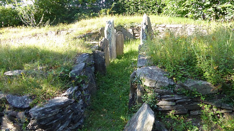 Du premier cairn ne subsistent que le côté est et une partie de la façade sud ; il devait être approximativement carré et mesurer environ 12 m de côté, l'angle sud‑est étant arrondi. La façade sud conserve un seul mur de parement et la façade est en comporte deux. Seule la partie sud‑est de la chambre est visible, ainsi qu'une portion du couloir d'accès de forme quadrangulaire, délimité par une alternance de murets en plaquettes et d'orthostates. Le sol du couloir comportait un dallage formé de trois dalles longues disposées perpendiculairement à son axe.