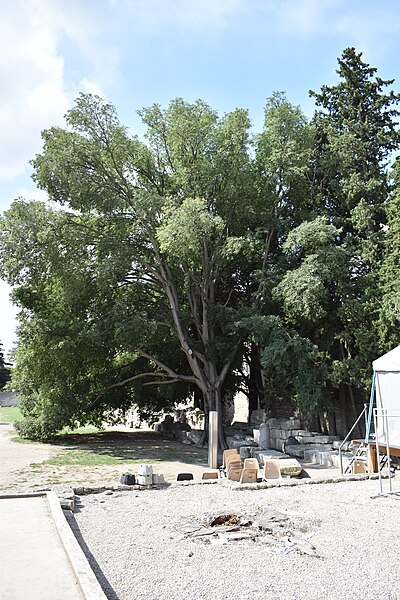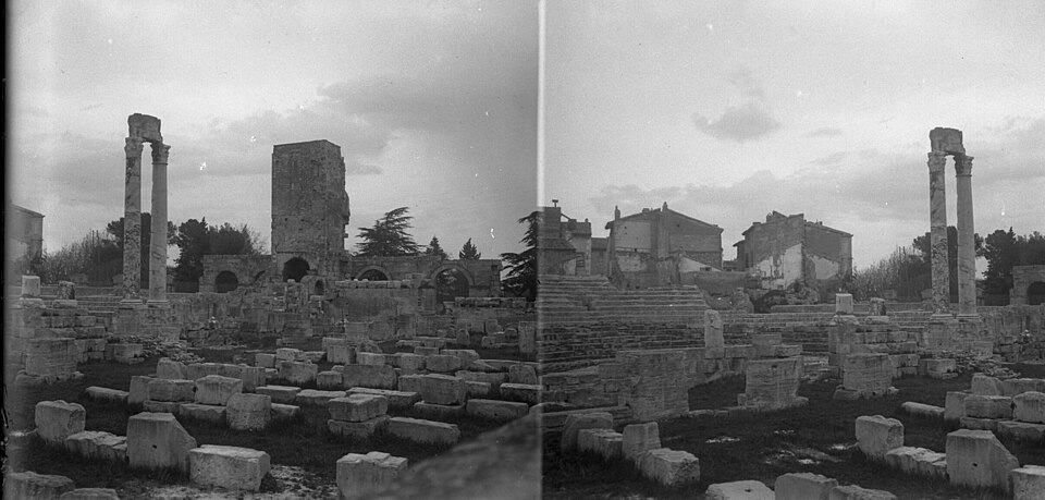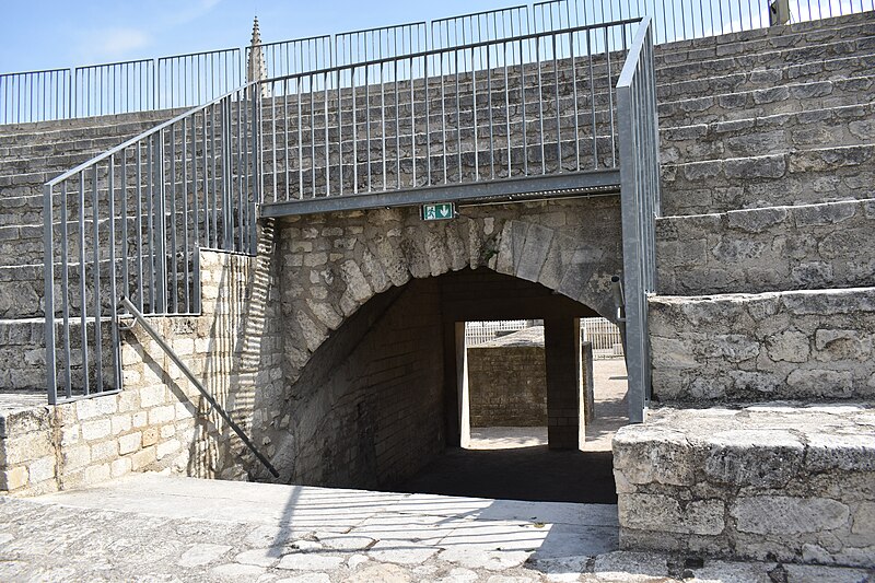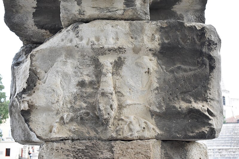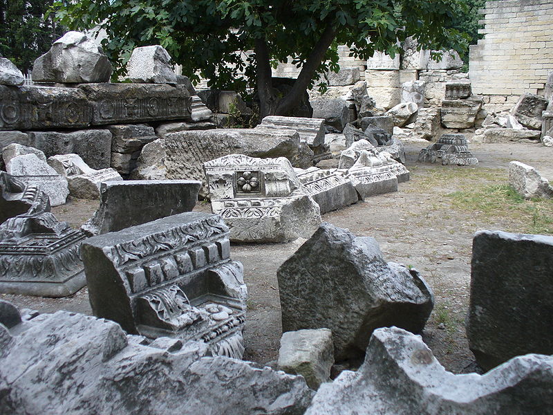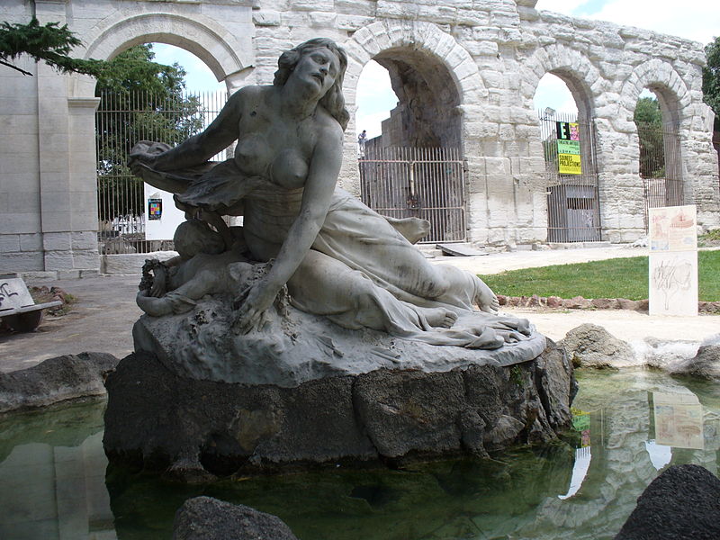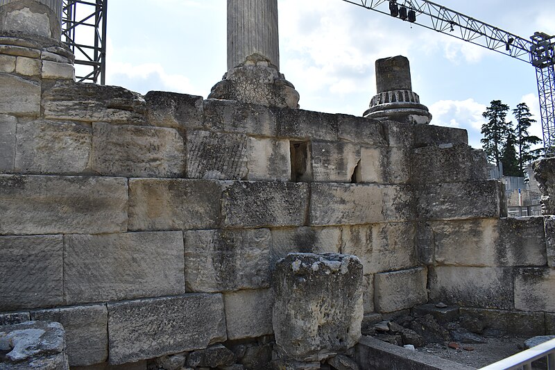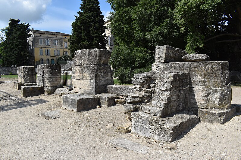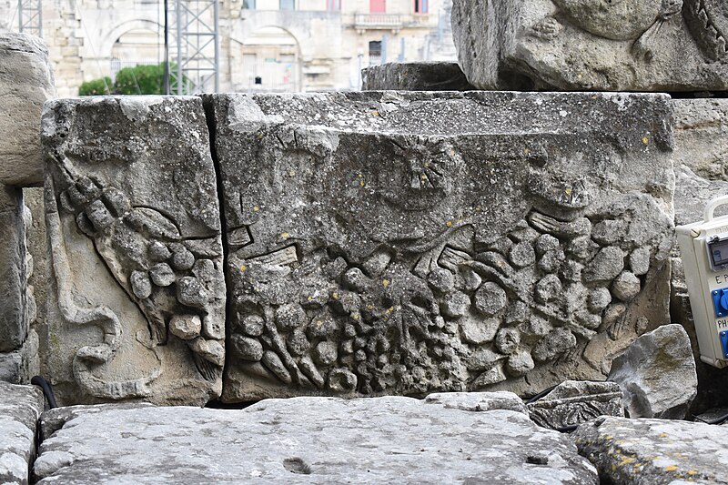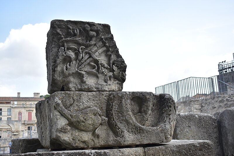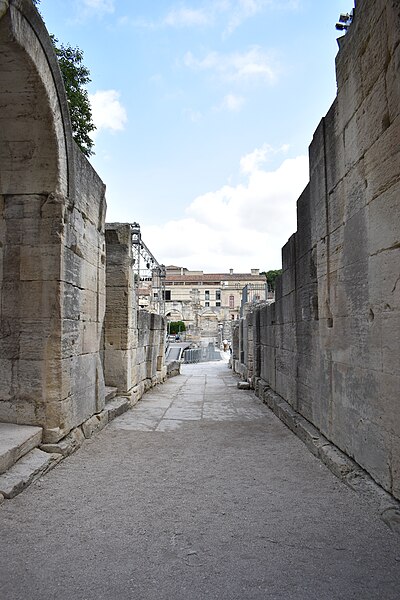 Le théâtre romain d'Arles a été construit à la fin du Ier siècle av. J.-C., sa construction s'achevant vraisemblablement vers 12 av. J.-C., peu après la fondation de la colonie romaine sous Auguste. Installé sur le decumanus, au sommet de la colline de l'Hauture, il fait partie des premiers théâtres en pierre du monde romain. Ne pouvant s'appuyer sur un flanc rocheux, la cavea repose entièrement sur un vaste appareil de substructures constitué de galeries concentriques et de salles voûtées rayonnantes. D'un diamètre de 102 mètres, la cavea comportait 33 rangées de gradins et pouvait accueillir environ 10 000 spectateurs, répartis selon les classes sociales : le peuple dans les rangs supérieurs, les chevaliers et notables sur les gradins inférieurs et dans l'orchestre. Les arcades extérieures, encore partiellement conservées, présentent une superposition de trois ordres doriques tardo‑antiques qui ne suivent pas les modèles vitruviens ; leur ornementation fut copiée au XVIe siècle dans des monuments comme le jubé de la cathédrale de Bordeaux ou le château d'Uzès. La scène reposait sur une plate‑forme de bois longue de 50 mètres et large de 6 mètres, dont les substructions abritaient la machinerie du théâtre. Le mur de scène comportait une centaine de colonnes d'ordre corinthien réparties sur trois niveaux ; seules deux d'entre elles subsistent aujourd'hui, surnommées « les deux veuves ». Des niches du mur accueillaient une statuaire d'inspiration grecque, parmi laquelle la Vénus d'Arles, retrouvée sur le site, fait aujourd'hui partie des collections du Louvre après une restauration controversée. Le théâtre recevait des spectacles de tragédie, comédie, mimes et pantomimes d'origine romaine ou grecque, principalement lors de fêtes religieuses ; ces représentations étaient gratuites et destinées à un public jugé plus raffiné. Parfois, des représentations étaient réservées aux hommes et les femmes et les enfants devaient être accompagnés par un homme adulte. Jean‑Louis Vaudoyer a qualifié le théâtre d'Arles de « seul théâtre grec, en France », en référence au répertoire antique joué sur ce lieu. Le monument resta en usage jusqu'au début du Ve siècle ; on rapporte également qu'une représentation grandiose y fut offerte par l'empereur Constance II le 10 octobre 353. À l'époque paléochrétienne, l'Église utilisa une partie du théâtre comme carrière pour la construction de la basilique Saint‑Étienne, entreprise sous l'épiscopat d'Hilaire. Entre la fin du VIe et le début du VIIIe siècle, un mur du théâtre fut probablement renforcé et intégré à l'enceinte urbaine, complété d'une tour dite « Tour de Rotland ». Le terrain fut ensuite loti et occupé par des habitations, hôtels particuliers et établissements religieux, notamment un collège jésuite et une communauté de Sœurs de la Miséricorde ; au XVIIIe siècle, la cour du couvent servit à présenter des découvertes archéologiques. Les premières fouilles dès le XVIIe siècle ont mis au jour de nombreux vestiges, et des campagnes de dégagement plus systématiques commencèrent en 1828 sous l'impulsion du maire baron de Chartrouse ; les travaux, repris dans les années 1840, s'achevèrent en 1860. Parmi les découvertes figurent la Vénus d'Arles, un buste d'Auguste en Apollon et la tête d'Arles, aujourd'hui au Musée de l'Arles antique. Le théâtre est inscrit sur la liste des monuments historiques de 1840 dressée par Prosper Mérimée et figure depuis 1981 sur la liste du patrimoine mondial de l'UNESCO. Aujourd'hui le site est visitable : de l'élévation antique soutenant la cavea il ne subsiste qu'une travée absorbée au Moyen Âge dans le rempart et transformée en tour de défense. L'orchestre conserve l'empreinte du scellement de l'autel aux cygnes, emblème d'Auguste voué à Apollon, et deux colonnes isolées demeurent comme vestiges visibles du mur de scène. Le théâtre reste par ailleurs un lieu de spectacles et accueille notamment, entre fin juin et fin août, les Fêtes d'Arles et du costume, les Rencontres Internationales de la Photographie, le festival Les Suds, les Escales du Cargo et le Festival du film péplum.