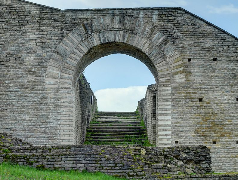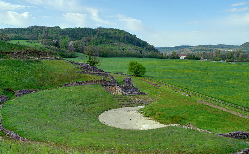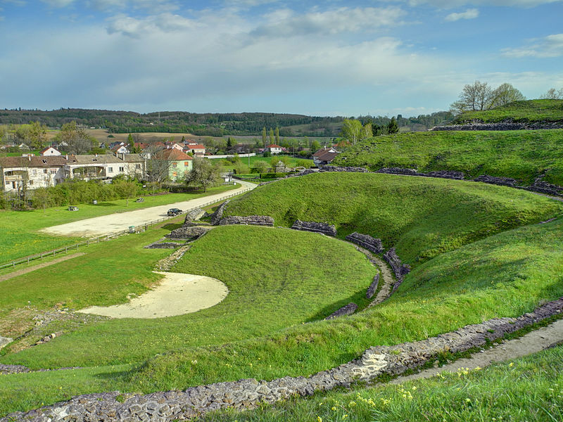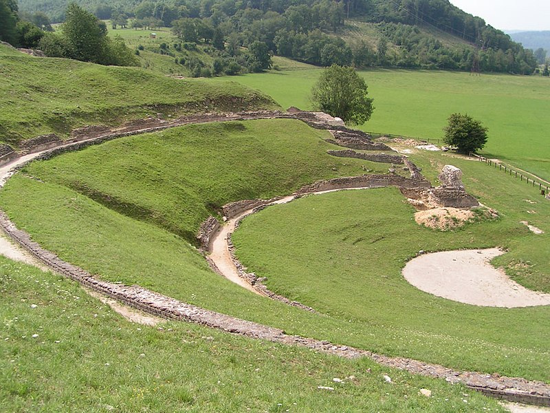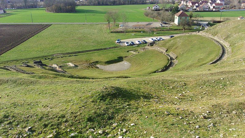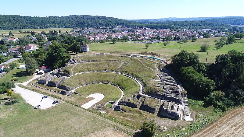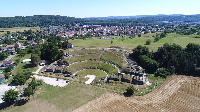 Le théâtre gallo-romain de Mandeure, dans le pays de Montbéliard (Doubs), date du Ier siècle et est contemporain du Colisée de Rome ; il est considéré comme le plus grand théâtre gallo-romain connu. Découvert en 1819, il a fait l’objet de fouilles en 1820 puis à partir de 1946, et bénéficie de la protection des monuments historiques. Érigé dans la cité antique d’Épomanduodurum, il faisait partie d’un vaste ensemble cultuel appelé le clos du château, qui s’étendait sur plus de dix hectares et faisait face à un imposant sanctuaire. L’arrêt de son usage demeure incertain ; à partir du IVe siècle, ses matériaux ont été réutilisés, notamment pour les fortifications du Bas-Empire. Le site était identifié comme site archéologique dès le XVIIe siècle par Schickhardt, mais les fouilles, engagées au XIXe siècle, ont connu des interruptions par manque de crédits. La construction semble s’être déroulée en trois phases et il est proposé que le théâtre ait succédé à une arène. Il constituait l’une des principales constructions de la cité et a structuré l’organisation urbaine, d’autres bâtiments modestes étant alignés sur lui. Le terrain est classé depuis le 23 mai 1912, la zone ayant été intégrée en 1972 à un site inscrit de cinquante hectares, et le théâtre est classé au titre des monuments historiques depuis le 12 mars 1964. Avec 150 mètres de diamètre et une capacité estimée entre 15 000 et 18 000 places, il devance le théâtre d’Autun, long de 148 mètres. Adossé à une colline, il est en partie taillé dans le rocher et en partie soutenu par des substructions maçonnées. Des fouilles récentes ont montré qu’une fermeture continue existait sur toute la façade diamétrale, longtemps considérée comme absente ; cette façade, haute de 30 mètres, était composée d’arcades en grand appareil et divisée en trois parties, les ailes nord et sud étant symétriques avec neuf arcades chacune, tandis que la partie centrale était plus basse et non ajourée. Les gradins, distribués sur quatre étages ou maeniana, s’appuyaient sur le versant et recouvraient un réseau d’escaliers et de couloirs ainsi que des loges et des espaces de stockage pour les décors. La scène comprenait une orchestra semi-circulaire, relativement réduite et dallée de calcaire, ainsi qu’un pulpitum rectangulaire accolé à la façade diamétrale. Le théâtre était relié à un bâtiment de fonction inconnue par une galerie longue de plus de cinquante mètres et large de cinq, où des fragments de colonnes et des objets d’offrande confèrent un caractère monumental à l’ensemble. La décoration s’étendait sur 360 mètres de façades linéaires répartis sur trois niveaux et comportait des éléments classiques tels que colonnes d’ordre corinthien, pilastres, entablement à moulure lisse et corniches modillonaires. La porte nord a été restaurée. Le site est aujourd’hui dans un remarquable état de conservation ; il est accessible au public, mais l’offre d’accompagnement pédagogique reste à développer. Un pavillon archéologique d’accueil et d’exposition et un petit jardin pédagogique sont en projet.