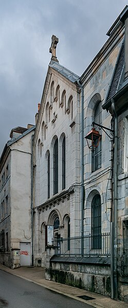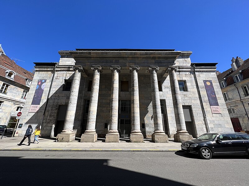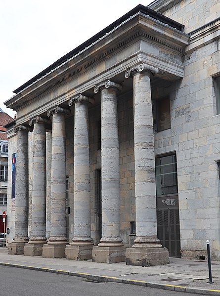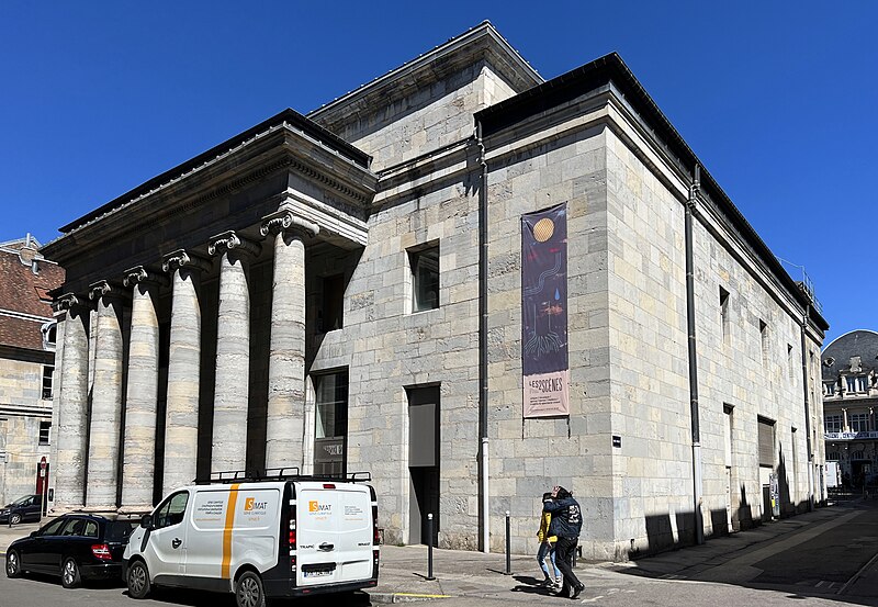 Le théâtre Ledoux, situé dans le centre historique de Besançon, est une salle de spectacle accueillant opéra, théâtre et concerts ; il fut autrefois nommé théâtre musical. En 1768, Charles-André de Lacoré engage la création d'un théâtre pour la nouvelle capitale franc-comtoise. L'Opéra est construit entre 1778 et 1784 par l'architecte Claude Joseph Alexandre Bertrand d'après les plans de Claude-Nicolas Ledoux. L'architecture extérieure, inspirée de l'Antiquité, présente un portique à colonnes ioniques et une toiture en tronc de pyramide ; l'édifice, en pierre calcaire bleutée et ocre provenant des carrières de la Combe-aux-Chiens, adopte une forme en croix latine. À l'intérieur, Ledoux privilégie un espace ouvert sans loges cloisonnées, afin d'améliorer la visibilité, et place l'orchestre dans une fosse en avant de la scène. Une maquette du théâtre de Ledoux est exposée à la Saline royale d'Arc-et-Senans. La façade, le vestibule d'entrée et la salle font l'objet d'un classement au titre des monuments historiques depuis le 15 juillet 1928. L'intérieur a été rénové et modifié en 1857, l'attribution des travaux étant parfois portée à Delacroix ou à Davillé. En avril 1958, un incendie ravage l'édifice ; ne subsistent que la façade avec ses six colonnes ioniques et un auditorium. Le bâtiment est partiellement restauré dans les mois qui suivent. L'intérieur est réaménagé en 1994 : les fauteuils sont disposés sur trois niveaux entourant la scène pour offrir des vues sous tous les angles, et la capacité est d'environ 1 100 sièges (contre 2 000 en 1857). En 2010, l'association Espace 7 propose la reconstitution de la salle dans son état historique ; si cette initiative n'a pas eu un large retentissement, elle a remis en lumière le caractère avant‑gardiste du projet de Ledoux.