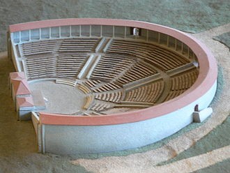 La construction était d'un type fréquemment utilisé en Gaule, joignant la pierre à un large usage du bois. Utilisant une pente naturelle du terrain, les gradins étaient construits dans ce dernier matériau.