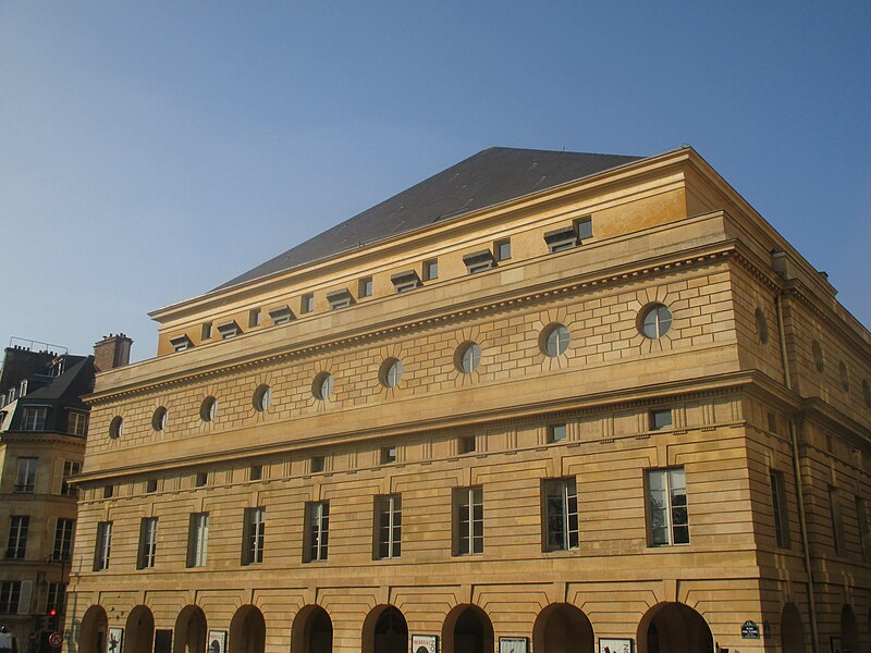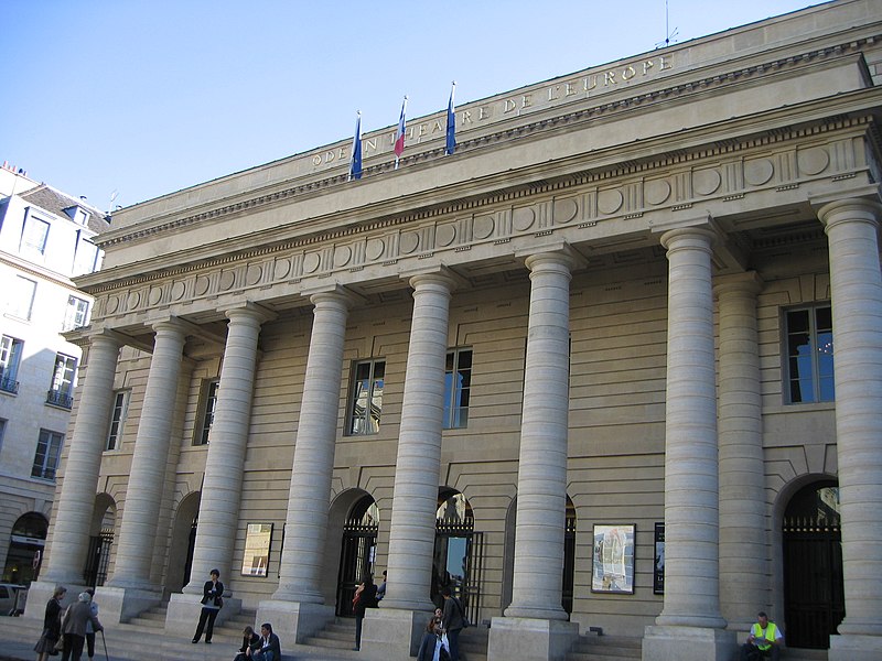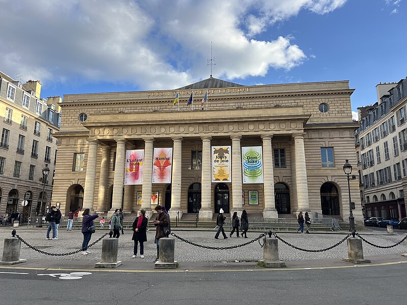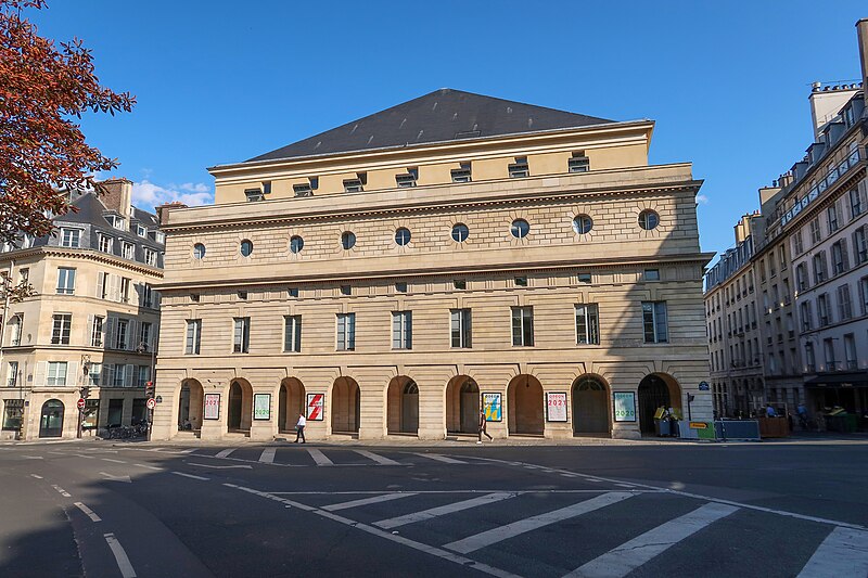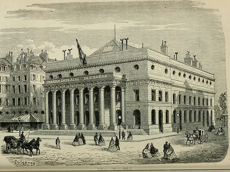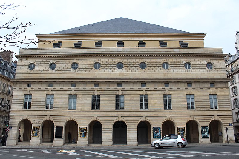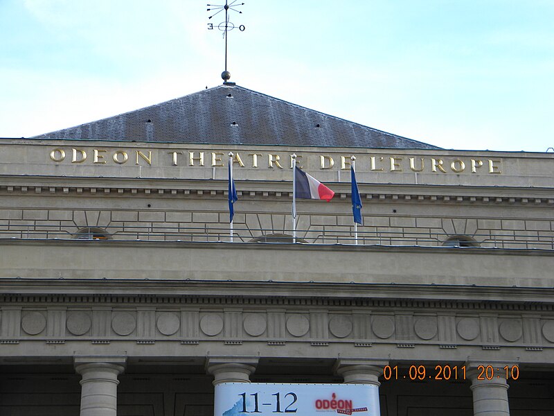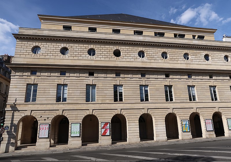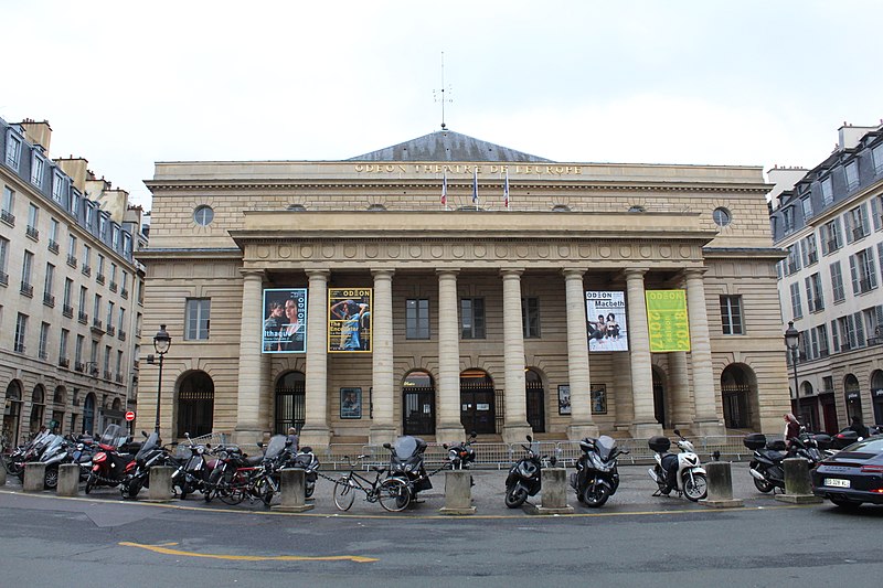 Le théâtre de l'Odéon, situé place de l'Odéon dans le 6e arrondissement de Paris, a été élevé à la fin du XVIIIe siècle par Marie-Joseph Peyre et Charles de Wailly sur l'emplacement de l'hôtel de Condé et inauguré en 1782 pour la troupe du Théâtre-Français. Conçu comme point focal d'un nouveau quartier, il s'ouvre sur une vaste place semi-circulaire pouvant se transformer en théâtre de plein air. Sa salle, première salle « à l'italienne » avec un orchestre équipé de bancs, contraste avec une façade néoclassique d'inspiration palladienne d'une grande sobriété. Le bâtiment a été victime de deux incendies majeurs en 1799 et 1818 ; il fut restauré par Chalgrin en 1808 puis reconstruit par Pierre Thomas Baraguay, qui livra la salle inaugurée en 1819. Sous la Révolution la salle porta successivement les noms de Théâtre de la Nation et de Théâtre de l'Égalité, perdit les privilèges de la Comédie-Française et traversa des périodes d'instabilité mêlant faillites, changements de direction et fermetures. L'Odéon a connu des événements marquants : la création publique du Mariage de Figaro en 1784, les débuts de figures telles que Talma et Sarah Bernhardt, les journées révolutionnaires de 1830 et l'occupation étudiante de mai 1968. Au XIXe et au début du XXe siècle, la direction du théâtre favorisa innovations scéniques et succès populaires, tandis que des travaux successifs améliorèrent le confort, la sécurité et les techniques scéniques. Après l'incendie de la Comédie-Française en 1900, la troupe s'installa temporairement à l'Odéon ; plus tard, des directeurs comme Firmin Gémier, Paul Abram puis Jean-Louis Barrault renouvelèrent le répertoire et la pratique théâtrale. À partir de 1959 la compagnie Renaud-Barrault donna une impulsion moderne au lieu, avec créations, concerts et la transformation du « Petit-Odéon » en laboratoire de recherche scénique. Le théâtre acquit le statut d'établissement public industriel et commercial et fut classé au titre des monuments historiques le 7 octobre 1947 ; il fit l'objet de rénovations importantes, notamment en 1906, 1930 et entre 2002 et 2006. Depuis 1971 l'Odéon fait partie des théâtres nationaux et, depuis 1990, il porte également l'appellation Odéon–Théâtre de l'Europe, accueillant compagnies étrangères et projets européens. Il dispose depuis 2003 d'une seconde salle modulable, les Ateliers Berthier, de 350 à 450 places, installée boulevard Berthier et officiellement rattachée à l'Odéon en 2005. Accessible par les lignes 4 et 10 (station Odéon) et le RER B (gare du Luxembourg), l'Odéon voit ses Ateliers Berthier desservis par les lignes 13, 14 et le RER C à Porte de Clichy. Parmi les directions récentes figurent Lluis Pasqual, Georges Lavaudant, Olivier Py, Luc Bondy, Stéphane Braunschweig et, depuis le 15 juillet 2024, Julien Gosselin.