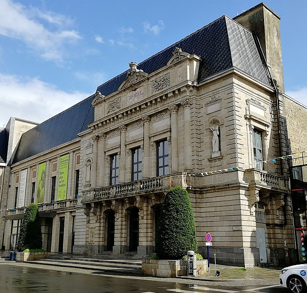 Le premier théâtre, construit entre 1809 et 1811 par l'architecte parisien Guillot, fut détruit par un incendie en 1875. Un nouvel édifice, élevé à partir de 1879 par l'architecte de la ville Alexandre Angier, fut inauguré en 1884. Le foyer et la salle ont été décorés par Carpezat et Lavastre. La façade, de style néo-classique, comprend un rez-de-chaussée, un étage et un attique; l'avant-corps central regroupe les portes d'accès au vestibule et les fenêtres du foyer. La salle à l'italienne, de forme elliptique, peut recevoir trois cents personnes. Son plafond représente le ciel et porte quatre figures allégoriques féminines — la Musique, la Danse, la Comédie et la Tragédie — assises sur une balustrade fleurie agrémentée de vases de fleurs. Dans le foyer, le plafond à caissons porte les noms de compositeurs et d'auteurs tels que Gounod, Corneille et Molière.