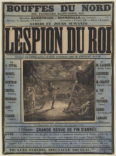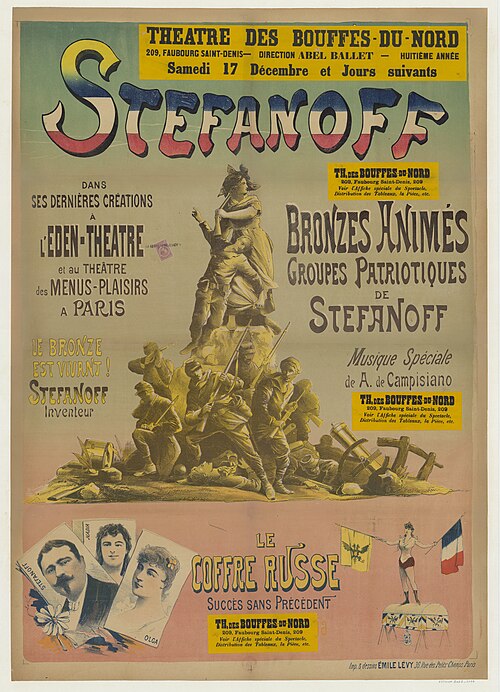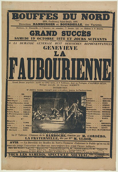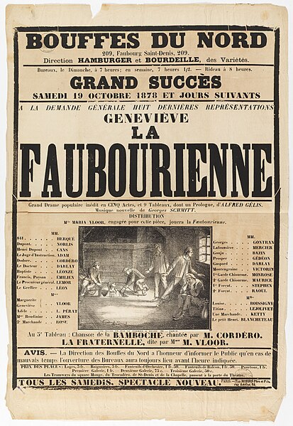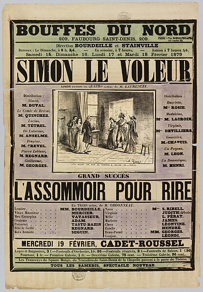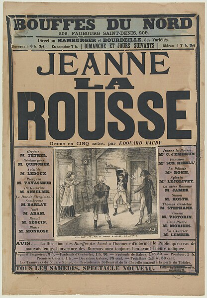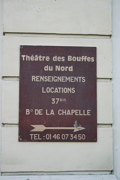 Le théâtre des Bouffes‑du‑Nord, situé 37 bis boulevard de la Chapelle dans le 10e arrondissement de Paris et desservi par la station La Chapelle, est une salle de spectacles de 530 places réparties entre parterre, rang de loges et galerie. Commandé à l'architecte Émile Leménil pour servir de café‑concert et construit sur les fondations d'une caserne dont le projet aurait été abandonné, il est inauguré en 1876. Ses directions se succèdent sans réussir à attirer un large public, en partie à cause de l'excentrisme et du caractère populaire alors peu desservi et mal éclairé du quartier de la Chapelle. Abel Ballet en devient propriétaire en 1885 et y programme des fresques historiques et des mélodrames, accueillant notamment la jeune Yvette Guilbert dans La Reine Margot d'Alexandre Dumas. De 1893 à 1894, la salle reçoit la compagnie du théâtre de l'Œuvre de Lugné‑Poe. En 1896 Emmanuel Clot et G. Dublay prennent la direction ; la salle est restaurée et électrifiée en 1904 et rebaptisée théâtre Molière, programmant des auteurs comme Henry Kistemaeckers, Georges Darien et Gaston Leroux. Fermé au début de la Première Guerre mondiale, il rouvre en 1917 sous son nom d'origine comme music‑hall, dirigé par Oscar Dufrenne et Henri Varna, puis par Henry Darcet à partir de 1923, qui l'intègre au « Consortium des théâtres de quartiers ». Après des changements de direction et une période de déclin à partir de 1935, le lieu connaît plusieurs tentatives de relance : Jean Serge en mai 1945 crée le théâtre des Carrefours, René Marjolle tente une programmation lyrique, puis Charles Béai relance la comédie fin 1950, avant une fermeture administrative en juin 1952 pour non‑conformité aux normes de sécurité. Menacée de destruction et laissée à l'abandon, la salle est rachetée en 1969 par Narcisse Zecchinel, qui confie sa restauration au Centre international de recherche théâtrale de Peter Brook et Micheline Rozan. La réouverture a lieu en 1974 avec Timon d'Athènes, dans une adaptation de Jean‑Claude Carrière et une mise en scène de Peter Brook. Le théâtre est inscrit au titre des monuments historiques le 30 avril 1993. Peter Brook commence à se retirer de la direction en 2008 ; celle‑ci est confiée à l'automne 2010 à Olivier Mantei et Olivier Poubelle. En 2020, le peintre Gérard Fromanger décore le plafond du foyer. Le répertoire des Bouffes‑du‑Nord couvre une large palette : dès la fin du XIXe siècle y sont jouées des œuvres d'Ibsen, Hauptmann, Rachilde et d'autres auteurs liés au théâtre de l'Œuvre ; au XXe siècle la salle alterne mélodrames, music‑hall, pièces contemporaines, opéras de chambre et concerts. Depuis la réouverture, la programmation a associé classiques (Shakespeare, Tchekhov, Racine, Molière) et créations contemporaines, avec des productions marquantes signées Peter Brook, Jean‑Claude Carrière, Philippe Calvario, Denis Podalydès et d'autres metteurs en scène, ainsi que des artistes musicaux tels que Milva, Astor Piazzolla, Mayra Andrade ou Michel Portal. La diversité des formes présentées — théâtre parlé, opéra de chambre, concerts et projets interdisciplinaires — témoigne du rôle durable des Bouffes‑du‑Nord comme lieu de création et d'expérimentation.