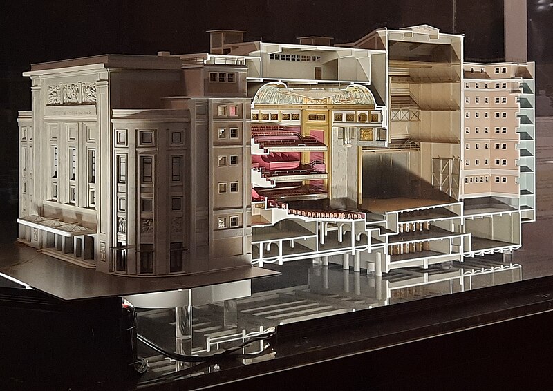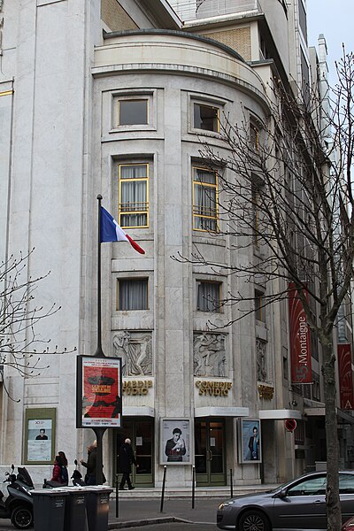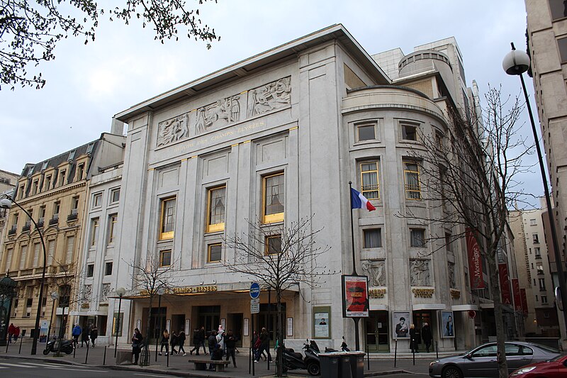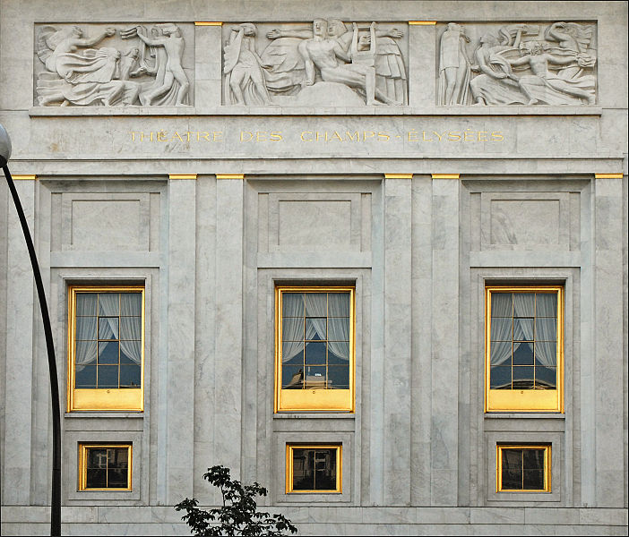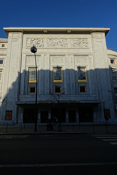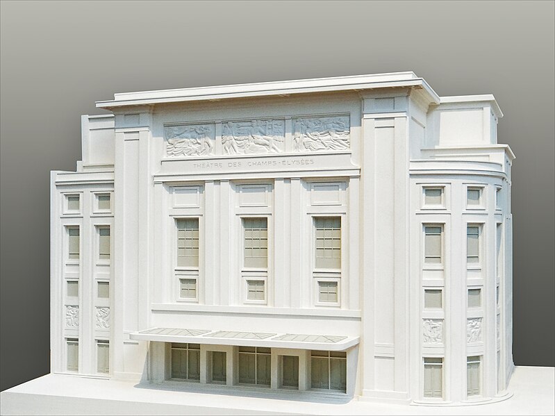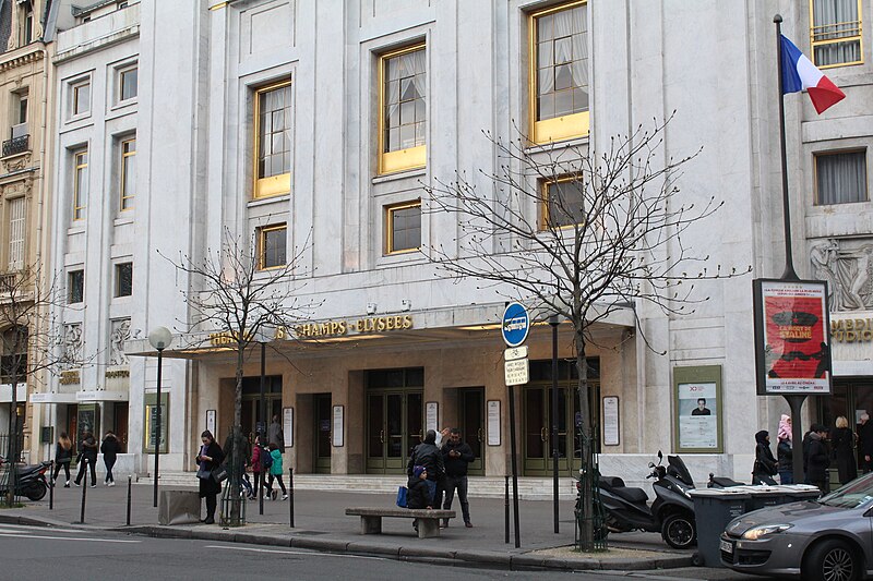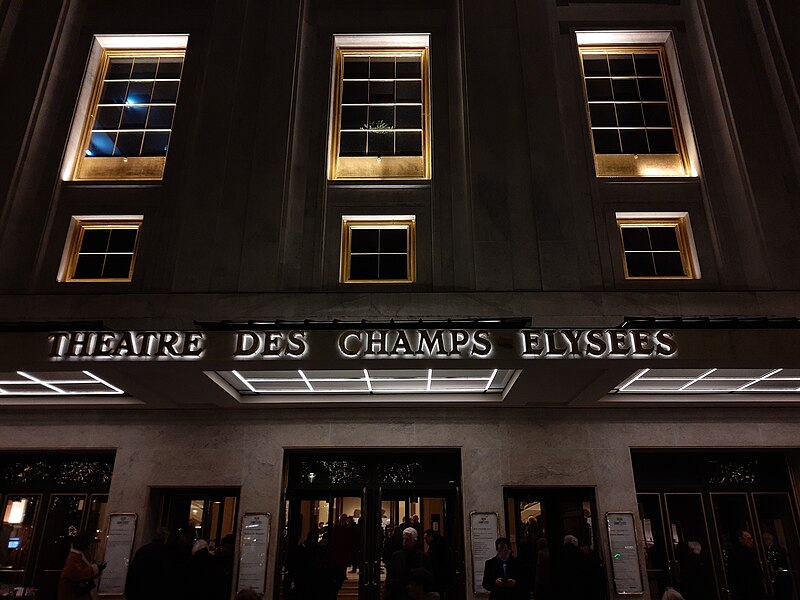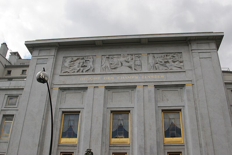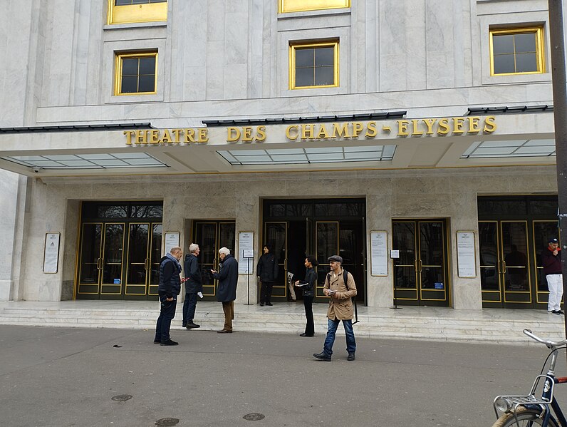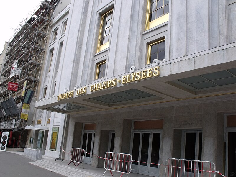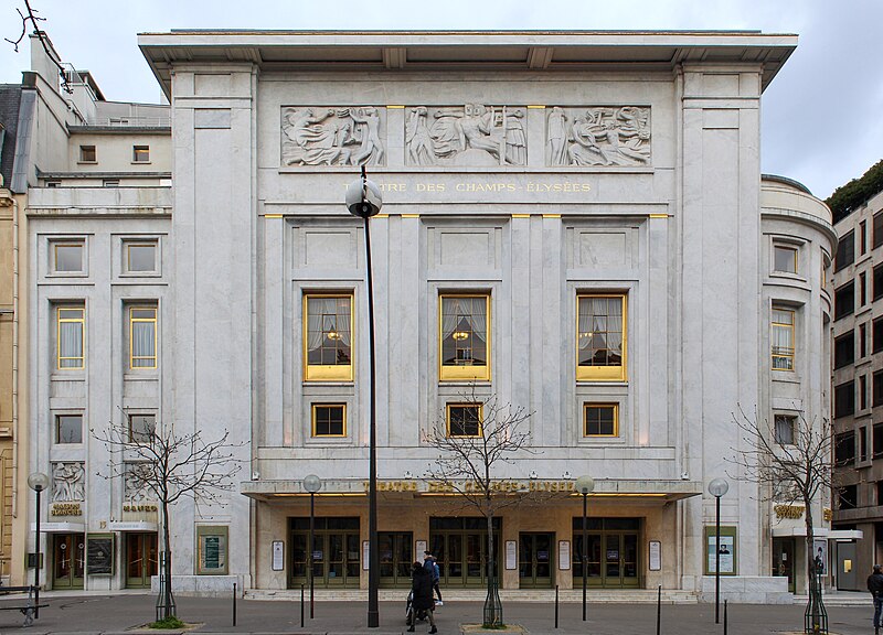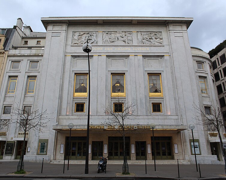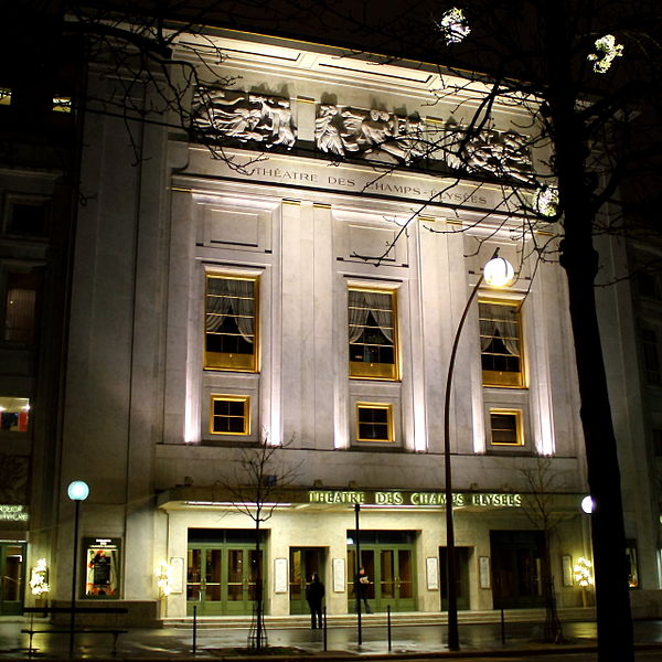 Le Théâtre des Champs-Élysées, situé 15 avenue Montaigne dans le 8e arrondissement de Paris, a été inauguré en 1913. Construit à l'initiative de Gabriel Astruc, directeur de la Société Musicale créée en 1904, il visait à doter Paris d'un "palais philharmonique" et la société immobilière acquit le terrain en 1910. Après des projets initiaux d'Henri Fivaz et Roger Bouvard, Henry Van de Velde fut sollicité par le principal financier Gabriel Thomas, puis les frères Auguste et Gustave Perret proposèrent en 1911 un contre-projet fondé sur une poutraison orthogonale en béton armé, qui donna naissance au théâtre actuel. Selon les concepteurs, il s'agit de la première salle de concert réalisée entièrement en béton, l'ossature ayant été confiée à l'entreprise Perret. Auguste Perret habilla toutefois la façade de plaques de travertin et le cadre de scène de plaques de marbre de l'Allier, où s'insèrent plusieurs bas-reliefs en marbre blanc d'Antoine Bourdelle représentant la Sculpture et l'Architecture, la Musique, la Tragédie, la Comédie et la Danse. La façade a été classée au titre des monuments historiques par arrêté du 11 décembre 1957. De style sobre et rigoureux, le bâtiment est considéré comme l'un des premiers représentants de l'Art déco en architecture ; il comprend trois salles et un restaurant en façade, aligné sur le gabarit des immeubles voisins. L'édifice abrite une grande salle à l'italienne de 1 905 places destinée à l'opéra, à la danse et à la musique, ainsi que la Comédie des Champs-Élysées (601 places) et le Studio des Champs-Élysées (230 places). Maurice Denis et Antoine Bourdelle furent chargés du programme décoratif ; d'autres peintres — Jacqueline Marval, Henri Lebasque, Édouard Vuillard, Ker-Xavier Roussel et Raphaël Drouart — participèrent aux décors. Maurice Denis réalisa la décoration de la coupole avec des panneaux intitulés L'Orchestique grecque, L'Opéra, La Symphonie et Le Drame lyrique, séparés par des tondi illustrant Le Chœur, L'Orchestre, La Sonate et L'Orgue. Plusieurs œuvres de Bourdelle (bas-reliefs, bronzes et fresques) figurent à l'intérieur et René Lalique fournit les luminaires et vitraux, au nombre de 62 pièces originales. La Caisse des dépôts et consignations est propriétaire des murs depuis 1970 et constitue le mécène principal des programmations, après être intervenue à la demande du gouvernement et avoir acquis 80 % des actions. Le théâtre est exploité par une société anonyme dotée d'un conseil d'administration ; son chiffre d'affaires annuel est de l'ordre de 9 millions d'euros pour un budget d'environ vingt millions, la Caisse des dépôts versant près de 52 % des recettes, la billetterie représentant environ 33 % et les autres recettes propres environ 15 %. Dès ses débuts, le grand théâtre a été un lieu majeur de la vie musicale et théâtrale parisienne et a accueilli de nombreuses formations symphoniques internationales ; l'Orchestre national de France y est en résidence. L'inauguration de 1913 donna lieu à un concert de musique française avec la participation de compositeurs et d'interprètes de premier plan. La salle fut le théâtre de créations marquantes et controversées, notamment Le Sacre du printemps d'Igor Stravinsky en 1913 et Déserts d'Edgard Varèse en 1954, qui provoquèrent des réactions vives du public. Dans les années 1920, le lieu devint un foyer de créations et d'expériences artistiques, lié aux Ballets suédois et à la Revue nègre, et réunit metteurs en scène, auteurs, compositeurs et artistes graphiques de premier plan. Le théâtre a fait l'objet de campagnes de rénovation importantes : une restauration générale menée en 1986-1987, la modernisation de la cage de scène engagée à partir de 1984 avec l'installation d'un système de machinerie hydraulique, puis des travaux d'acoustique et d'aménagement de la salle et de la fosse entre 2005 et 2008. Ces modernisations ont permis la mécanisation des cintres, de la scène et de la fosse d'orchestre, accélérant les changements de plateau et offrant des possibilités techniques renouvelées. En 1990 l'architecte Brigitte de Kosmi aménagea un restaurant sur la terrasse, intervention qui suscita des controverses au regard du statut de Monument historique ; en 1994 le Conseil d'État a jugé que la surélévation envisagée devait faire l'objet d'un permis de construire. Outre les grandes productions lyriques et chorégraphiques, le théâtre a accueilli des cycles pédagogiques, des concerts variés, des spectacles de théâtre d'essai et a servi de décor pour plusieurs films. La Comédie et le Studio, aménagés et gérés successivement par différentes directions depuis leur ouverture en 1913, ont joué un rôle important pour le théâtre moderne et les premières françaises. La richesse architecturale et décorative, l'innovation technique et la diversité des activités font du Théâtre des Champs-Élysées un monument central du patrimoine culturel parisien.