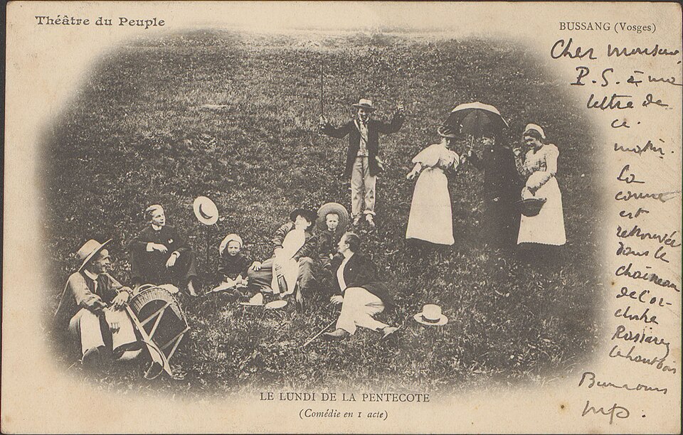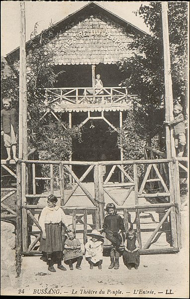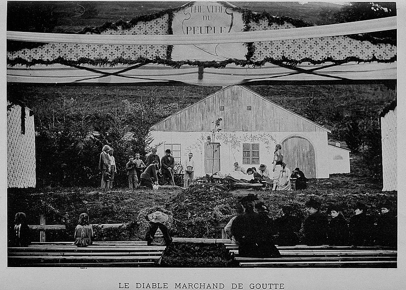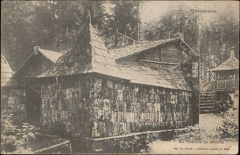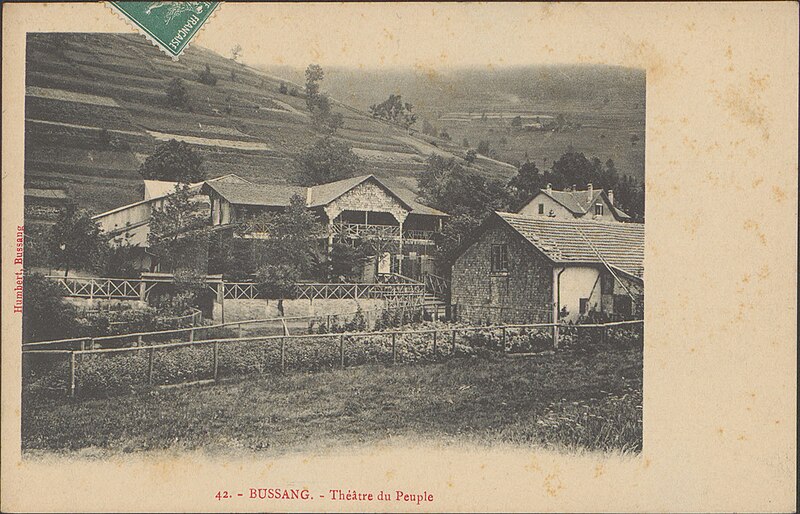 Le Théâtre du Peuple, situé à Bussang dans les Vosges, a été créé en 1895 par Maurice Pottecher. Né comme scène en plein air à flanc de montagne, où le public se tenait dans la prairie, le théâtre a été aménagé dès l'année suivante : la scène, large de 14 mètres, a été couverte. En 1898-1899, le fond de scène a été équipé de grandes portes roulantes ouvrant le décor sur la montagne et une tribune couverte a été aménagée. L'électricité y a été installée dès 1904. Après les dommages causés par la guerre, l'ensemble a été modifié en 1921 : une salle fermée sur les côtés a été construite pour un peu plus de 1 000 places, et le public a été définitivement abrité par un toit en 1924. Le théâtre a été agrandi en 1938, puis restauré et adapté après la Seconde Guerre mondiale ; deux chalets ont été ajoutés durant les années 1960-1970. Des aménagements complémentaires ont ponctué son évolution : loges (1945), ateliers de couture (1950), atelier de construction de décors (1986) et reconstruction de l'entrée (1994). Entièrement construit en bois, l'édifice peut accueillir jusqu'à 900 spectateurs ; sa voûte évoque un navire retourné et le fond de scène s'ouvre sur la forêt vosgienne. Classé au titre des monuments historiques le 2 août 1976, classement ensuite étendu en 2015, le Théâtre du Peuple reste un lieu vivant et actif. Il propose plusieurs créations nouvelles chaque saison et programme des représentations de mai à décembre, avec une concentration en juillet et août. La programmation a toujours mêlé les pièces de Maurice Pottecher à des classiques et à des auteurs contemporains, couvrant un large répertoire européen. Pierre Richard‑Willm a dirigé le lieu à partir de 1936 et durant les années 1950, puis Tibor Egervari en a assuré l'animation à partir de 1972. En 1976, Pierre Chan, petit‑fils de Maurice Pottecher, a confié la gestion à l'Association du Théâtre du Peuple et en est resté président jusqu'à sa mort en 2004. La direction artistique a ensuite été assurée successivement par Christophe Rauck (2003‑2006), Pierre Guillois (à partir de 2006), Vincent Goethals (nommé en 2011 et reconduit en 2014) puis Simon Delétang (nommé en septembre 2017), qui a quitté le poste à l'automne 2022 ; Julie Delille a été choisie pour prendre ses fonctions en octobre 2023. Le théâtre est connu pour son ambiance conviviale et son public diversifié ; en raison des températures nocturnes basses, les spectateurs se préparent parfois avec des duvets, et si les saisons tenaient traditionnellement à l'écart l'hiver, cette contrainte climatique a été exploitée ponctuellement, notamment lors d'une représentation invitant le public à venir chaudement habillé en janvier 2007.