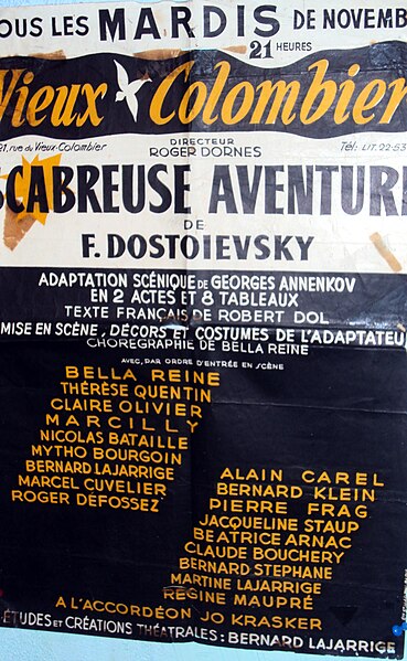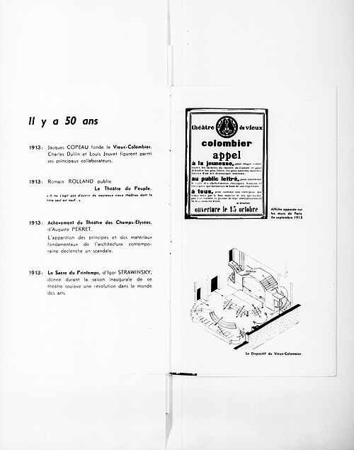 Le Théâtre du Vieux‑Colombier est une salle de spectacles située au 21, rue du Vieux‑Colombier, dans le 6e arrondissement de Paris. Il est fondé en octobre 1913 par Jacques Copeau dans l'ancien Athénée‑Saint‑Germain et prend le nom de la rue pour faciliter sa localisation. Son emblème s'inspire d'un pavé de la basilique San Miniato al Monte de Florence figurant deux colombes. Selon un panneau Histoire de Paris installé devant le théâtre, Copeau cherchait à créer un théâtre populaire, libéré du mercantilisme, et à rajeunir l'art du décor et de la mise en scène en privilégiant l'œuvre et l'acteur. En novembre 1917, la troupe s'installe pour deux saisons à New York, au Garrick Theatre, mais le succès n'est pas à la hauteur des attentes et le Vieux‑Colombier revient à Paris en 1920. En 1924, Jean Tedesco prend la direction et y programme des œuvres nouvelles de réalisateurs comme Dimitri Kirsanoff, André Sauvage, Jean Grémillon et Jean Epstein, consacrant des espaces à la création. Des artistes tels qu'André Gide y suivent le montage de Voyage au Congo filmé par Marc Allégret et rédigent des sous‑titres, tandis que Jean Renoir s'associe à Tedesco pour réaliser La Petite Marchande d'allumettes, le théâtre devenant selon Tedesco « le plus petit studio du monde ». René Rocher dirige la salle de 1935 à 1943. Pendant la guerre, Paul Annet Badel achète le théâtre et aménage la cave en club de jazz, Le Vieux Colombier, où se produisent notamment Sidney Bechet, Claude Luter, André Réwéliotty, Geo Daly et Moustache. Le 13 janvier 1947, Antonin Artaud fait sa dernière apparition publique sur la scène du Vieux‑Colombier et y donne une conférence à guichets fermés. En 1944, le théâtre accueille la première représentation de Huis clos de Jean‑Paul Sartre. Dans les années 1950, l'émission radiophonique Le Masque et la Plume y est enregistrée à ses débuts avant de rejoindre la Maison de la Radio. Bernard Jenny dirige le théâtre de 1960 à 1970 et y met en scène pour la première fois la trilogie de Paul Claudel (L'Otage, Le Pain dur et Le Père humilié). Menacé de démolition en 1970 au profit d'une station‑service, il est sauvé par Claude Baks, qui engage un procès contre la compagnie pétrolière. Marthe Mercadier assure la direction de décembre 1970 à octobre 1971, puis Anne Caprile prend le relais jusqu'à la fin 1972. Le bail prenant fin en janvier 1973, le théâtre est peu à peu abandonné, menacé de disparition en 1975 et finalement fermé en 1977, malgré la mobilisation et les manifestations des comédiens. Il est classé au titre des monuments historiques depuis le 4 janvier 1978. Racheté par l'État en 1986, il sert d'atelier au peintre Didier Paquignon en 1987‑1988. Réouvert en 1993, il fait depuis partie des salles de la Comédie‑Française, aux côtés de la salle Richelieu et du Studio‑Théâtre du Carrousel du Louvre.