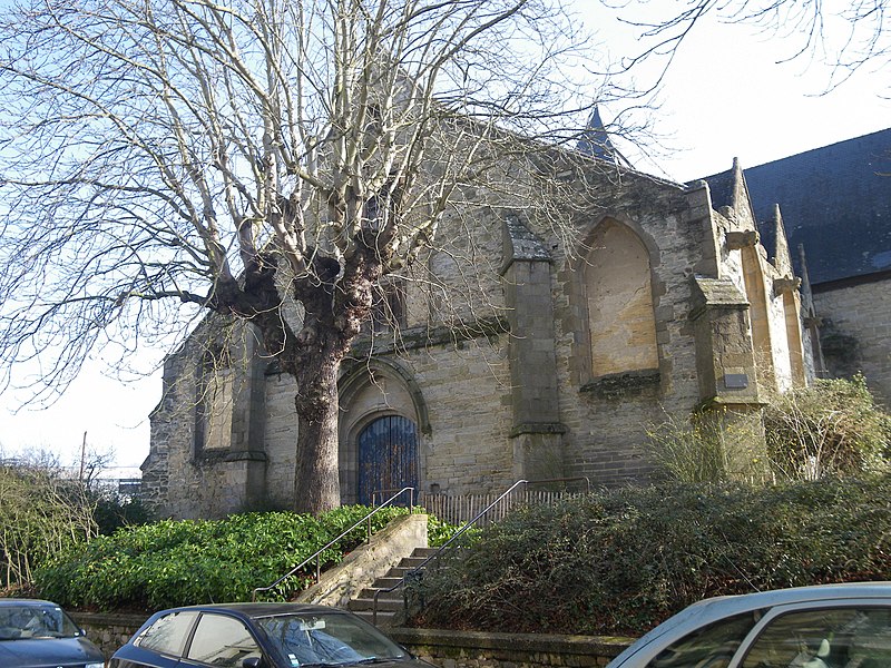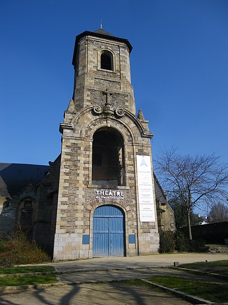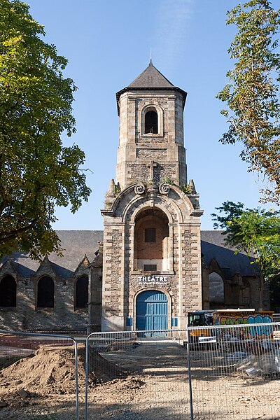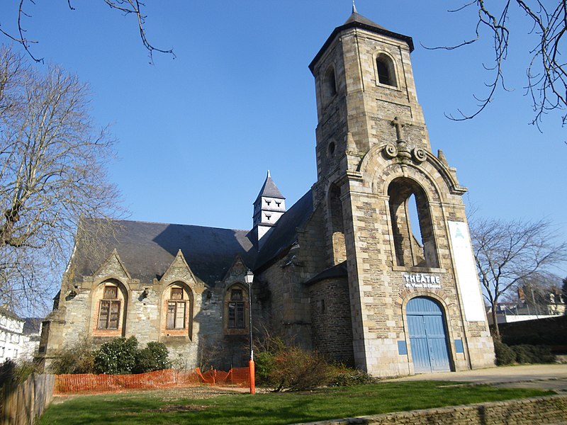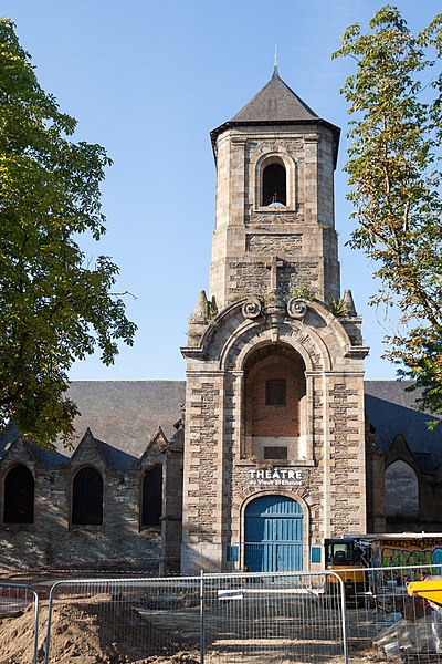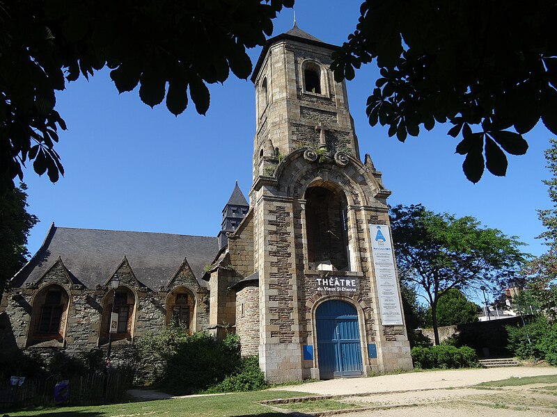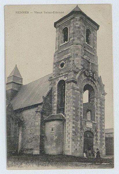 Ancienne chapelle du couvent des Augustins, l’ancienne église Saint-Étienne se situe en contrebas de la place Sainte-Anne, en face de l’ancien hôpital militaire Ambroise Paré. La paroisse Saint-Étienne est mentionnée dès le XIIe siècle et une charte confirme alors la possession de l’église par les chanoines de Rennes. L’édifice actuel résulte d’une reconstruction de la seconde moitié du XVe siècle ; le testament de Dom Jehan Gilles évoque en 1505 la grande chapelle nouvellement élevée, correspondant au transept sud, et un marché de charpenterie daté de 1552 permet de dater la construction du transept nord. Des aménagements ont été réalisés au XVIe siècle : la fenêtre du bras nord porte la date de 1553 et une niche de la sixième pile nord celle de 1563. Le lambris de couvrement de la nef datant de la reconstruction du XVe siècle a été supprimé lors de travaux en 1975, tandis que les nervures des fausses voûtes en bois du bas-côté sud ont été conservées. Le clocher-porche, adossé au bras sud, a été édifié entre 1742, date de la pose de la première pierre, et 1744, date de la pose de la croix, sur des plans de l’ingénieur Forestier de Villeneuve datés de 1741 ; il porte la date de 1743 et était couronné d’un bulbe jusqu’au milieu du XIXe siècle. Le maire Toussaint-François Rallier du Baty y fut inhumé en 1734. Le culte fut transféré en 1791 à l’église des Augustins, devenue la nouvelle église Saint-Étienne. Au XIXe siècle, l’édifice fut transformé en magasin pour le Génie militaire ; la ville de Rennes l’acquit en 1969. L’ancienne église a été inscrite au titre des monuments historiques par arrêté du 9 novembre 1926. Transformée en salle de spectacle en 1985, elle fut mise à disposition du Théâtre de l’Alibi jusqu’en 1993 et est désormais connue comme le Théâtre du Vieux Saint-Étienne. Depuis 2012, le festival Maintenant investit chaque octobre le lieu pour des expositions, performances et concerts autour des arts numériques. En 2017, le bâtiment a aussi vocation à fonctionner comme laboratoire permanent pour les arts du cirque cinq mois par an (mai à septembre), accueillant le projet de l’association AY-ROOP pour l’accompagnement d’artistes, des résidences, un festival et des actions culturelles. Architectoniquement, l’église présente un plan en croix latine, un chevet plat, une façade latérale à pignons multiples et un clocher latéral ; le parti est essentiellement gothique, avec un clocher de style baroque, des lambris en nef et transept et des voûtes d’ogives en bois pour le bas-côté sud.