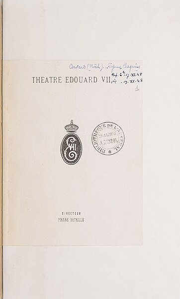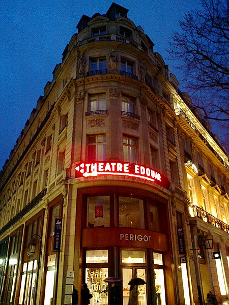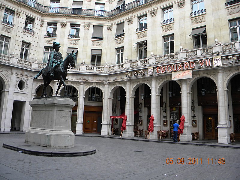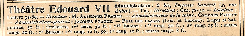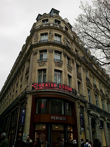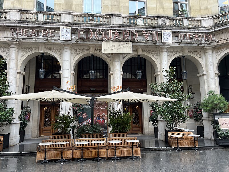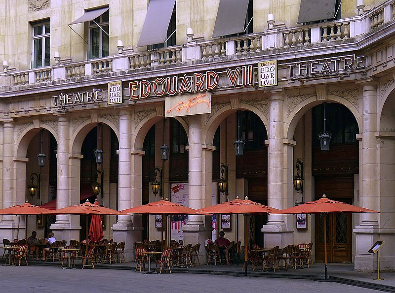 Le théâtre Édouard‑VII occupe le centre d'une opération immobilière menée de 1911 à 1913 par l'architecte Henri Nénot, qui a créé la rue et la place Édouard‑VII et fait édifier sur l'îlot un hôtel de luxe, des bureaux, des commerces et une salle de spectacle dont la façade s'intègre à l'ensemble. La salle elle‑même a été conçue par l'architecte britannique Sprague. Depuis 1996, l'îlot, qui comprend également l'Olympia, fait l'objet d'une nouvelle opération immobilière d'envergure. Appelé aussi théâtre Édouard‑VII — Sacha Guitry, il se situe 10, place Édouard‑VII, dans le 9e arrondissement de Paris, entre la Madeleine et l'Opéra Garnier. De 1916 à 1929 la direction est assurée par Alphonse Franck ; en 1929 Louis Verneuil lui succède pour six mois, puis Maurice Lehmann prend la tête en 1930 jusqu'en 1931, remplacé ensuite par Victor Francen. À la fin de 1931 la Twentieth Century Fox transforme la salle en cinéma, statut qu'elle conserve jusqu'en 1940, puis la salle redevient un théâtre dirigé par Robert Gallois. En 1943 Jean‑Michel Renaitour et Jacqueline Heusch prennent la direction, suivis en 1944 par Pierre Béteille. En 1951 Elizabeth Hijar devient directrice et reste en poste jusqu'en 1958, année où Raymond Rouleau puis, la même année, Claude Génia lui succèdent. Wilfrid Dodd prend la direction en 1966, puis Robert Thomas en 1970. De 1976 à 1978 Simone Valère et Jean Desailly assurent la direction pendant deux saisons ; ils sont ensuite remplacés par Pierre Bergé, puis en 1981 par Jacqueline Cormier. Julien Vartet devient directeur en 1989. Après une année de fermeture, le théâtre rouvre en septembre 2001 sous la codirection de Bernard Murat et Jean‑Louis Livi ; Bernard Murat assure ensuite seul la direction à partir de 2007, puis Pascal Legros prend la direction à partir de 2018.
