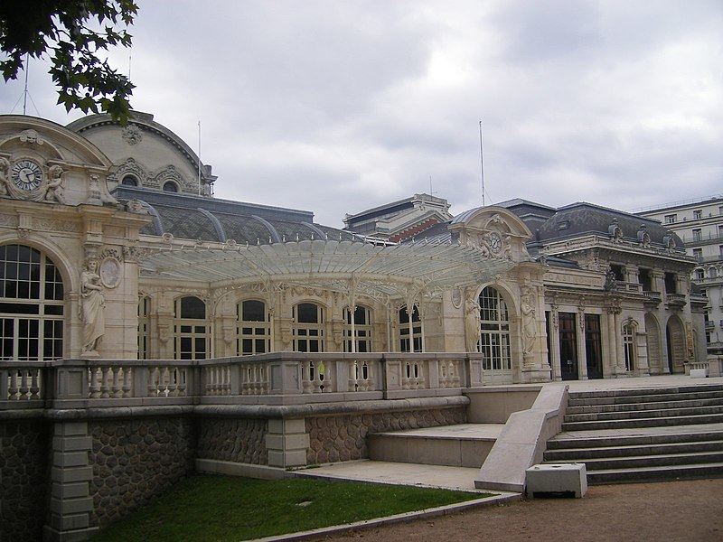 Le Palais des congrès-Opéra de Vichy réunit le grand casino originel, le palais des congrès et l'opéra au cœur de la ville. Situé entre le quartier thermal et le centre-ville, il marque, avec le Grand Café, l'extrémité sud du parc des Sources. Le premier casino fut construit à la demande de Napoléon III en 1864-1865 par l'architecte Charles Badger ; le décor sculpté est dû à Albert‑Ernest Carrier‑Belleuse et les peintures à Jules Petit. À la fin du siècle, l'établissement a été étendu par l'architecte Lecoeur, avec des travaux commencés en 1900 et terminés en 1902, présentant une décoration Art nouveau comprenant des ferronneries d'Émile Robert. Quelques transformations ultérieures ont été conduites par l'architecte Simon. L'édifice comprenait dès l'origine une salle de théâtre et, après adaptations, l'ancien théâtre a été converti en salle de jeux puis reconverti en grand auditorium du palais des congrès. L'opéra actuel, inauguré partiellement en 1901 et définitivement achevé en 1903 après l'achèvement des décors, a d'abord accueilli Aïda de Verdi lors de son inauguration. La salle, d'une capacité de 1 482 places, possède une scène de 11 × 9 mètres avec une profondeur de 15 mètres ; elle fut, à son ouverture, la plus grande salle de France après l'Opéra Garnier et demeure l'unique salle de style Art nouveau du pays. La décoration intérieure, dominée par une harmonie d'or, d'ivoire et de jaune, a été signée par le peintre Léon Rudnicki ; la coupole porte des visages d'artistes célèbres et la ferronnerie, les portes, balustrades et rampes sont l'œuvre d'Émile Robert. Les sculptures de la façade et de la salle, réalisées par Pierre Seguin, représentent notamment Colombine et Arlequin ainsi que des masques inspirés de l'Égypte et de la Mésopotamie. Au XXe siècle, Vichy s'affirma comme une importante capitale musicale estivale, offrant de nombreuses représentations chaque été ; après la Seconde Guerre mondiale et le déclin du thermalisme, l'activité de l'opéra a toutefois diminué. La salle a été ravagée par un incendie en 1986 ; la municipalité a acquis l'édifice en 1987 et l'a restauré en 1995, profitant des travaux pour installer le chauffage et ouvrir une saison d'hiver. L'édifice a été inscrit aux monuments historiques en 1991 pour le hall d'entrée et la grande galerie, puis classé en 1996 pour la salle du théâtre avec ses galeries, vestibule, salles et déambulatoires de l'ancienne salle de jeux. Le palais des congrès, aménagé à la place de l'ancien casino, a été inauguré en 1995 ; il s'étend sur 18 000 m2 et comporte des salles creusées en sous-sol, notamment la salle Albert‑Londres avec un mur de lumière et l'espace Sévigné de 1 200 m2 pouvant accueillir 1 000 couverts sous la terrasse. Le théâtre d'origine restructuré a été transformé en auditorium Eugénie de 496 places ; le salon Berlioz, avec une verrière de Francis Chigot, peut recevoir 400 couverts et le salon Napoléon 270 couverts. La municipalité, propriétaire depuis 1987, a nommé l'ensemble « Palais des congrès‑Opéra » et organise depuis 2005 des visites guidées ; l'opéra est en outre souvent ouvert au public pour des visites libres. Le musée de l'Opéra, créé en 2002 grâce à la fondation Noëlle et Gabriel Péronnet, conserve archives, partitions, décors et costumes et propose chaque année une exposition thématique ainsi qu'un centre d'études et de recherches. Le musée accorde une place importante à la sensibilisation des publics scolaires et facilite l'accès à l'opéra pour les jeunes, avec la gratuité pour les moins de 12 ans et des tarifs réduits pour certains publics. La programmation de l'opéra se déploie toute l'année : la saison de septembre à mai présente un programme pluridisciplinaire (théâtre, danse, opéra, humour, concerts, etc.) et depuis 2018 une programmation estivale propose concerts lyriques, symphoniques, jazz, danse, pop rock et musiques du monde. Environ une vingtaine de spectacles sont proposés par saison et certains rendez-vous, comme les Rencontres Lyriques Européennes, s'inscrivent dans un calendrier plus large. Sur le plan administratif, Diane Polya‑Zeitline a dirigé l'opéra de 1990 à 2017 ; Martin Kubich lui a succédé en octobre 2017 et dirige également la Culture de la ville et Vichy Culture, structure qui regroupe l'opéra, le centre culturel et le service des expositions. Le palais des congrès et l'opéra accueillent par ailleurs divers événements : un festival de Scrabble, les Grandes Rencontres dédiées au débat public et, depuis 2018, un festival des jeux qui réunit professionnels et grand public.