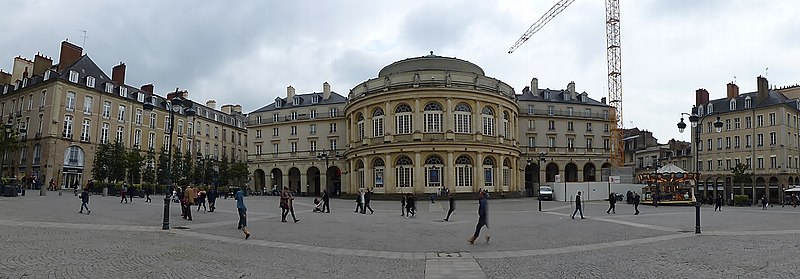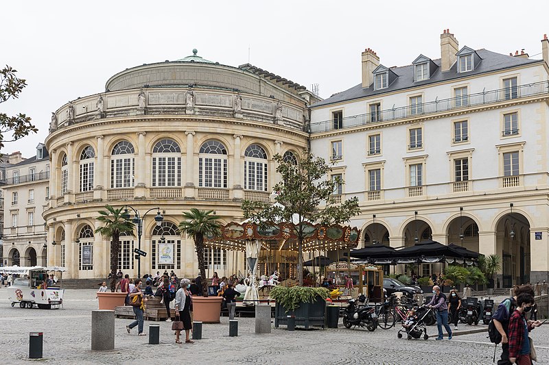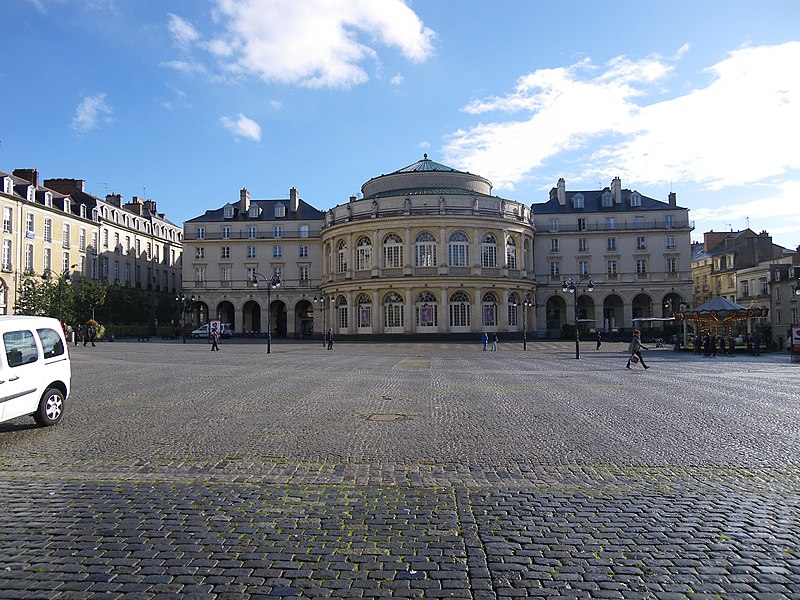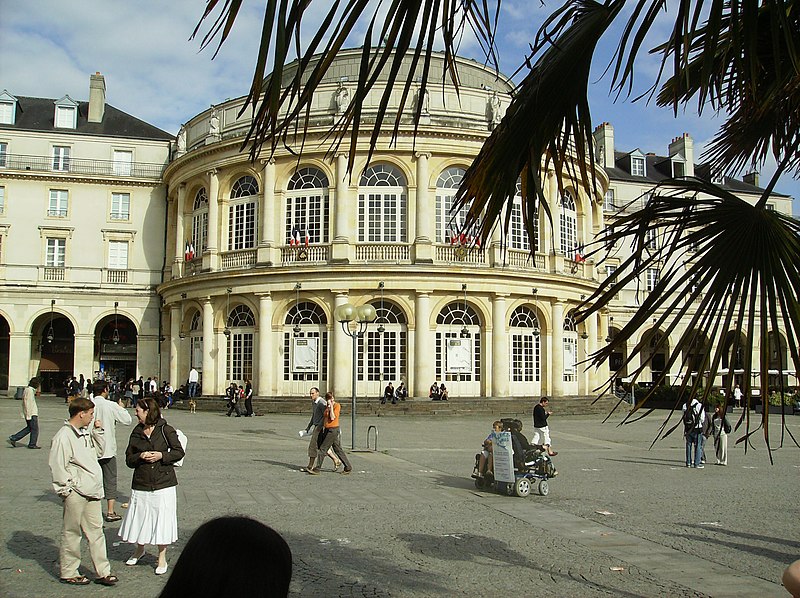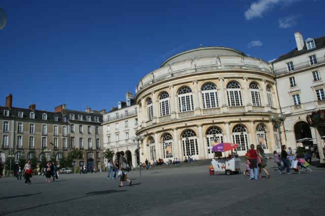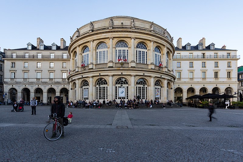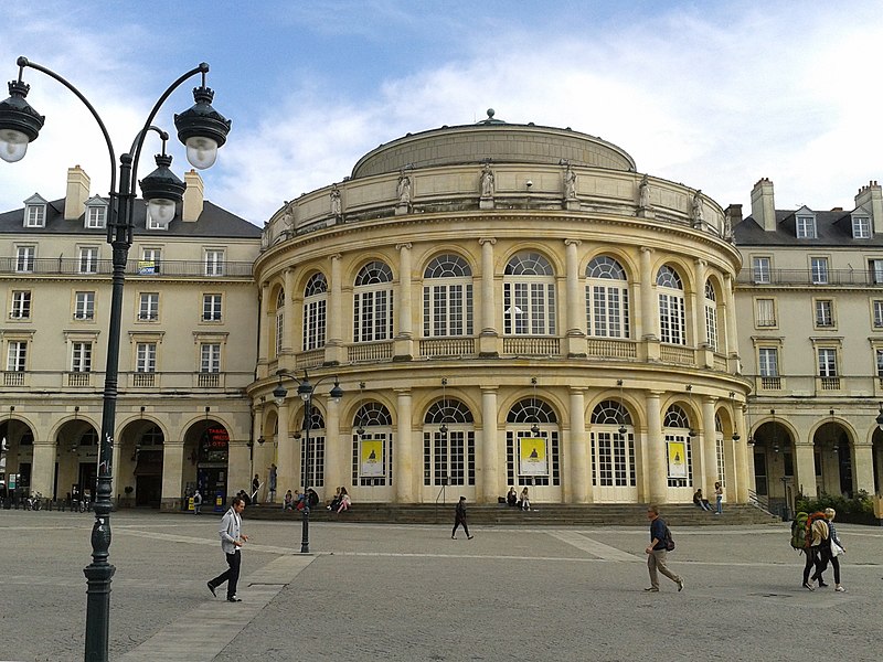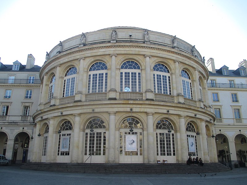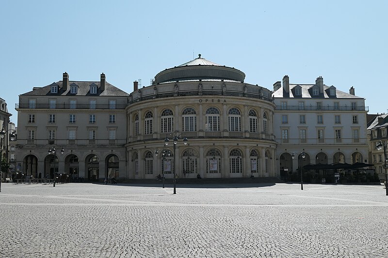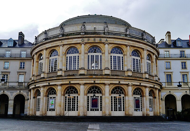 L'ensemble du théâtre et des immeubles dits Galeries du Théâtre se situe place de la Mairie à Rennes (Ille-et-Vilaine), face à l'hôtel de ville. L'immeuble du 11, galerie du Théâtre, date de la première moitié du XVIIIe siècle, tandis que les immeubles appelés « galeries » remontent au deuxième quart du XIXe siècle. Le théâtre a été dessiné par Charles Millardet et construit par Pierre Louise entre 1832 et 1836, puis reconstruit en 1856 par Millardet à l'identique après un incendie. La place devant le théâtre, remblayée avec les décombres de l'incendie de 1720, porta successivement les noms de Place Flesselles, Place du Peuple, Place aux Arbres et fut appelée Place du Théâtre en 1832 ; Jacques Gabriel avait initialement projeté d'y édifier un palais du gouverneur qui ne fut pas réalisé. L'édifice s'inscrit dans un projet immobilier associant logements et galeries marchandes protégées par une verrière à l'arrière de l'opéra, et son avancée répond au creux de la mairie dessiné par Jacques V. Gabriel. De plan « à l'italienne », la salle de spectacle compte 642 places, ce qui en fait l'un des plus petits opéras de France, principalement consacré à l'art lyrique et très fréquenté. Le plafond de la salle, commandé par le maire Jean Janvier, fut peint par Jean-Julien Lemordant en 1914 : ce « Ciel » représente une farandole bretonne avec une vingtaine de danseurs en costume et un couple de sonneurs, et plus de soixante études préparatoires sont connues, dont une conservée au musée des Beaux-Arts de Rennes. Le décor peint du salon dit des poilus, attribué par Denise Delouche à Camille Godet, représente les champs de bataille de la Première Guerre mondiale et date de 1918 ; il reste peu documenté. Auguste Henri Jobbé-Duval et son frère Gaston furent chargés de la décoration du foyer. La façade est couronnée de statues représentant les Muses et Apollon, et l'intérieur comprend les escaliers, la scène, la salle, le foyer et une galerie arrière. Classé et inscrit à plusieurs reprises au titre des monuments historiques, l'ensemble a fait l'objet de protections distinctes : la façade et les toitures donnant sur la place de la Mairie et les souches de cheminées du 11 galerie firent l'objet d'un classement en 1961, des parties de la façade, des toitures et d'éléments intérieurs dont le plafond furent inscrites en 1975, et d'autres façades, toitures et éléments du passage de la galerie furent inscrits en 1983. D'importants travaux intérieurs menés en 1997-1998, pour un montant de 50 millions de francs, ont renouvelé le mobilier, amélioré la ventilation et l'éclairage, restauré le plafond peint et agrandi la scène et la fosse. Le bâtiment accueille aujourd'hui essentiellement des productions lyriques et organise des manifestations locales, parmi lesquelles « Opéra en plein air », une retransmission en direct sur la place de la Mairie depuis 2009 réunissant plusieurs milliers de spectateurs. La direction de l'Opéra a été assurée par Alain Surrans de 2005 à 2017, puis par Matthieu Rietzler à partir de septembre 2018.