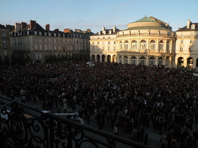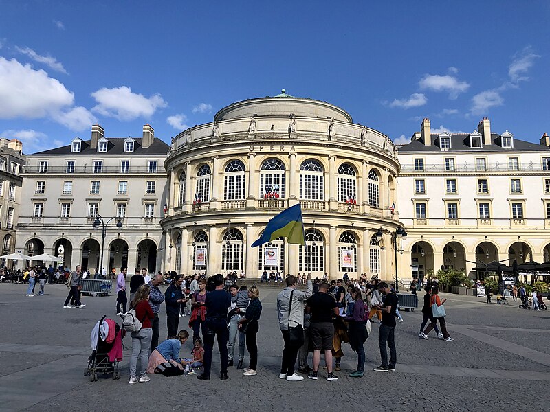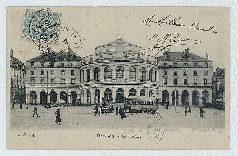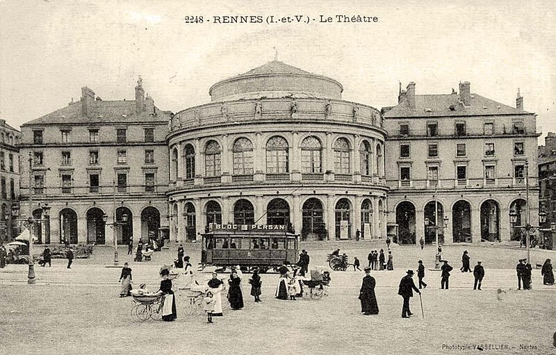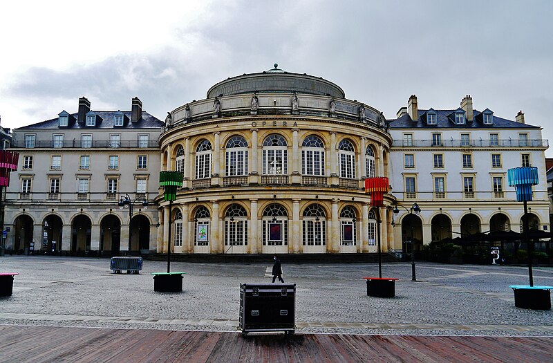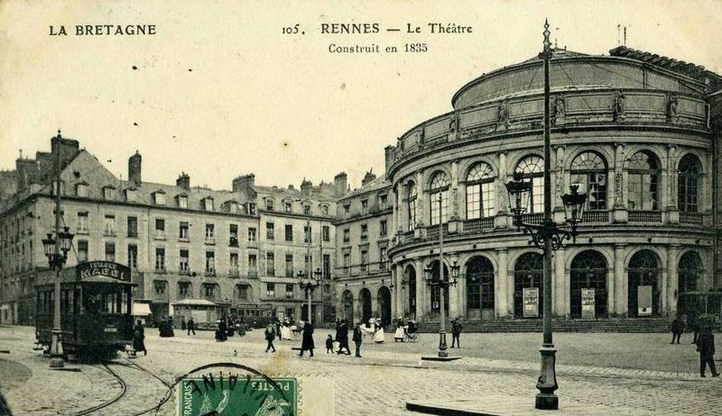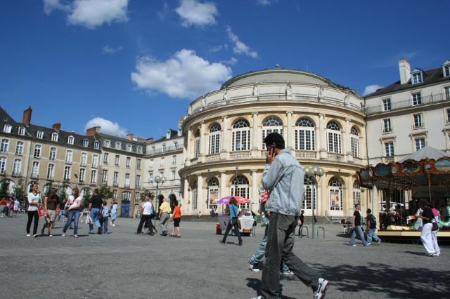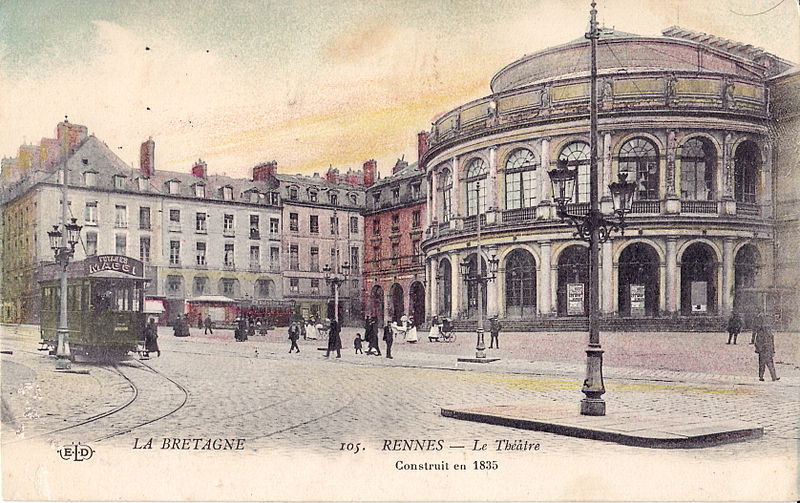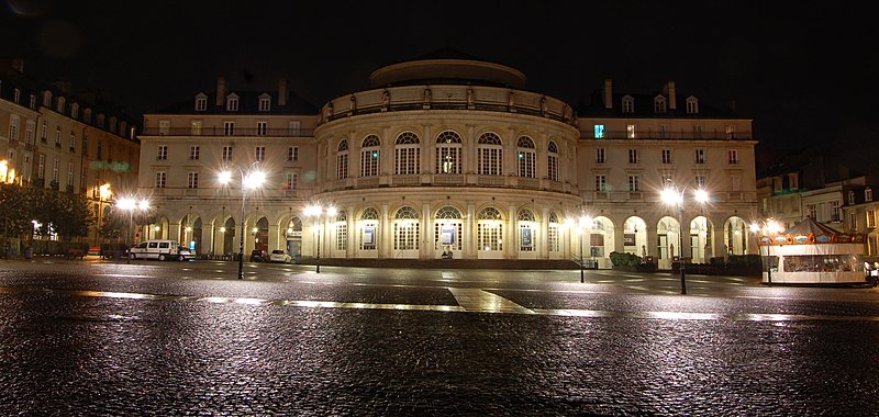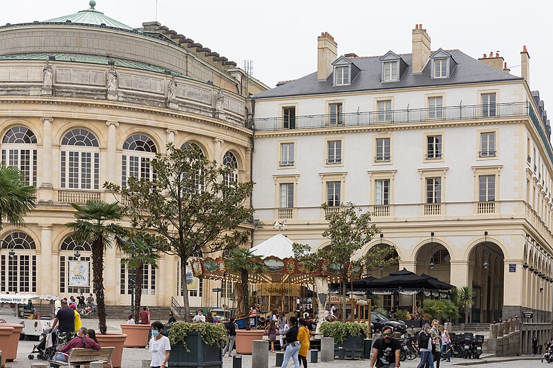L'ensemble du théâtre et des immeubles dits Galeries du Théâtre se situe place de la Mairie à Rennes (Ille-et-Vilaine), face à l'hôtel de ville. L'immeuble du 11, galerie du Théâtre, date de la première moitié du XVIIIe siècle, tandis que les immeubles appelés « galeries » remontent au deuxième quart du XIXe siècle. Le théâtre a été dessiné par Charles Millardet et construit par Pierre Louise entre 1832 et 1836, puis reconstruit en 1856 par Millardet à l'identique après un incendie. La place devant le théâtre, remblayée avec les décombres de l'incendie de 1720, porta successivement les noms de Place Flesselles, Place du Peuple, Place aux Arbres et fut appelée Place du Théâtre en 1832 ; Jacques Gabriel avait initialement projeté d'y édifier un palais du gouverneur qui ne fut pas réalisé. L'édifice s'inscrit dans un projet immobilier associant logements et galeries marchandes protégées par une verrière à l'arrière de l'opéra, et son avancée répond au creux de la mairie dessiné par Jacques V. Gabriel. De plan « à l'italienne », la salle de spectacle compte 642 places, ce qui en fait l'un des plus petits opéras de France, principalement consacré à l'art lyrique et très fréquenté. Le plafond de la salle, commandé par le maire Jean Janvier, fut peint par Jean-Julien Lemordant en 1914 : ce « Ciel » représente une farandole bretonne avec une vingtaine de danseurs en costume et un couple de sonneurs, et plus de soixante études préparatoires sont connues, dont une conservée au musée des Beaux-Arts de Rennes. Le décor peint du salon dit des poilus, attribué par Denise Delouche à Camille Godet, représente les champs de bataille de la Première Guerre mondiale et date de 1918 ; il reste peu documenté. Auguste Henri Jobbé-Duval et son frère Gaston furent chargés de la décoration du foyer. La façade est couronnée de statues représentant les Muses et Apollon, et l'intérieur comprend les escaliers, la scène, la salle, le foyer et une galerie arrière. Classé et inscrit à plusieurs reprises au titre des monuments historiques, l'ensemble a fait l'objet de protections distinctes : la façade et les toitures donnant sur la place de la Mairie et les souches de cheminées du 11 galerie firent l'objet d'un classement en 1961, des parties de la façade, des toitures et d'éléments intérieurs dont le plafond furent inscrites en 1975, et d'autres façades, toitures et éléments du passage de la galerie furent inscrits en 1983. D'importants travaux intérieurs menés en 1997-1998, pour un montant de 50 millions de francs, ont renouvelé le mobilier, amélioré la ventilation et l'éclairage, restauré le plafond peint et agrandi la scène et la fosse. Le bâtiment accueille aujourd'hui essentiellement des productions lyriques et organise des manifestations locales, parmi lesquelles « Opéra en plein air », une retransmission en direct sur la place de la Mairie depuis 2009 réunissant plusieurs milliers de spectateurs. La direction de l'Opéra a été assurée par Alain Surrans de 2005 à 2017, puis par Matthieu Rietzler à partir de septembre 2018.