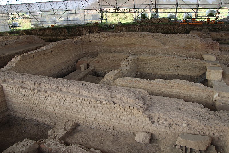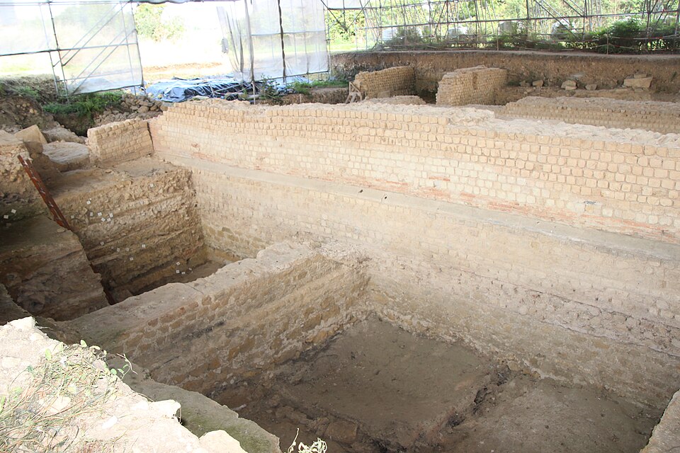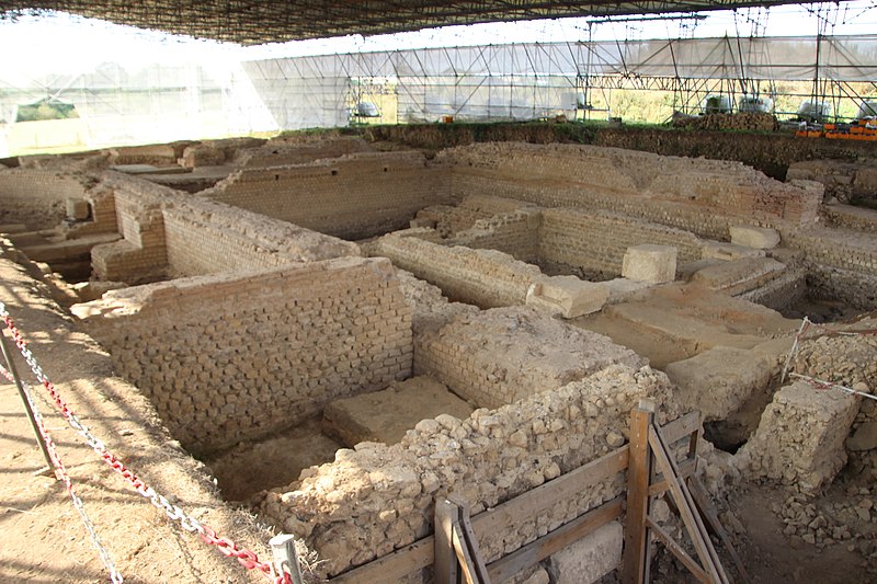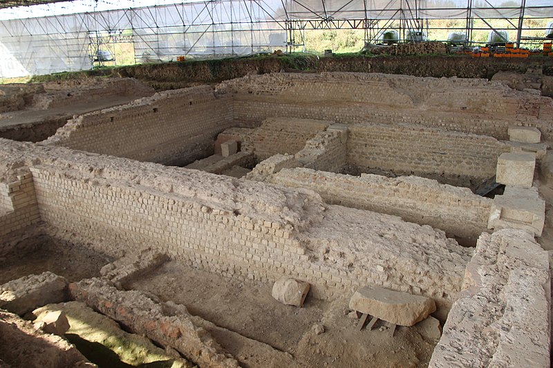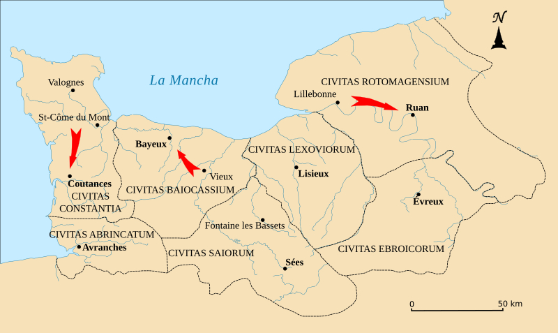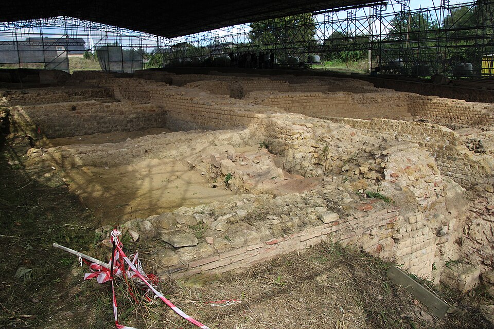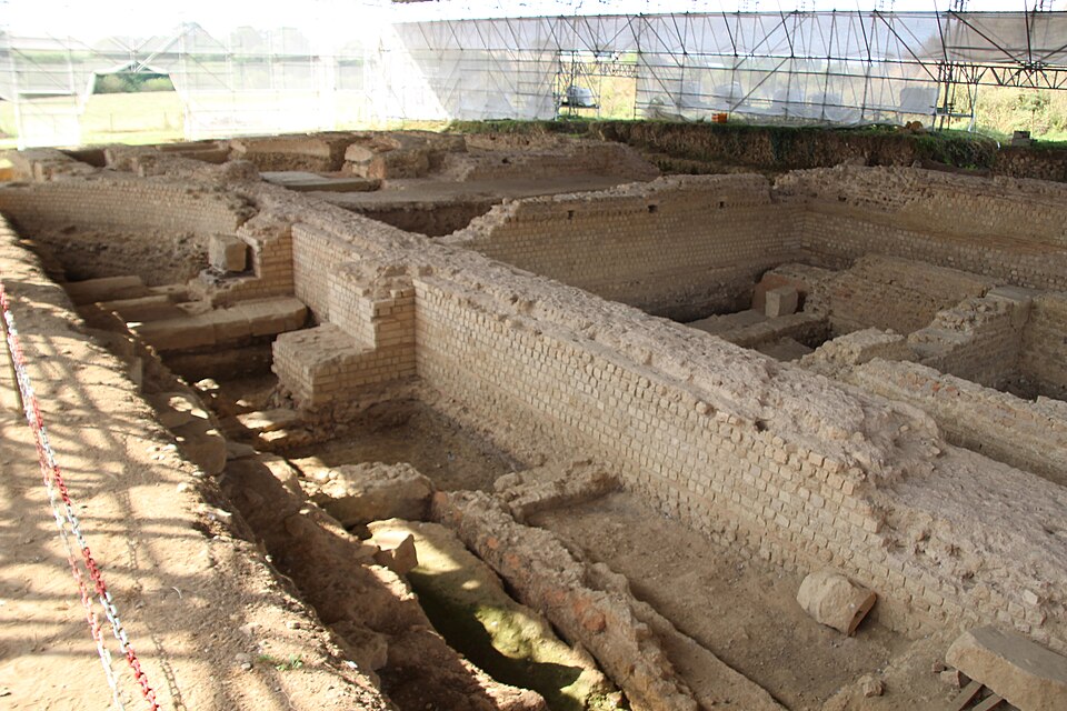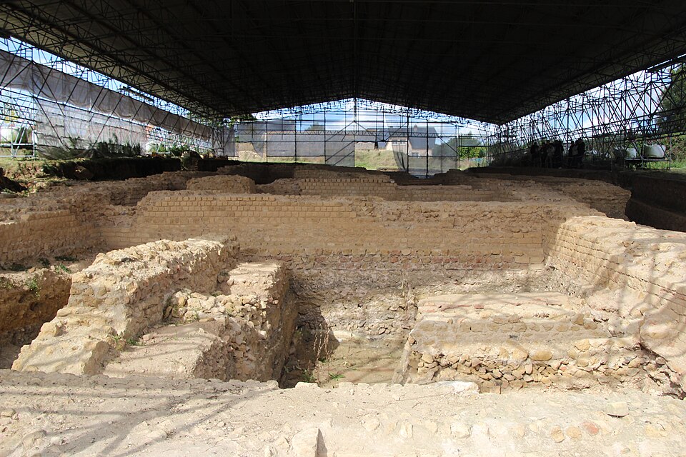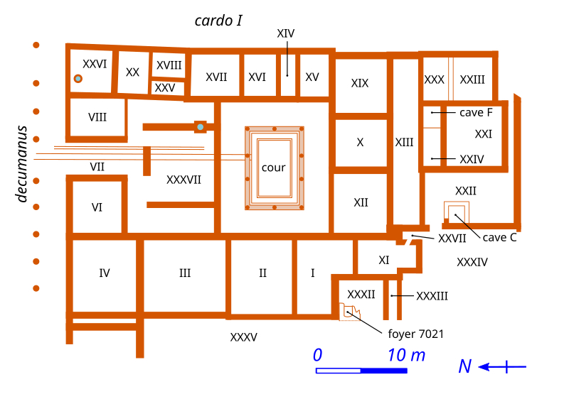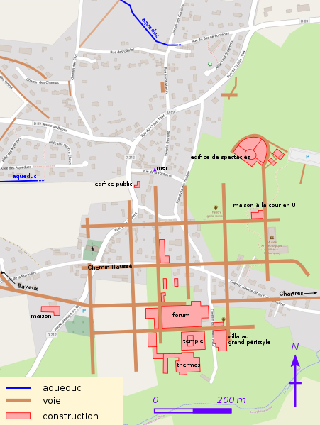 Le théâtre gallo‑romain de Vieux se situe sur le site archéologique de Vieux‑la‑Romaine, l'antique Aregenua, à environ 10 km au sud‑ouest de Caen, dans le Calvados. Il occupe un coteau faiblement incliné au nord‑ouest de la cité antique, à proximité du lieu‑dit Le Jardin Poulain et à l'est du château de la Palue, et ses vestiges sont conservés à très faible profondeur. Le site de Vieux fait l'objet de fouilles depuis la fin du XVIIe siècle et les travaux du XIXe siècle, notamment ceux d'Antoine Charma en 1852‑1854, constituent la base de nos connaissances sur l'édifice. Aregenua, capitale de la cité des Viducasses, est fondée au Ier siècle et connaît son apogée aux IIe et IIIe siècles, période pendant laquelle la ville se dote d'un ensemble monumental incluant un édifice pour les spectacles. Le quartier où se trouve le théâtre était celui des artisans et comportait des constructions à pans de bois; un premier théâtre est bâti à la fin du Ier ou au début du IIe siècle, probablement lors de la phase de construction datée vers 120‑140. Ce premier édifice, dont les gradins étaient en bois, avait une cavea d'environ 67 mètres de diamètre ; la scène dégagée mesurait 7,40 m sur 2,80 m et les vestiges sont en grès de May. Quelques dizaines d'années plus tard, probablement au milieu ou à la fin du IIe siècle, le théâtre est profondément remanié et transformé en théâtre à arène afin d'accueillir des spectacles d'amphithéâtre. Dans cette seconde phase, la cavea atteint environ 80 m sur 67 m, la façade mesure entre 66 et 70 m et l'arène, de forme irrégulière, couvre une surface d'environ 610 m². Les gradins étaient majoritairement en bois, peut‑être soutenus pour le premier rang par des assises en pierre, et une série de vingt contreforts et plusieurs exèdres semi‑circulaires assurait l'appui des structures sur le versant. La scène de la seconde phase est relativement réduite, la surface évoquée variant selon les auteurs mais restant proche de 35 à 50 m². Le théâtre comportait une galerie de circulation périphérique large de 3 à 3,5 m et deux couloirs de 3,10 m à l'est et 3,80 m à l'ouest. Les estimations de la capacité ont beaucoup varié : les fouilleurs du XIXe siècle ont proposé 3 500 à 3 550 places, d'autres études ont avancé 6 000, et une estimation récente situe la contenance entre 5 700 et 7 600 personnes. L'existence d'une arène complète associée à une scène fait du théâtre de Vieux un édifice original parmi les théâtres gallo‑romains, et il illustre la formule mixte théâtre‑amphithéâtre répandue dans la Gaule lyonnaise. L'inscription dite « marbre de Thorigny » fournit un témoignage direct des spectacles : Titus Sennius Solemnis y est mentionné comme ayant dépensé 25 000 sesterces en 238 pour quatre jours de spectacles, ce qui peut indiquer la tenue de munera. Le théâtre est abandonné à la fin du IIIe siècle ; les fouilles ont livré des traces de bois carbonisé et des clous qui suggèrent un incendie intervenu éventuellement après l'abandon. À la suite de cet abandon, les ruines ont été exploitées comme carrière, certains éléments décoratifs réutilisés dans des sarcophages mérovingiens et un four à chaux installé sur le site. L'usage du théâtre comme carrière se prolonge aux VIIe et VIIIe siècles, mais les vestiges demeurent visibles dans le paysage pendant une longue période. Après avoir été partiellement oubliés, les vestiges ont été localisés à nouveau par des prospections et sondages au XXe siècle, une photographie aérienne datée de 1947, une prospection magnétique en 1982 et des fouilles menées dans les années 1990 et au début du XXIe siècle. Les fondations retrouvées lors des travaux récents ont permis de confirmer l'implantation et les phases de l'édifice, mais les fouilles anciennes restent déterminantes en raison des interventions du XIXe siècle. Les vestiges du lieu‑dit Le Jardin Poulain sont classés au titre des monuments historiques, tandis que d'autres parcelles du secteur bénéficient d'une inscription, assurant une protection officielle du site. Le théâtre de Vieux illustre à la fois la diffusion des spectacles romains dans les cités secondaires et les adaptations locales de l'architecture théâtrale, alliant matériaux modestes, recours au bois et insertion dans le relief naturel.
