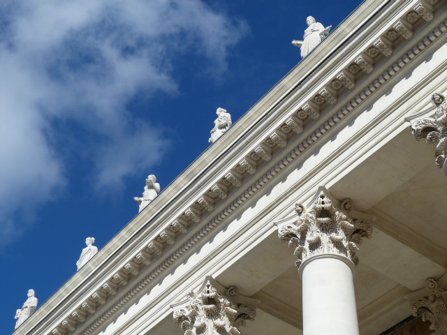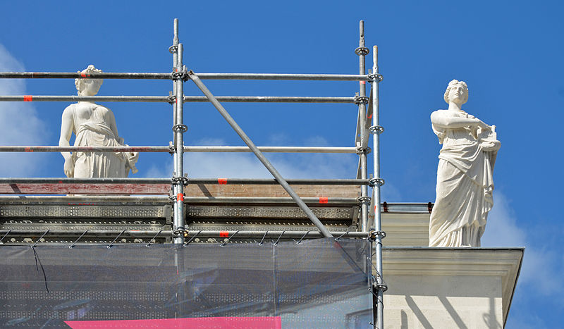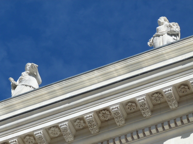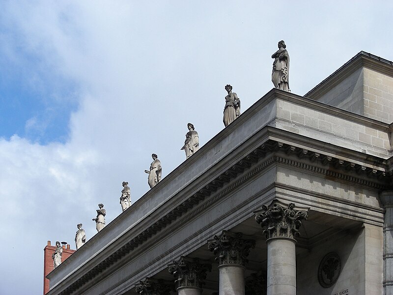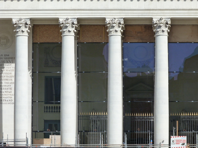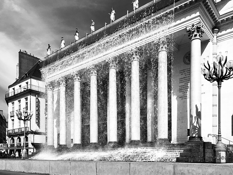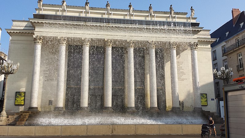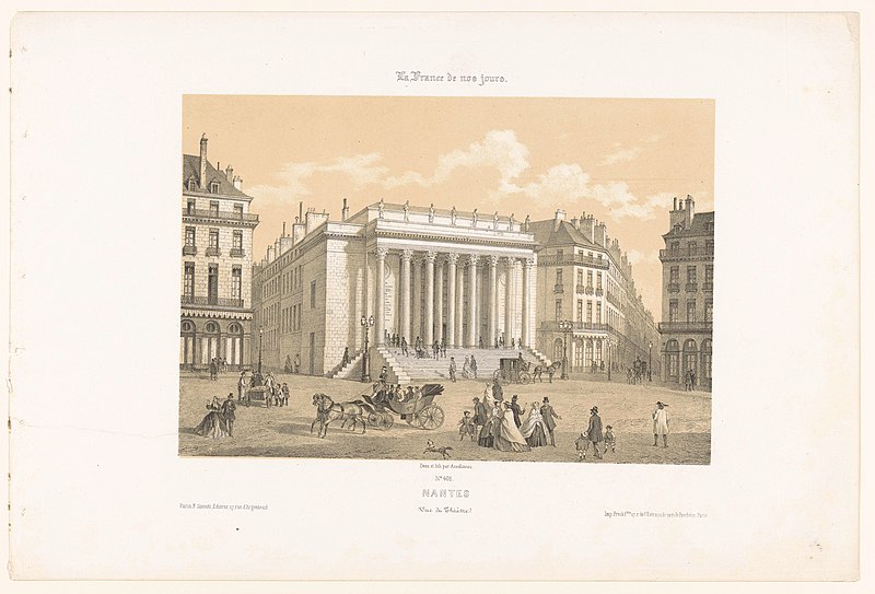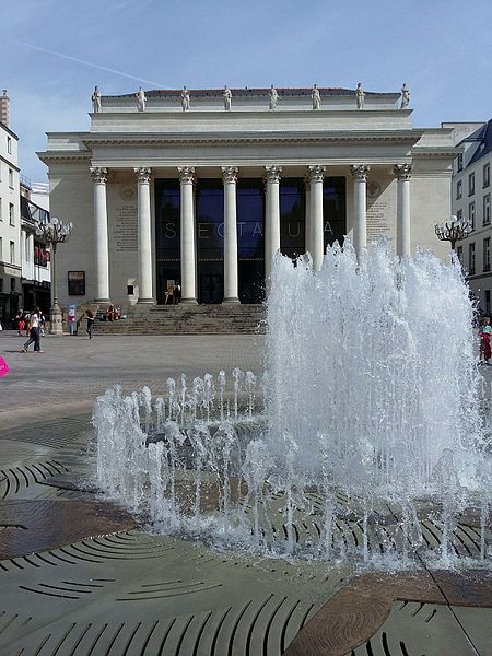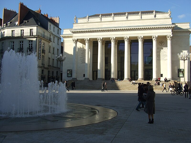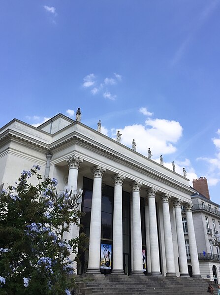 Le théâtre Graslin, salle d'opéra de Nantes exploitée par Angers‑Nantes Opéra, a été édifié par Mathurin Crucy en 1787‑1788 dans un style néo‑classique inspiré de Palladio. Situé sur la place Graslin, entre les rues Molière, Scribe et Corneille, il offre une capacité d'accueil de 784 places et fait partie des deux lieux de résidence du syndicat mixte Angers‑Nantes Opéra. Inscrit à l'inventaire des monuments historiques depuis le 8 décembre 1998, il occupe une place centrale qui fonctionne comme un vestibule élargi pour l'édifice. Le perron, composé à l'origine de quatorze puis de treize marches en granit de Crac'h, compense le dénivelé du terrain. La façade néo‑classique reprend l'inspiration de l'Odéon et s'orne d'un péristyle de huit colonnes corinthiennes surmontées des statues des Muses. Les acrotères sculptés, exécutés par Dominique Molknecht et placés au-dessus des colonnes, datent de la première moitié du XIXe siècle ; Molknecht a également réalisé les statues de Molière et de Corneille encadrant l'escalier d'honneur. Le vestibule, de petite taille, s'ouvre sur le péristyle et est rythmé par quatre colonnes soutenant une voûte en berceau à caissons ; à l'origine il était fermé par des grilles plutôt que par des vitres. La salle suit la tradition du théâtre à l'italienne avec une forme d'ovale tronqué et des balcons aux boiseries dorées ornés de guirlandes et de médaillons figurant des compositeurs. Le plafond en coupole a été décoré au XIXe siècle par une fresque d'Hippolyte Berteaux représentant des personnages mythologiques et des allégories du théâtre et de la musique. Les décors de scène, au nombre de neuf, furent dessinés par Crucy et réalisés par des peintres tels que Jean Bougon et Jean‑Baptiste Coste, tandis que la machinerie fit appel à des spécialistes expérimentés. Le chantier de construction connut de nombreux conflits financiers et techniques, l'emploi de divers matériaux de carrières locales (granits, tuffeau, calcaire) ayant été précisément organisé pour les parements, la maçonnerie et les ouvrages sculptés. Le théâtre fut inauguré en 1788 mais il fut ravagé par un incendie en 1796, qui détruisit la salle et les coulisses et causa des victimes ; seul le magasin d'habillement fut épargné. Reconstruit par Mathurin Crucy entre 1811 et 1813 en respectant l'architecture initiale tout en conservant le péristyle, le vestibule et certains murs latéraux, le bâtiment a depuis fait l'objet de plusieurs remaniements et extensions au cours du XIXe et du XXe siècle, notamment en 1829‑1830, 1844‑1845, après 1835, entre 1865 et 1880, entre 1913 et 1930, et d'une réfection de la salle en 1967‑1968. Sur le plan artistique, Graslin a accueilli de nombreuses vedettes lyriques, dramatiques et compositeurs au fil des siècles et a parfois servi de relais pour d'autres scènes municipales. Le 12 février 1918, l'orchestre des Harlem Hellfighters, dirigé par James Reese Europe, donna, selon les sources, le premier concert de jazz sur le continent européen, d'abord sur les marches puis dans la salle. Le théâtre figure également dans des films tels que Lola de Jacques Demy et Jacquot de Nantes d'Agnès Varda, témoignant de sa place dans la culture locale.