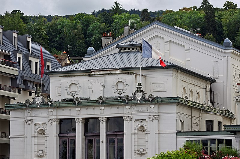 Le théâtre municipal, appelé théâtre du Casino ou théâtre Antoine‑Riboud, se situe à Évian‑les‑Bains et a été construit entre 1883 et 1885. Il figure parmi les premiers théâtres municipaux des villes d’eaux et est considéré comme un chef‑d’œuvre d’art néoclassique réalisé par Jules Clerc, élève de Charles Garnier. La façade principale présente un soubassement à bossages et un niveau central percé de trois baies encadrées par des pilastres cannelés, surmonté d’un entablement orné de métopes et de palmettes et d’une corniche à protomés de lions ; l’attique comporte trois oeils‑de‑boeuf. L’intérieur, de style éclectique, est richement décoré : imitations d’émaux, mosaïques, marbres variés et rehauts dorés composent un décor polychrome exécuté par Négri, destiné à recréer l’ambiance de la comédie et du carnaval. Au plafond, une peinture évoque les quatre pays d’où provenait la clientèle cosmopolite de la fin du XIXe siècle : l’Italie, la Suisse, l’Angleterre et la Russie. À l’époque de sa construction, le théâtre jouxtait le château de Blonay, transformé en casino puis rasé ; un petit porche avait été aménagé pour l’entrée du casino et une passerelle permettait un accès direct entre le théâtre et l’établissement de jeu, lien qui subsiste. Conçu « à l’italienne », il offre une capacité d’environ deux cent quatre‑vingts spectateurs et accueille notamment, durant l’été, les Estivales Théâtrales avec des pièces de boulevard. La ville demeure propriétaire du bâtiment ; son exploitation est en concession depuis 1892 à la Société des Eaux minérales d’Évian, titulaire de la marque Évian, appartenant depuis les années 1970 au groupe Danone. Le maire Marc Francina a donné au théâtre le nom d’Antoine Riboud (25 décembre 1918 – 5 mai 2002), fondateur et président de Danone, en signe de reconnaissance. L’édifice a été inscrit aux monuments historiques par arrêté du 17 mars 2014.