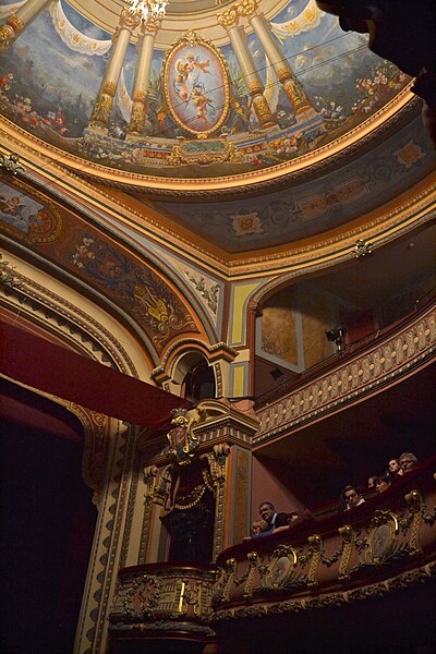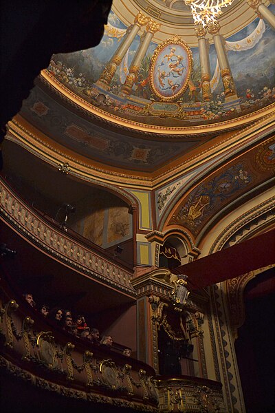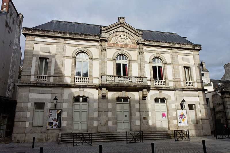 À la fin du XIXe siècle, l'arrivée du chemin de fer reliant Morlaix à Paris après la construction du pont ferroviaire et le legs de 320 000 francs du comte Paul-Ange de Guernisac, décédé en 1875, poussèrent la ville à édifier une nouvelle salle de spectacle. Fin 1886, le conseil municipal vota la construction. L'architecte choisi fut Théodore Charpentier, de Paris, et les travaux furent exécutés par la Maison Diosse et Fils de Lyon. La façade, simple et austère, comporte un rez-de-chaussée et un étage ; la travée centrale, munie d'un balcon, est surmontée d'un fronton triangulaire portant l'inscription théâtre et un bas-relief de l'Harmonie, allégorie de la musique, par Daniel Dupuis. La salle, de type à l'italienne et de plan elliptique, peut accueillir 600 personnes. Le plafond en coupole, peint à la détrempe par la Maison Diosse, s'élève à douze mètres au-dessus du parterre ; sur un fond de ciel bleu et de paysages, entre des colonnes géminées, se succèdent des banderoles blanches et dorées et des médaillons représentant quatre ou cinq amours. L'inauguration eut lieu le 14 avril 1888, le premier lever de rideau étant assuré par la Comédie Française. L'ornementation des loges d'avant-scène souligne l'identité municipale : l'une arbore des hermines noires sur fond blanc, symbole de l'indépendance bretonne, l'autre figure un bateau, rappel des activités portuaires qui ont fait la prospérité de Morlaix.
