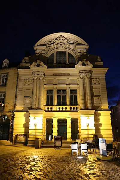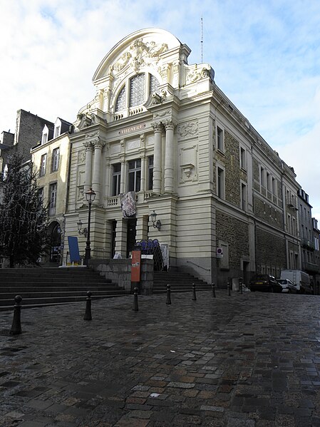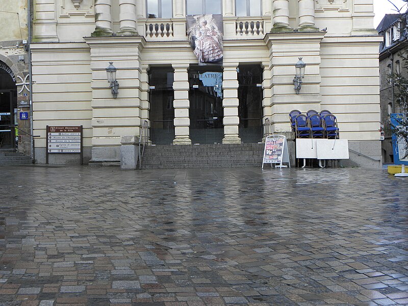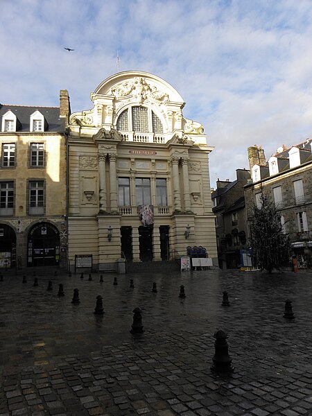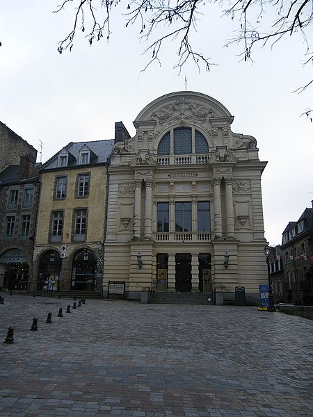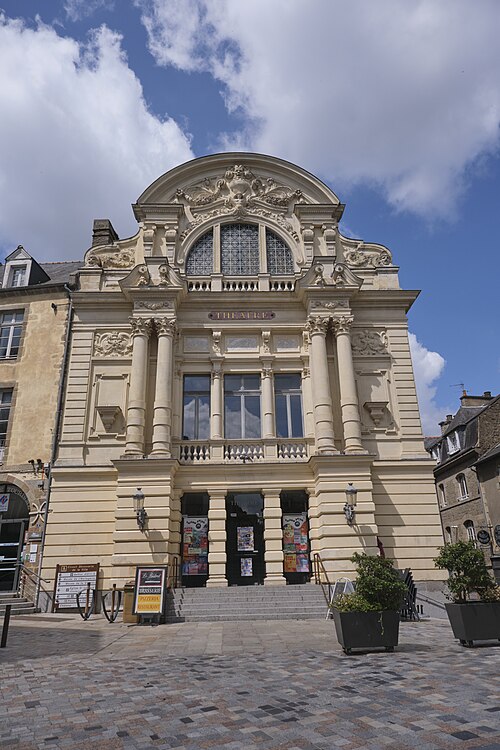 Le théâtre municipal, dit théâtre Victor-Hugo, est situé dans la ville haute de Fougères, à proximité de la rue Nationale ; il occupe une parcelle étroite, profonde et en forte pente, bordée à l'est par la place du Théâtre et au nord par la rue de la Pinterie, et ses façades ouest et sud sont intégrées à l'îlot bâti voisin. Construit par l'architecte fougerais Jean‑Marie Laloy sous la Troisième République, le projet réemploya en partie les murs de l'ancienne halle et s'inscrivit dans un vaste programme municipal comprenant halles, bibliothèque, justice de paix et bureau de poste. Le conseil municipal approuva le projet à la fin des années 1870 et la salle fut inaugurée le 24 septembre 1886 ; elle connut une activité soutenue jusqu'à la fin des années 1960, interrompue par les dommages de la guerre entre 1944 et 1946, puis fermée pour cause d'obsolescence et de non‑conformité aux normes de sécurité. Inscrite à l'inventaire supplémentaire des monuments historiques en 1988 et dont la façade fut classée en 1990, la salle a été restaurée à l'identique lors de travaux entrepris entre 1996 et 2001 ; réouverte le 8 décembre 2001, elle offre désormais une jauge réduite et accueille des spectacles de plus petite capacité et des manifestations intimistes.