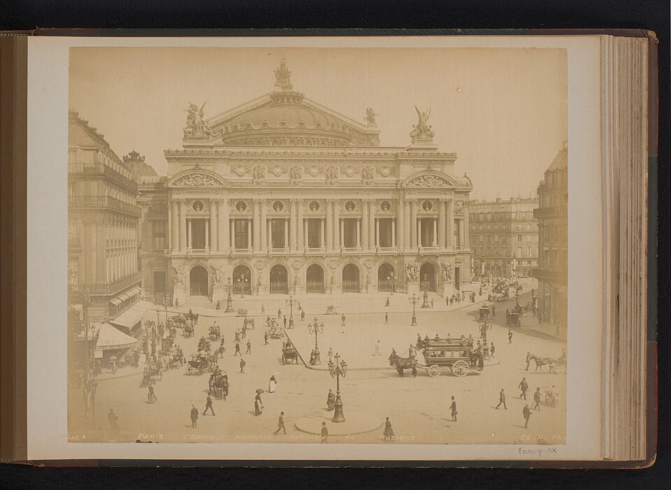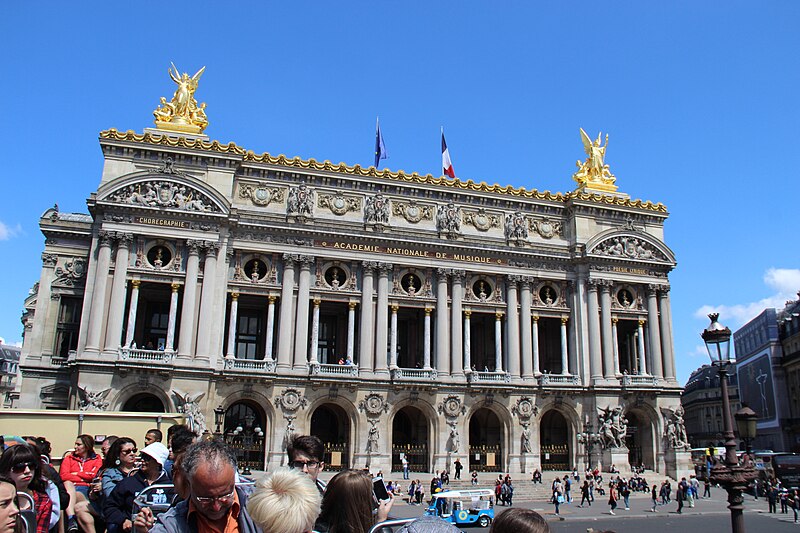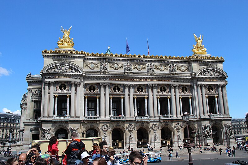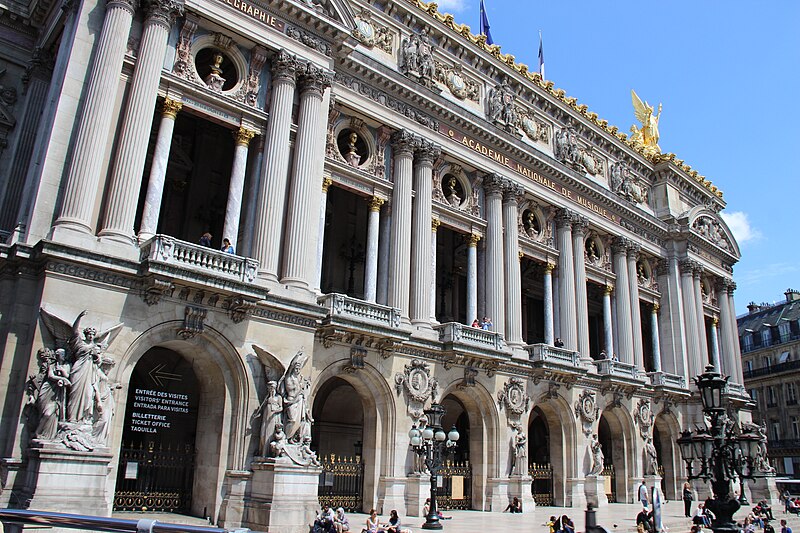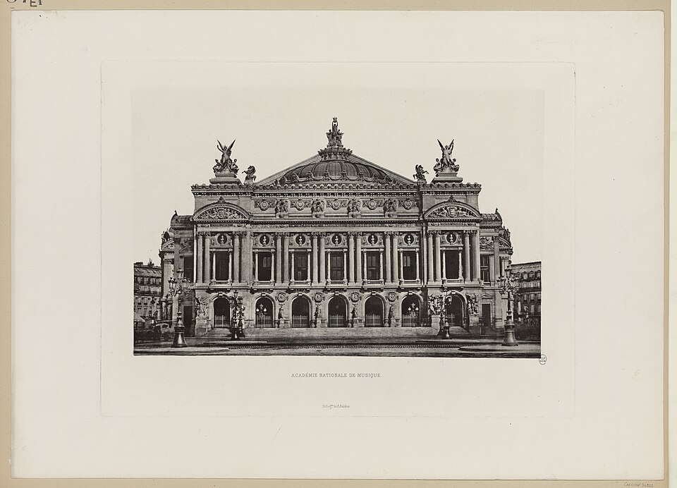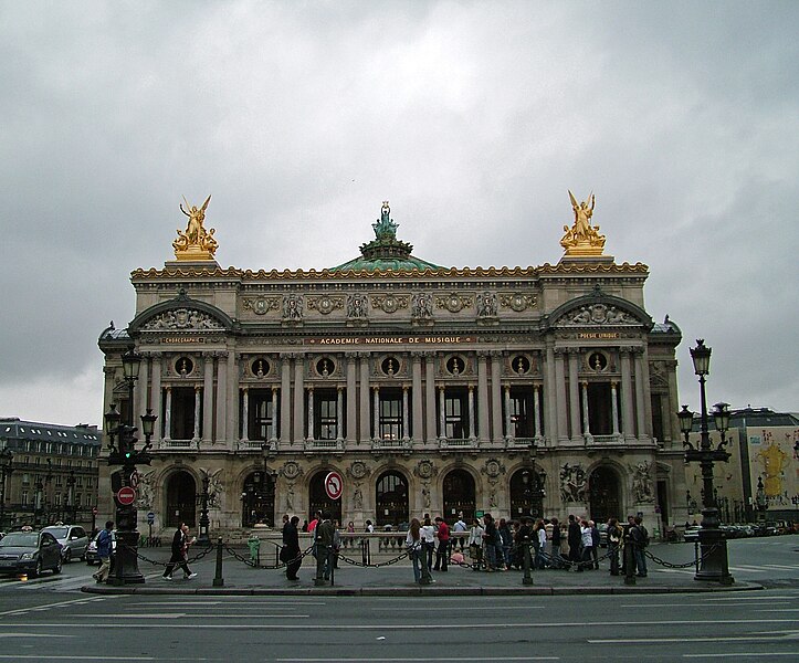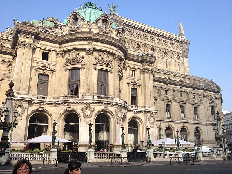 La construction du théâtre, décidée par Napoléon III dans le cadre des transformations haussmanniennes, fit l'objet d'un concours organisé en 1860‑1861 et fut confiée à Charles Garnier. Les travaux commencèrent en 1861 ; la première pierre fut posée le 5 mai 1862 et l'édifice fut inauguré le 5 janvier 1875. Le chantier, interrompu par la guerre de 1870, la Commune et de nombreux aléas financiers, dura près de quinze ans. Le site retenu par le préfet Haussmann, de forme losange et exigu, imposa des contraintes d'implantation qui influencèrent la conception de Garnier. Face à une nappe phréatique abondante, l'architecte renonça à l'assèchement et fit exécuter un radier en béton, la « cuve », qui protège les fondations, a servi de réserve d'eau pour les pompiers et a alimenté la légende d'un lac souterrain. Garnier supervisa le choix des entreprises et des artistes et installa une agence provisoire de chantier rue Neuve des Mathurins. La construction mobilisa peintres, sculpteurs, marbriers, staffeurs, mosaïstes, ébénistes, ferronniers et doreurs, et fut documentée par des photographes attachés au chantier. La façade principale fut partiellement dévoilée lors d'une inauguration provisoire en août 1867, à l'occasion de l'Exposition universelle, avant l'achèvement complet du bâtiment. Le coût et le calendrier du chantier connurent de nombreuses révisions ; la livraison intervint fin décembre 1874 pour un coût total de trente‑six millions de francs‑or, certaines parties restant inachevées. L'inauguration de 1875 associa un programme musical varié et la présence de nombreuses personnalités étrangères. À son achèvement, le palais s'imposa comme une synthèse du style éclectique propre au Second Empire et comme un élément majeur du patrimoine du 9e arrondissement et de Paris. L'ouvrage conjugue une structure métallique moderne et un riche habillage en pierre, marbres et dorures, reflet des techniques et du goût décoratif de l'époque. Longtemps désigné sous le nom d'« Opéra de Paris », il devint couramment l'Opéra Garnier ou palais Garnier après l'ouverture de l'Opéra Bastille en 1989 ; les deux salles relèvent aujourd'hui de l'Opéra national de Paris. Le palais est classé monument historique depuis le 16 octobre 1923. L'histoire du lieu comporte divers incidents marquants, dont des interruptions pour raisons militaires, l'incendie qui détruisit la salle de la rue Le Peletier et un accident lié au système du lustre ayant inspiré des récits légendaires. Garnier publia et défendit les choix de son projet, et la construction fit l'objet de nombreuses études et photographies. Au XXe siècle et au-delà, le palais Garnier a fait l'objet de modernisations (électrification, sécurité, équipements techniques) et de campagnes de restauration visant la façade, la salle et les foyers. Des interventions récentes ont porté sur la remise aux normes des réseaux, la réfection des décors et l'amélioration de l'accessibilité, tout en cherchant à respecter l'ensemble décoratif originel. Le palais Garnier reste ouvert au public et accessible par le métro (station Opéra), le RER (ligne A, gare d'Auber) et le réseau de bus.