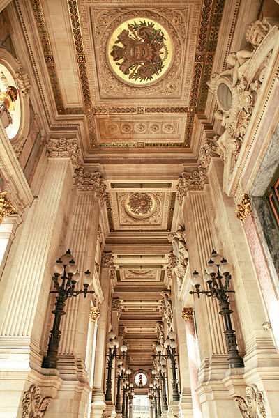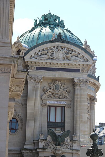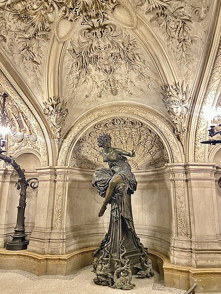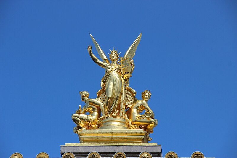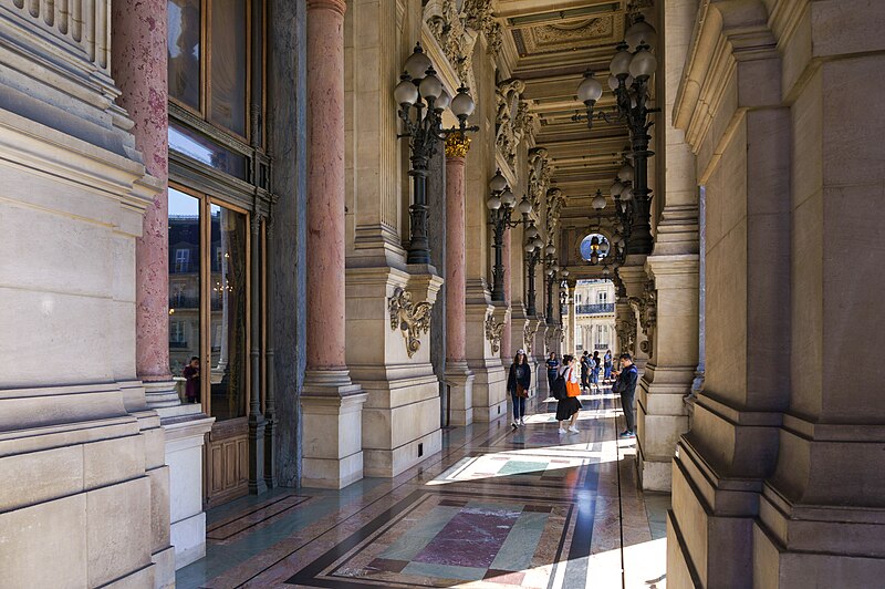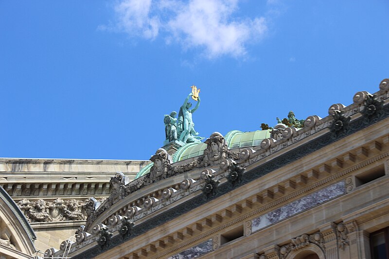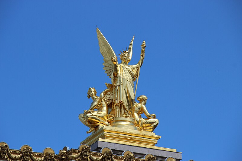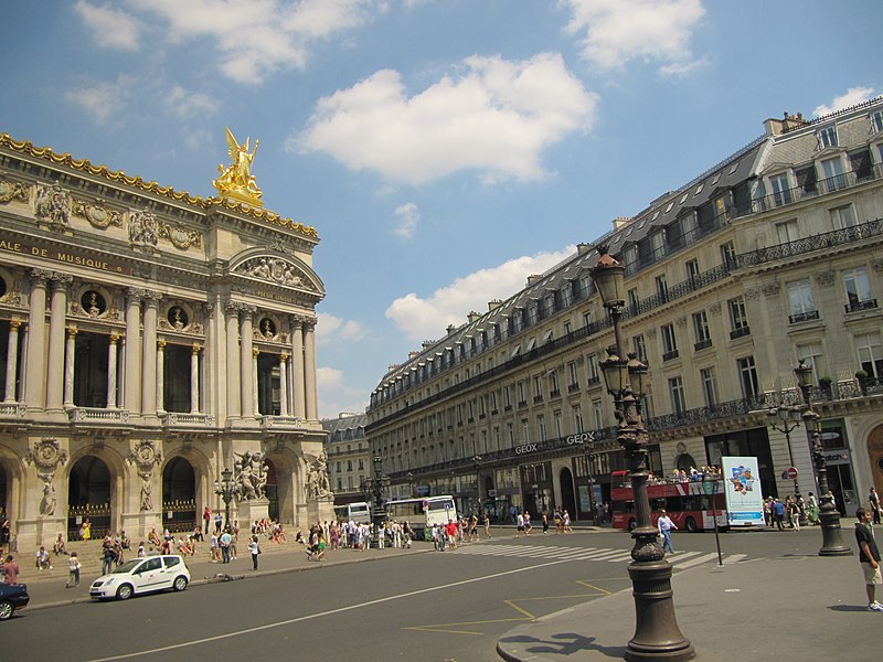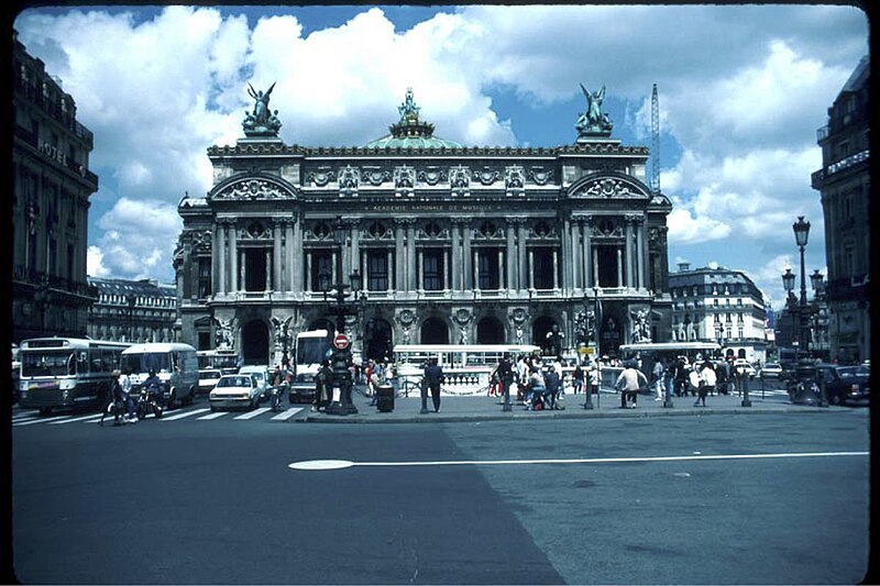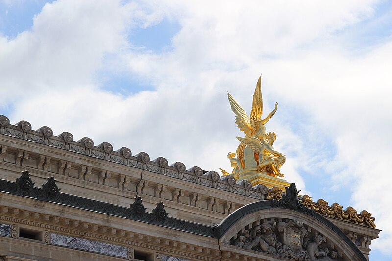 La construction du théâtre, décidée par Napoléon III dans le cadre des transformations haussmanniennes, fit l'objet d'un concours organisé en 1860‑1861 et fut confiée à Charles Garnier. Les travaux commencèrent en 1861 ; la première pierre fut posée le 5 mai 1862 et l'édifice fut inauguré le 5 janvier 1875. Le chantier, interrompu par la guerre de 1870, la Commune et de nombreux aléas financiers, dura près de quinze ans. Le site retenu par le préfet Haussmann, de forme losange et exigu, imposa des contraintes d'implantation qui influencèrent la conception de Garnier. Face à une nappe phréatique abondante, l'architecte renonça à l'assèchement et fit exécuter un radier en béton, la « cuve », qui protège les fondations, a servi de réserve d'eau pour les pompiers et a alimenté la légende d'un lac souterrain. Garnier supervisa le choix des entreprises et des artistes et installa une agence provisoire de chantier rue Neuve des Mathurins. La construction mobilisa peintres, sculpteurs, marbriers, staffeurs, mosaïstes, ébénistes, ferronniers et doreurs, et fut documentée par des photographes attachés au chantier. La façade principale fut partiellement dévoilée lors d'une inauguration provisoire en août 1867, à l'occasion de l'Exposition universelle, avant l'achèvement complet du bâtiment. Le coût et le calendrier du chantier connurent de nombreuses révisions ; la livraison intervint fin décembre 1874 pour un coût total de trente‑six millions de francs‑or, certaines parties restant inachevées. L'inauguration de 1875 associa un programme musical varié et la présence de nombreuses personnalités étrangères. À son achèvement, le palais s'imposa comme une synthèse du style éclectique propre au Second Empire et comme un élément majeur du patrimoine du 9e arrondissement et de Paris. L'ouvrage conjugue une structure métallique moderne et un riche habillage en pierre, marbres et dorures, reflet des techniques et du goût décoratif de l'époque. Longtemps désigné sous le nom d'« Opéra de Paris », il devint couramment l'Opéra Garnier ou palais Garnier après l'ouverture de l'Opéra Bastille en 1989 ; les deux salles relèvent aujourd'hui de l'Opéra national de Paris. Le palais est classé monument historique depuis le 16 octobre 1923. L'histoire du lieu comporte divers incidents marquants, dont des interruptions pour raisons militaires, l'incendie qui détruisit la salle de la rue Le Peletier et un accident lié au système du lustre ayant inspiré des récits légendaires. Garnier publia et défendit les choix de son projet, et la construction fit l'objet de nombreuses études et photographies. Au XXe siècle et au-delà, le palais Garnier a fait l'objet de modernisations (électrification, sécurité, équipements techniques) et de campagnes de restauration visant la façade, la salle et les foyers. Des interventions récentes ont porté sur la remise aux normes des réseaux, la réfection des décors et l'amélioration de l'accessibilité, tout en cherchant à respecter l'ensemble décoratif originel. Le palais Garnier reste ouvert au public et accessible par le métro (station Opéra), le RER (ligne A, gare d'Auber) et le réseau de bus.