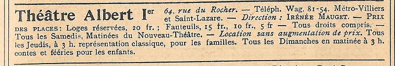 Le Théâtre Tristan-Bernard, situé 64 rue du Rocher dans le 8e arrondissement de Paris, occupe un immeuble construit de 1912 à 1914 par l'architecte Théo Petit pour l'Institut professionnel féminin fondé par Léopold Bellan. Conçu pour accueillir l'enseignement privé pour jeunes filles, des ateliers de commerce, des bureaux de dessin et deux salles de spectacle, l'établissement comportait une grande salle polyvalente inaugurée en 1914 et une petite salle dite Villiers. La grande salle, qui compte 400 places, présente un décor néo-Louis XVI inspiré de la salle Gaveau ; la salle Villiers, décorée dans le même style, offre 200 places. La salle principale s'ouvre au public en 1919 sous le nom de Théâtre Albert‑Ier. Tristan Bernard en prend la direction en 1930 et rebaptise alors la salle Théâtre Tristan‑Bernard, y présentant pendant une saison ses comédies, avant qu'elle ne retrouve par la suite son nom d'origine. En 1936, Charles de Rochefort rouvre la salle sous le nom de Théâtre Charles‑de‑Rochefort avec la pièce Allô, Police‑secours, qu'il signe sous le pseudonyme Chas D. Strongstone, et y programme de nombreuses pièces policières et à suspense ; le concours des Jeunes Compagnies s'y tient chaque année au mois de mai. Mobilisé et blessé pendant la Seconde Guerre mondiale, Charles de Rochefort cède la direction à son épouse, la comédienne Mary Grant, qui assure la direction avec leur fils Jean Dejoux jusqu'en 1972. En 1973, Dominique Nohain acquiert le théâtre et le rebaptise Théâtre Tristan‑Bernard. Edy Saiovici lui succède en 1986 et dirige la salle jusqu'à sa mort en 2013, après quoi sa femme Mireille prend la direction. À la demande d'Edy Saiovici, Pascal Guillaume devient directeur artistique en 2013 puis propriétaire en 2014. La grande salle et la salle Villiers sont inscrites au titre des monuments historiques en 1991. En 2010, le théâtre rejoint la démarche commune des Théâtres parisiens associés, initiative réunissant plusieurs salles privées parisiennes.