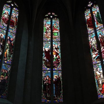 • Le gothique rayonnant, de 1230 à 1380, pousse à l'extrême la nécessité d'augmenter au maximum les surfaces vitrées par l'emploi d'une armature de fer, dite « pierre armée », et avec des remplages d'une grande finesse qui ne font pas obstacle à la lumière. Le meilleur exemple en est la Sainte-Chapelle de Paris